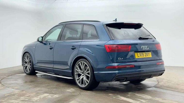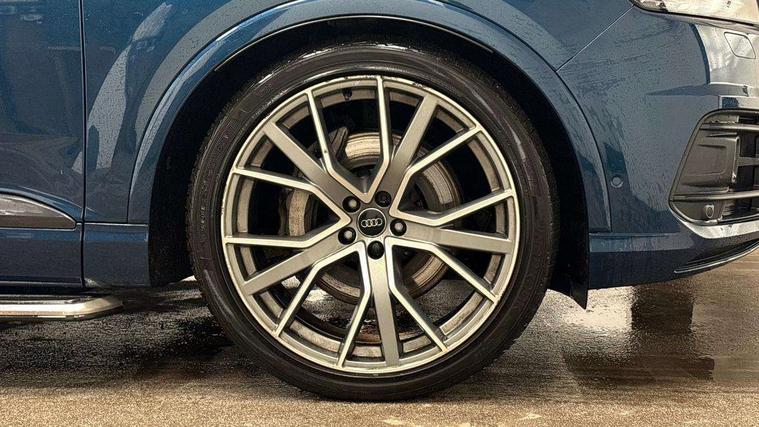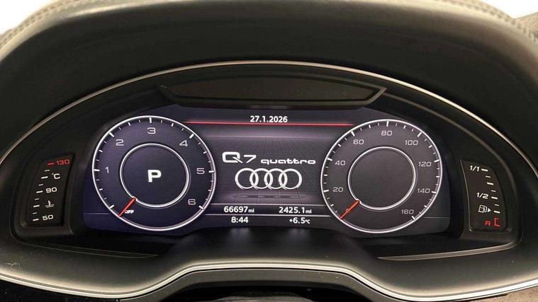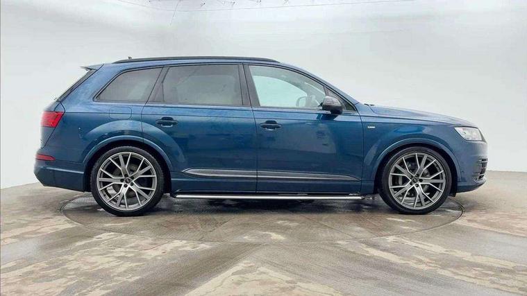 8.3" central fold-down colour display with high-resolution graphics, Audi connect safety and service (e-call), Audi drive select, Audi phone box with wireless charging, Audi smartphone interface, Audi virtual cockpit - 12.3" high-resolution LCD display with fully customisable instrument cluster, Colour driver's information system display, Head up Display, MMI - Multi Media Interface control system, MMI navigation plus with MMI touch, Mobile phone preparation with bluetooth interface, Power tailgate, Service interval indicator, Servotronic speed related PAS, Speed limiter, Start/Stop system with energy recuperation, Voice control system, Adaptive air sports suspension, 2 USB ports, 2x SD card slot, Audi music interface, Aux-in socket, DAB digital radio module, DVD System, MMI radio plus, Acoustic windscreen, Audi matrix LED headlights with LED rear lights + dynamic front and rear indicators, Auto dimming rear view mirror, Body coloured bumpers, Electric front+rear windows, Electric panoramic glass sunroof, Electric/heated/folding door mirrors with memory, Green tinted heat insulating glass, Headlight washers, High beam assist, LED daytime running lights, Loading sill protector in stainless steel, Platinum grey front lip spoiler, Privacy glass, Rain and light sensors, Rear wiper, Roof spoiler, Running boards, 2 cupholders in front centre console, 35/30/35 split fold 2nd row seats, Electric 3rd row 50/50 split/fold, Electric adjustable steering column, Electrically adjustable front driver and passenger seats with memory, Four zone electronic climate control, Front ashtray and cigar lighter, Front centre comfort armrest with storage + cupholders, Front head restraints, Gearshift paddles, Heated front and 2nd row seats, ISOFIX child seat mounting for 6 passenger seats with front passenger airbag deactivation includes top tether, Leather gear knob, Luggage compartment cover, Rear centre armrest with 2 cupholders, Rear headrests, Stainless steel pedals, Sunvisors with illuminated vanity mirrors, Twin sunvisors, Valcona leather upholstery + S sports seats plus, Extended LED interior multi coloured lighting pack - Q7, Full leather pack - Q7, Interior light pack - Q7, Parking pack - Q7, Tour Pack - Q7, 3 point seatbelts on all seats, ABS+Electronic Brake force Distribution, Curtain airbags, Driver and passenger airbags, EDL + ASR, Electrically operated child locks on rear doors, Electromechanical parking brake, Electronic stability control, Exit warning, Front side airbags, Hill descent control, Hill hold assist, Seatbelt warning, Traction control, Tyre pressure loss indicator, Warning triangle and first aid kit, Advanced key, Anti theft alarm, Anti-theft wheel bolts, Immobiliser, Keyless Go access/ignition system, Remote central locking, Chrome door inserts, Tool kit, Tyre repair kit,