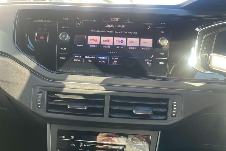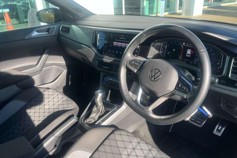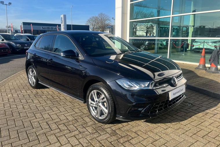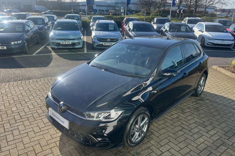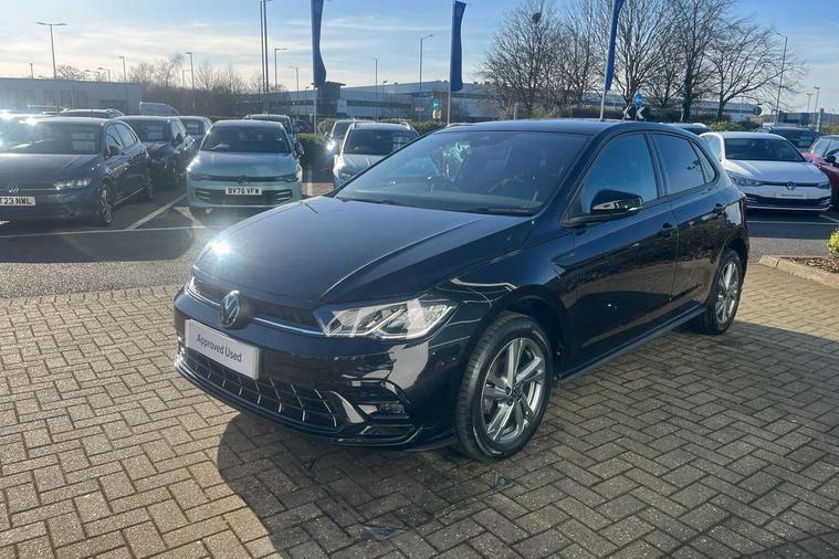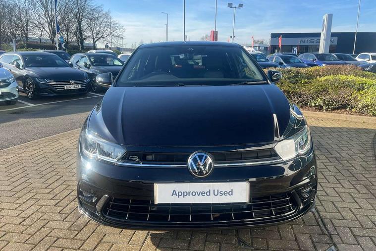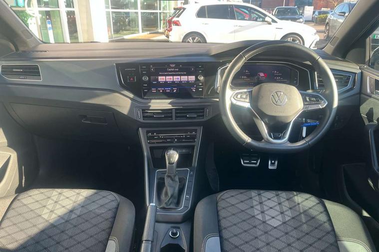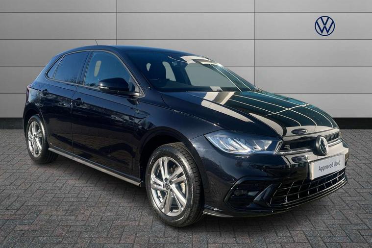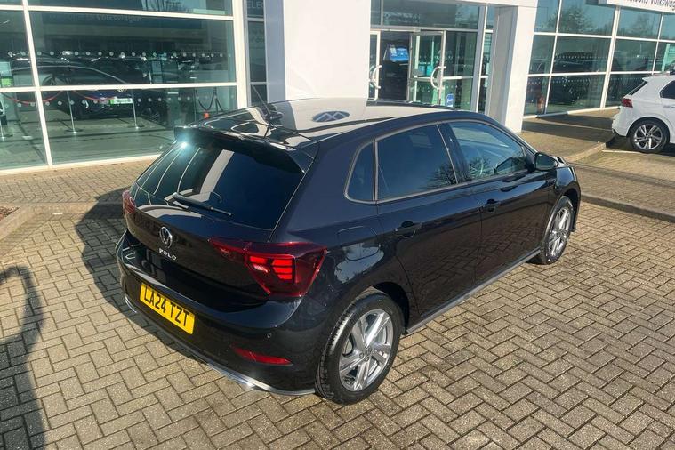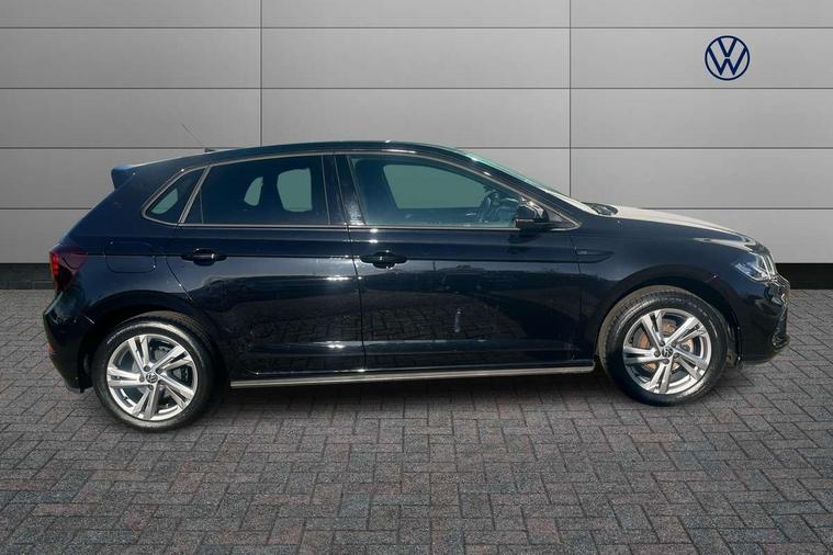 Adaptive cruise control with follow-to-stop and speed limiter, Advanced driver attention and drowsiness monitor, Bluetooth mobile phone interface, Digital Cockpit Pro with 10.25" Display, Dynamic road sign display, Emergency call service, Power assisted speed sensitive steering, Preparation for We connect and We connect plus, Speedo and rev counter, electronic odometer, trip, service interval display and fuel gauge, Standard rear axle, Travel Assist - Lane keeping system and traffic jam assist, Travel assist including emergency assist, Trip computer, Warning signal and warning light for front and rear seatbelts not fastened, Washer fluid level indicator, Wireless app connect, Front wheel drive, Rear shock absorpion, Start-stop system with battery regeneration (recuperation - energy recovery during braking), DAB Digital radio, Diversity antenna for FM reception, Body colour bumpers, Body colour door handles, Electric front windows, Front scuff plates with R-Line logo, Heat insulating darkened glass in side and rear windows, Heat insulating glass windscreen, Power folding adjustable/heated exterior mirrors and front passenger exterior mirror lowering function, Rear electric windows, Rear fog light, Rear side wing doors, Rear windscreen washer and wiper with interval delay, Third brake light, 12V power socket in centre console, 2 USB-C ports in the front, 2 USB-C charging sockets on the center console in the rear, 3 rear head restraints, 60/40 split folding rear seat and rear seat bench not split, Air care climatronic air conditoning system with active combination filter and 2-zone temperature control, Black roof lining, Chrome plated radiator grille inserts, air vent surrounds and light switch surrounds, Door and side trim panel, Driver and front passenger seat height adjustment, Driver/passenger sunvisors with illuminated vanity mirrors, Front + rear carpet mats in recycled material, Front centre armrest, Front footwell illumination, Front seat backrest storage pockets, Front sports comfort seats, Handbrake lever handle in leather, Headliner in recycled material, Isofix child seat preparation easy-fit (for two outer rear seats, and front passenger seat) compatible with I-size, Karoso artvelours cloth upholstery, Leather trimmed gear knob, LED interior light with switch off delay and dimmer, 2 reading lights front and rear, Luggage compartment cover, Luggage compartment floor, Luggage compartment lighting, Lumbar adjustment for front seats, Single front passenger seat, Stainless steel pedals, Standard pedal cluster, Three spoke leather wrapped multifunction steering wheel with shifting paddles, Light and sight pack - Polo R-Line/Black Edition, 3 point height adj front seatbelts + pretensioners, 3x3 point rear seatbelts, ABS, Driver and front passenger airbag with front passenger airbag deactivation, Drivers and front passengers safety optimised head restraints, ESC (Electronic stability control) + EDL (Electronic Differntial lock) and ASR (Traction control), Extended and predictive pedestrian/ cyclist protection, Front curtain and side airbags with center airbag, Hill hold control, Manual child lock in rear doors, Single tone horn, Tyre pressure loss indicator, Alarm with interior protection, Anti-theft alarm system with interior monitoring, backup horn, and towing protection, Anti-theft wheel bolts, Electronic engine immobiliser, Chrome applications on rotary light, mirror adjustment, window regulator switches, outlet with frame in black, Dark grey anodised matt decorative inserts in dash and front door panels, Low rolling resistance tyres,