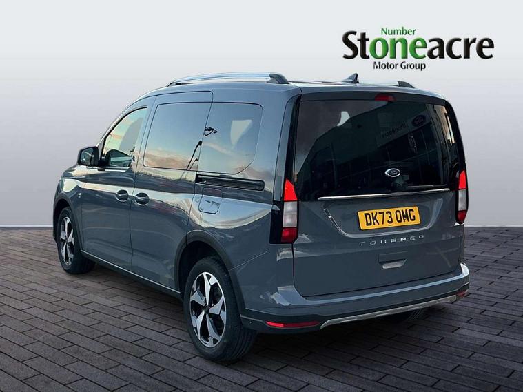 Analogue cluster, Brake wear indicator, Driver impairment monitor, E-call, Embedded modem, Mobile phone interface, PAS, Stop/start system with regenerative braking, Trip computer, 50 litre fuel tank, Standard duty alternator, Standard duty battery, Media hub 2x USB and rear USB Unit, Steering wheel mounted radio controls, Adaptive cornering lamps includes fog lamp, Auto headlamps On/off, Automatic windshield wiper, Black coloured exterior mirror finish, Black honeycomb grille with chrome surround, Black wheel arch mouldings, Body coloured exterior door handles, Body coloured exterior tailgate handles, Body coloured plastic front bumper and skid plates, Body coloured plastic rear bumper, Dark tinted rear privacy glass, Daytime running lights, Dual power fold heated mirrors, Dual sliding side load doors, Electric rear window defroster, Electric windshield defroster, Electrochromic inside mirror, Fixed 3rd row LHS and RHS window, Fixed rear window, Follow me home headlamps, High mounted stop lamp, Intermittent variable windshield wiper, Liftgate rear cargo door, Rain sensor, Rear registration plate light, Rear window wash/wipe, Roof rack silver painted rails, Standard green glass windscreen, Tail lamp - Level 1, Weather protection seals, 2 front row cupholders, 2nd and 3rd row rear overhead courtesy light with map light, 3 seat bench in 2nd row, 3x hooks on trim panel storage, 4 tie down hooks, A/C Refrigerant - HF01234YF, Air register Chrome, B Pillar assist handle, Base luggage compartment trim, Carpet load floor cover, Carpet partial floor cover, Center console level 4, Driver seat rotary recliner, Front door trim panel - Level 2, Front interior grab handles, Front seat tray table, Front throw in carpet floor mats, Glacier fabric upholstery, Glovebox lid with light, Header courtesy light with maplight, Height adjustable headrests, IP open storage above driver area, Large storage tool box, LED Load compartment light, Misfuel protection cap, Overhead storage shelfs, Painted instrument panel, Passenger seat rotary recliner, Passenger sunvisor with mirror, Pollen filter without carbon filter, Power point plug 2 off, Reach + rake adjustable steering column, Rear luggage compartment bag hook, Recirculation heater, Regular size washer tank, Second row 60/40 folding seats, Sensico gearshift knob, Sensico steering wheel, Side/rear door trim panel - Level 1, Single driver sunvisor illuminated with mirror, Single front passenger seat, Standard design foot pedal, Storage in front cab doors with bottle holder, Storage in rear doors with bottle holder, Third row dual individual seat, Waste container, Driver assistance package - Tourneo Connect/ Grand Tourneo Connect, High acoustics package - Tourneo Connect/ Grand Tourneo Connect, Ice feature pack 4 - Tourneo Connect/ Grand Tourneo Connect, Restrain device pack 3 - Tourneo Connect/ Grand Tourneo Connect, Seat pack 18 - Tourneo Connect/ Grand Tourneo Connect, 2nd row rear seat belts, 3rd row rear seat belts, 4 wheel disc brakes, Black seat belts, Brakes - (HLA)Hill launch assist/TC, Driver, passenger, 2nd and 3rd row rear seat belt reminder, Electric parking brake with auto hold function, Electronic emergency brake assist, Emergency brake light flashing, ESC with ABS, Front 2 way head restraints, Front active seat belts and manual adjuster seat belts, Front airbag restraint and passenger airbag restraint, Front side airbags, Isofix hard point attachment, Manual passenger airbag deactivation function, Post collision braking, Rear 2 way head restraints, Rear removeable package tray, Tire pressure sensors, 2 remote flip keys, Child proof rear door locks, Configurable Unlocking 2, Engine immobilizer - Securilock, Keyless entry and start with double locking, Locking wheel lug nuts, Power door dead locks and enabled door automatic relocking, Thatcham category 1 alarm B, 17" Premium painted alloy wheels with centre wheel hub cups and standard tread, Front tire and rear tire tread, Less wheel cover, Tyre repair kit,