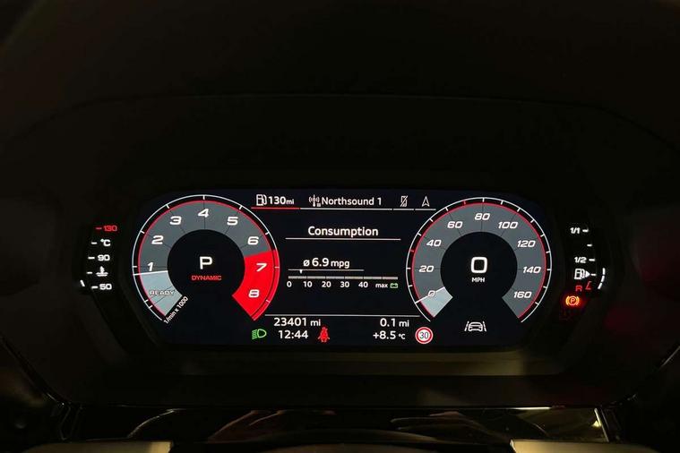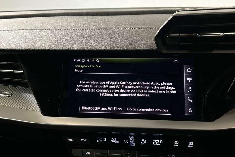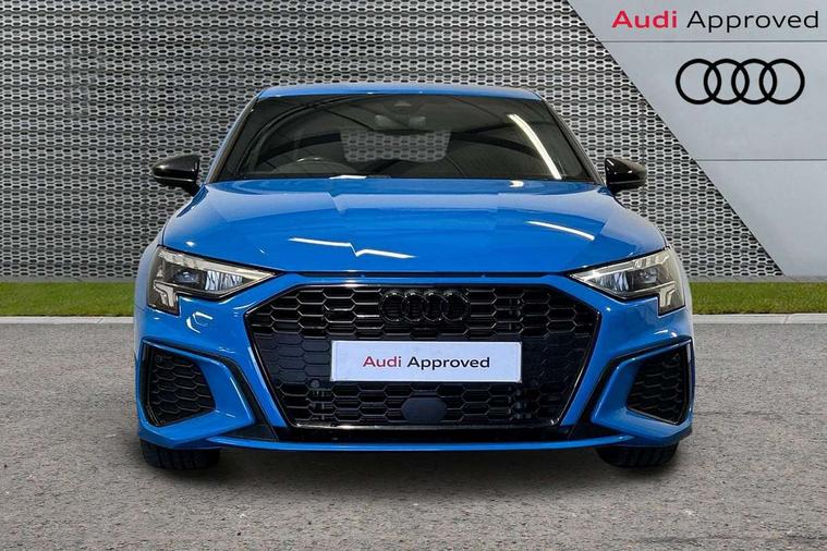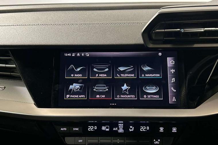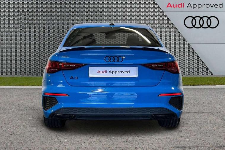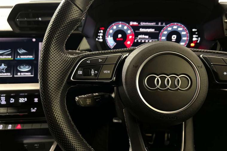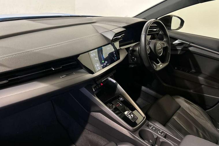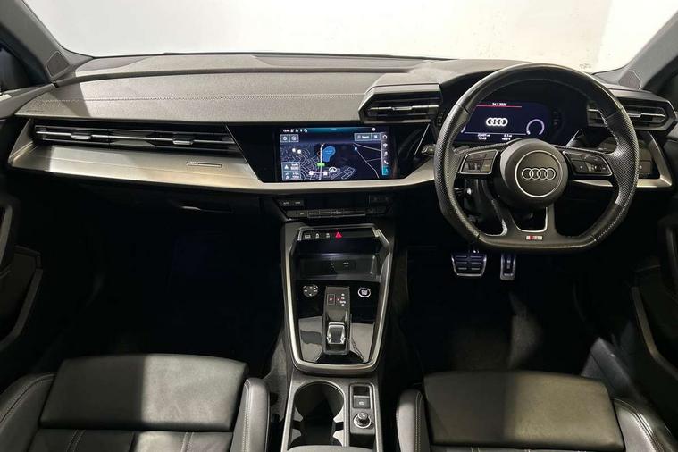 Audi drive select (Auto, Comfort, Dynamic, Efficiency and Individual), Audi smartphone interface, Audi Virtual Cockpit - 10.25" digital and colour instrument cluster, Automatic start/stop system with recuperation, Bluetooth interface, Camera based traffic sign recognition, Collision avoidance assistant, e-Call (emergency call), Electromechanical power speed sensitive steering, Lane departure warning system, MMI Navigation Plus with high resolution 10.1" colour touch screen display, Service indicator, Trip computer, Voice control system with natural language interaction, Sports suspension, 2xUSB-C connection with data and charging functions, 6 passive loudspeakers, CD player, DAB Digital radio, 3rd brake light, Acoustic glass windscreen, Audi beam uses LEDs to project the Audi logo onto the ground as you exit your A3, Auto dimming frameless rear view mirror, Electrically adjustable/heated/folding/auto dimming door mirrors with integrated LED indications + kerb view function for passenger side, Front electric windows, Illuminated door sills with aluminium inserts at the front with S logo, LED daytime running lights, LED headlights with LED rear lights and dynamic rear indicators, Light and rain sensors, Model and engine designation badges at rear, Privacy glass - dark tinted rear window, rear door and side windows, Rear boot, Rear electric windows, Rear side wing doors, S roof spoiler, 12V socket and storage compartment in front centre console, 3 seat bench in 2nd row, 3 spoke flat bottomed leather multifunction sport steering wheel with gear shift paddles, 4 way electrically adjustable lumbar support for driver and front passenger, 60/40 split folding rear seat bench, Black cloth headlining, Dual zone electronic climate control, Front and rear centre armrest in artificial leather, Front and rear headrests, Front/rear floor mats, Height and reach adjustable steering wheel, Interior lighting - glove compartment light and right hand side, Luggage compartment floor covering, Manual boot compartment lid, Single front passenger seat, Stainless steel pedals and front footrest in black, Twin leather upholstery with front sports seats S embossed logo, Aluminium interior elements pack - A3, Black styling pack - A3 Saloon/Black edition, LED interior lighting pack - A3 Saloon, 3x3 point rear seat belts, Driver and front passenger airbag with passenger airbag deactivation, Electronic Stabilisation Control (ESC) including ABS, ASR and EDL, First aid kit with warning triangle and 2 safety vests, Front side airbags with head airbags and interaction airbag, Pre-sense front with pedestrian and cyclist detection, Seatbelt monitoring, Tyre pressure loss indicator, Anti theft alarm, Anti-theft wheel bolts, Electronically operated child locks, Immobiliser, Remote control central locking, Aluminium air vent surrounds, Dark spectrum aluminium inlays, accent surfaces in the dashboard and centre console in platinum grey silk effect paint finish, 19" 5 arm trapezoid design alloy wheels in matt grey with diamond cut finish,