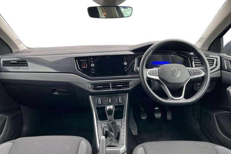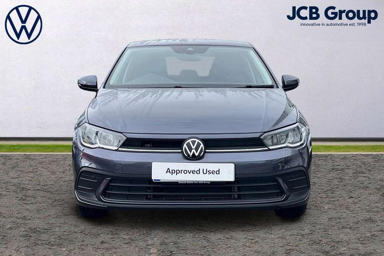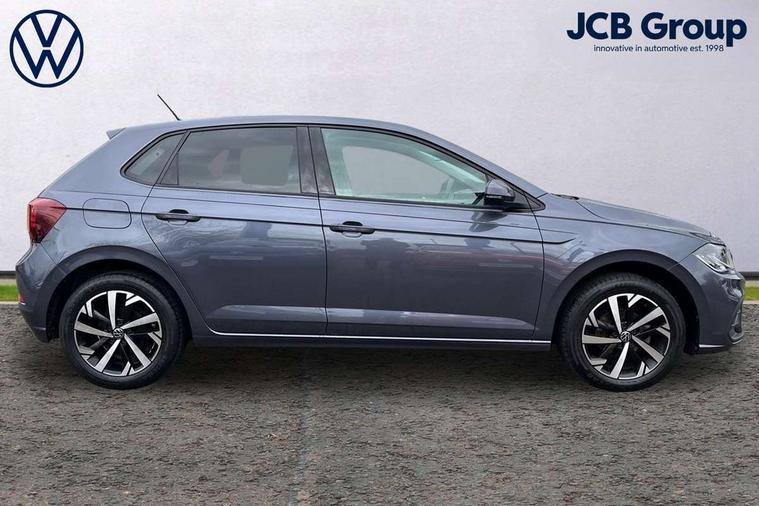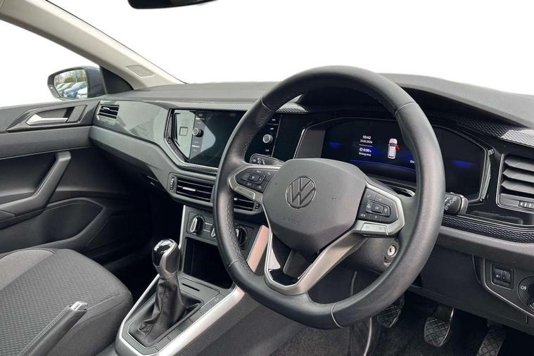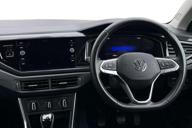 Adaptive cruise control without follow-to-stop and speed limiter, Advanced driver attention and drowsiness monitor, Bluetooth mobile phone interface, Dynamic road sign display, Emergency call service, Multifunction front facing camera for distance control, Park distance control, Power assisted speed sensitive steering, Preparation for navigation system with media and internet package, Preparation for We connect and We connect plus, Rear view camera, Speedo and rev counter, electronic odometer, trip, service interval display and exterior temperature gauge, Standard rear axle, Travel Assist - Lane keeping system and traffic jam assist, Travel assist including emergency assist, Trip computer, Warning signal and warning light for front and rear seatbelts not fastened, Washer fluid level indicator, Wireless app connect, Front wheel drive, Rear shock absorpion, Start-stop system with battery regeneration (recuperation - energy recovery during braking), DAB Digital radio, Diversity antenna for FM reception, Front and rear 6 speakers, Automatic dimming interior rear view mirror, Automatic headlight control with LED separate daytime running lights with coming/leaving home function, Body colour bumpers with chrome inserts, Body colour door handles, Body colour door mirrors, Electric front windows, Engine badge deletion, Headlight range adjustment, Heat insulating and laminated safety glass windshield, LED Headlights, LED rear combination lamps, Power folding adjustable/heated exterior mirrors and front passenger exterior mirror lowering function, Rain sensor, Rear electric windows, Rear fog light, Rear side wing doors, Rear tinted glass from B-pillar backwards approx 65% tinted, Rear windscreen washer and wiper with interval delay, Third brake light, 12V power socket in centre console, 2 front and 2 rear reading lights with switch off delay and dimmer, 2 USB-C ports in the front, 2 USB-C charging sockets on the center console in the rear, 3 rear head restraints, 60/40 split folding rear seat and rear seat bench not split, Ceramique roof lining, Chrome plated radiator grille inserts, air vent surrounds and light switch surrounds, Door and side trim panel, Driver and front passenger seat height adjustment, Driver/passenger sunvisors with illuminated vanity mirrors, Front centre armrest, Front seat backrest storage pockets, Front standard seats, Handbrake lever handle in leather, Hartley/Thomas cloth upholstery, Headliner in recycled material, Isofix child seat preparation easy-fit (for two outer rear seats, and front passenger seat) compatible with I-size, Leather trimmed gear knob, Luggage compartment cover, Luggage compartment lighting, Removable luggage compartment floor, Single front passenger seat, Standard climatic zones, Standard pedal cluster, Three spoke leather wrapped multifunction steering wheel, Light and vision pack - Polo, 3 point height adj front seatbelts + pretensioners, 3 point seat belt for centre rear seat, 3 point seatbelts, outer rear with ECE lable, ABS, Driver and front passenger airbag with front passenger airbag deactivation, Drivers and front passengers safety optimised head restraints, ESC (Electronic stability control) + EDL (Electronic Differntial lock) and ASR (Traction control), Extended and predictive pedestrian/ cyclist protection, Front assist with autonomous emergency braking (for Adaptive Cruise Control ACC up to 130 mph), Front curtain and side airbags with center airbag, Front disc brakes, Hill hold control, Manual child lock in rear doors, Rear drum brakes, Single tone horn, Tyre pressure loss indicator, Alarm with interior protection, Anti-theft alarm system with interior monitoring, backup horn, and towing protection, Anti-theft wheel bolts, Electronic engine immobiliser, Lava stone black gloss/matt decorative inserts in dash and front door panels, 16" Torsby alloy wheels, Low rolling resistance tyres,