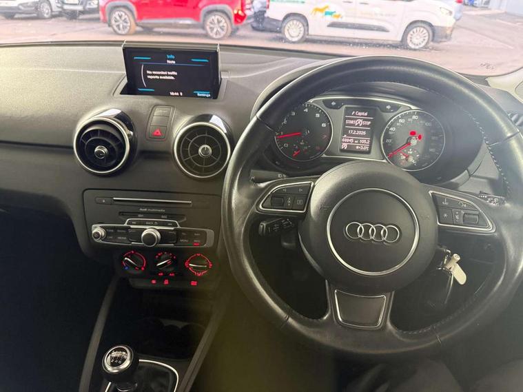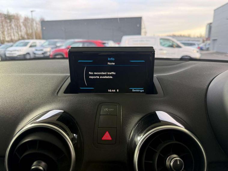 Audi drive select, Electro-mechanical PAS, Low washer fluid indicator, Service interval indicator, Voice control system, Additional SD card reader, Audi music interface, Bluetooth audio streaming, DAB Digital radio, Adaptive brake lights, Electric adjustable door mirrors, Electric front windows, Electric rear windows, Front fog lights, Heat insulating glass, Heated door mirrors, Heated rear windscreen, Rear wiper, 12V Accessory socket in centre console, 3 spoke leather multifunction sports steering wheel, Adjustable rear head restraints, Cupholders in centre console, Door sills trims with aluminium inlays, Front floor mats, Front head restraints, Front sports seats, Height adjustable front seats, Illuminated glovebox, Isofix attachments on outer rear seats, Jack and tool kit, Leather handbrake, Lumbar adjustment for front seats, Rake/reach adjustable steering wheel, Split folding rear seats, ABS/EBD, Brake assist function, Driver and passenger side airbags, Driver/Front Passenger airbags, EDL, ESP with ASR, First aid kit, Front and rear seatbelt reminder, Front passenger airbag deactivation, Head airbags, Height adjustable front seatbelts, Tyre pressure monitor, Warning triangle, Locking wheel bolts, Remote control central locking, Thatcham category 1 alarm + immobiliser, Tyre repair kit,