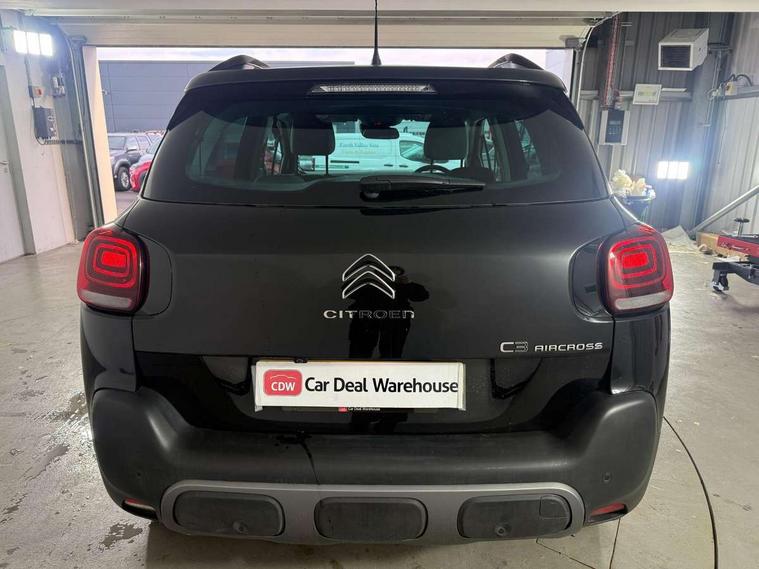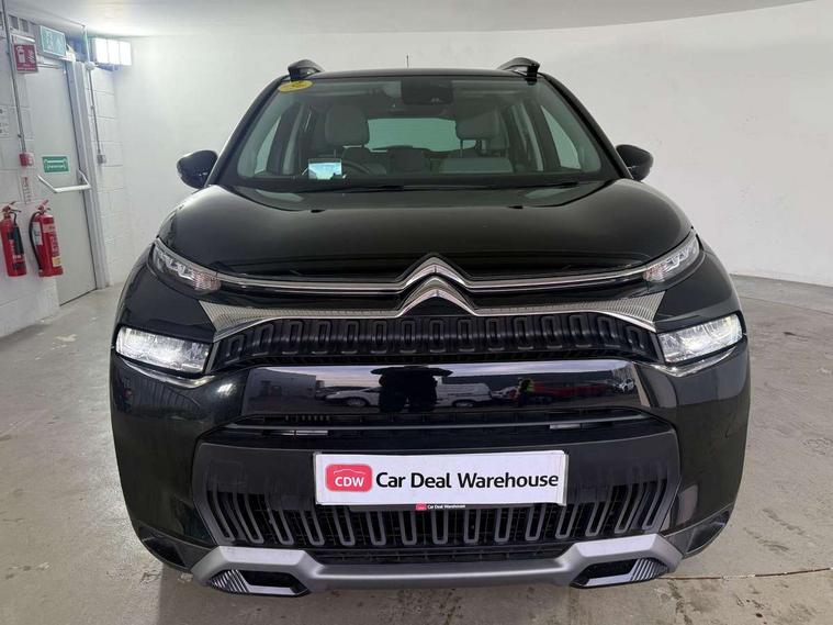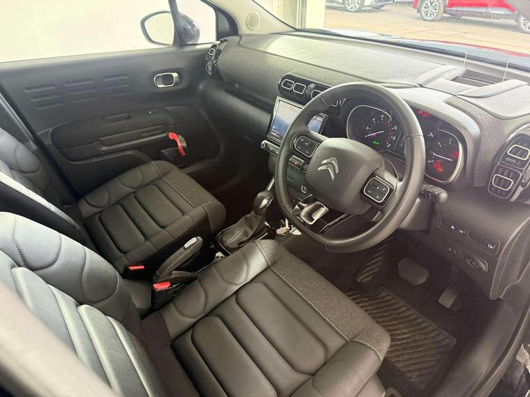 3.5" head up display, 9" Touchscreen display, Citroen connect box emergency and assistance system, Citroen Connect Nav with 3D navigation, Coffee Break Alert, Cruise control with speed limiter, Driver instrument cluster including trip computer and rev counter with white text LCD display and white needles and chrome decor, eCall emergency call system, Engine start button, Lane departure warning system, Mirror screen with Apple CarPlay and Android auto, Outside temperature sensor, Rear parking sensors, Tailgate, Top rear vision reversing camera, Traffic signs and speed limit recognition and recommendation, Variable assistance power steering, Voice recognition for radio, navigation and telephone features, Bluetooth hands free and media streaming with USB socket, Citroen connected DAB radio with 6 speakers, Steering wheel mounted controls for stereo and telephone, 3D effect LED rear lights, Automatic Eco LED headlights, Automatic lights and windscreen wipers, Black roof bars, Body colour painted door handles, Chrome chevrons front grille, Electric front windows + one touch + anti-pinch, Electric rear windows with one touch/anti-pinch, Electrically adjustable door mirrors, Electrically folding door mirrors, Electrochrome rear view mirror, Fog lights integrated into front bumper, Front and rear body coloured bumpers, Heated door mirrors, Integrated roof spoiler, LED daytime running lights, LED third brake light, Rear side wing doors, Rear wiper, Roof aerial, Tinted rear windows and rear quarterpanel glass, Variable front intermittent wipers, 12V socket in front, 12V socket in rear of vehicle, 60/40 split folding rear seats with sliding rear bench, centre armrest and ski flap, Automatic air conditioning, Boot light, Brasilia leather effect and flecked cloth upholstery with metropolitan graphite ambience, advanced comfort seats and wrapped dashboard, Central adjustable armrest on drivers seat, Centre console with closed storage and chrome insert, Driver and front passenger cup holders, Driver and passenger sunvisor with courtesy mirror, Flex load/Pull out boot floor, Front and rear courtesy reading lights, Front and rear door storage, Front head restraints, Front passengers seat flat folding, Glovebox with closable lid, Height adjustable driver's seat, Height and reach adjustable steering wheel, Leather steering wheel with satin chrome inserts and radio controls, Manual handbrake with chrome insert, Passenger compartment headlight adjustment, Rear isofix mounting points (outside seats) with top tether, Row 2 - Three seats with individually adjustable head rests, Satin chrome interior door handles, Single front passenger seat, Gloss black colour pack - C3 Aircross Max, 3 point, height adjustable, pre tensioned front seatbelts, ABS with Electronic brakeforce distribution and Emergency braking assistance, Active safety brake including Forward collision warning, Automatic illumination of hazard warning lights, Curtain airbags, Driver airbag, Drivers/passengers and rear seats unfastened seat belt warning, ESC (Electronic Stability Control), Front lateral airbags, Front passenger airbag, Front passenger airbag deactivation switch, Hill start assist function, Mono-tone horn, Rear door child safety locks, Three 3 point rear seatbelts, Tyre pressure monitor, Automatic door and boot locking when moving off with automatic unlocking in case of impact, Automatic locking of the vehicle (after 30 seconds if door or boot unopened), Immobiliser, Keyless entry and keyless start, Perimetric and volumetric anti theft alarm, Remote central locking + deadlocks, Vehicle locater function (headlights illuminate when button on key pressed), Gloss black centre console, Satin chrome air vent decors,