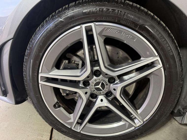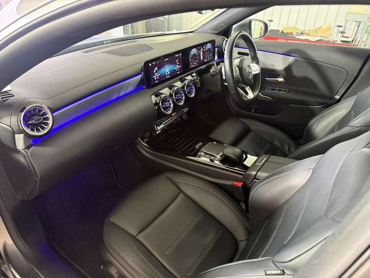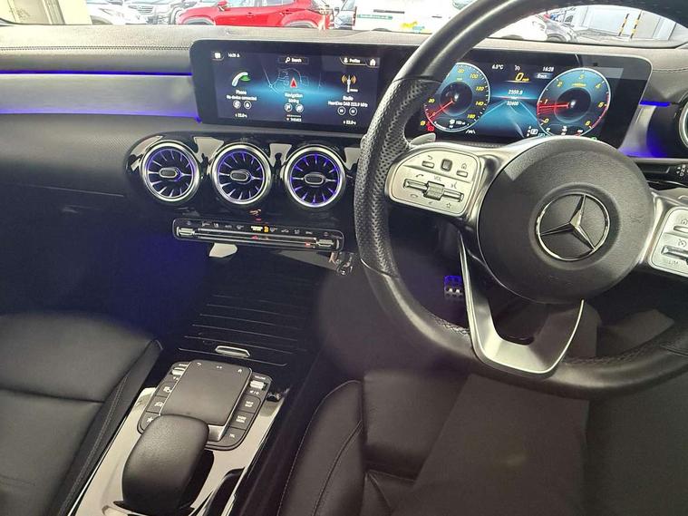 10.25 inch Instrument display with digital cockpit, 10.25 inch touchscreen central media display, Attention assist - Monitors steering behaviour and long journey fatigue, Bluetooth connection, Car wash mode, DYNAMIC SELECT with a choice of driving modes (ECO, Comfort, Sport and Individual), ECO start/stop function, Fluid level warning indicator for fuel, oil, coolant and washer fluid, Hard-disk navigation, Hey Mercedes Voice activation, Lamp failure indicator, Mercedes me connect including emergency call system, accident recovery, breakdown and maintenance management, Mercedes me remote services, Outside temperature gauge, Owners manual and service booklet in English, Pre-installation of private car share, Preinstallation for Mercedes Benz link, Radio aerial integrated into front and rear windshields, Service indicator (ASSYST), Smartphone integration with Apple CarPlay and Android auto, Traffic sign assist, Trip computer in multifunction display with current consumption indicator, Lowered comfort suspension, Rear axle multi-link, DAB digital radio tuner, MBUX multimedia system with DAB digital radio and touchpad including satellite navigation, Mid-range sound system, USB (type C) ports (2) in stowage compartment and 1 in front of centre console, Adaptive brake lights, AMG body styling with AMG front apron and rear apron and visible exhaust tailpipe in chrome trim elements, AMG bodystyling side skirts, Auto headlights, Body colour bumpers, Body colour door handles, Chrome beltline strips, Chrome weather strip, Diamond radiator grille pins in chrome with silver painted louvres and chrome insert, Electric panoramic sliding sunroof, Electric windows, Electrically adjustable and heated door mirrors with integrated LED indicators, Exhaust system with 2 Visible tailpipe trim elements and rear apron with trim in chrome, Headlamp assist automatic headlamp activation, Heated glass rear windscreen + timer control, High level LED third brake light, Integrated LED daytime running lights, Interior mirror with black reading lamps and frameless, LED tail lamp, Multibeam LED headlamps with adaptive highbeam assist plus, Privacy glass with dark tinting on rear side windows and rear window, Rain sensing windscreen wipers with two sensitivity settings, Rear fog lamp, Rear side wing doors, Rear wiper, Window line trim strip in chrome, 3 seat bench in 2nd row, 3 spoke flattened bottom nappa leather multifunction steering wheel with perforated leather in grip area, 40:20:40 split folding rear seat backrests, Air conditioning - Two zone thermotronic luxury automatic climate control with display, Air vents with surround in silver chrome, Automatic child seat recognition sensor, Black roof lining, Brushed stainless steel sports pedals with rubber studs, Floor mats with stitched AMG lettering, Front centre armrest with stowage, Galvanished gear shift paddles on steering wheel, Heated front seats, Illuminated front door sills with changeable cover, Illuminated glove compartment stowage, Interior lighting - 64 colour Ambient lighting, Luggage net on driver/front passenger seat backrest, Manually height and reach adjustable steering column, Rear armrest with two integral cup holders for drinks, Rear head restraints, Single front passenger seat, Sport seats with fixed head restraints, Stowage compartment in centre console with retractable cover, Sunvisors with illuminated vanity mirrors, Touchpad on center console, Twin front cupholders, Two outer rear seat isofix and top tether child seat fixing points, Keyless go pack - CLA, Light and sight pack - CLA, Mirror pack - CLA, Parking package - CLA, Seat comfort pack - CLA, Active bonnet pedestrain safety measure which detects an impact and raises bonnet by 65mm, Adaptive brake assist with hold function and hill start assist, Anti-lock braking system (ABS), Black seat belts, Bonnet with power domes, Brake pad wear warning indicator, Childproof locks manually operated for rear doors and electrically operated for rear power windows, Crash responsive emergency lighting, Driver and front passenger head and sidebags, Driver and front passenger windowbags, Drivers knee airbag, Dual stage driver and front passenger airbags, Electric parking brake, Electronic stability programme with acceleration skid control, ESP curve dynamic assist, Front and rear seatbelt reminder, Front passenger seat occupancy sensor, Three point rear seat belts, Tyre pressure monitoring system, Warning triangle and first aid kit, Remote central locking and crash sensor with emergency opening function, Urban guard vehicle protection system with immobiliser and interior protection, Light aluminium with longitudinal grain interior trim, 18" 5 twin spoke design alloy wheels painted in titanium grey with high sheen finish, Summer tyres, Tirefit tyre sealant kit,