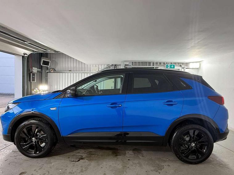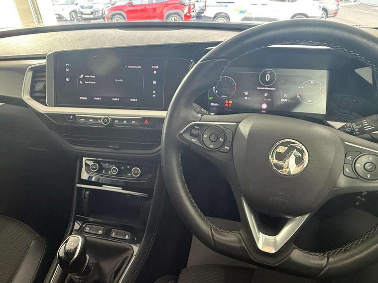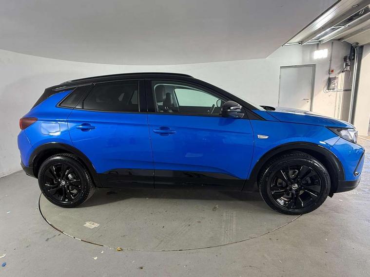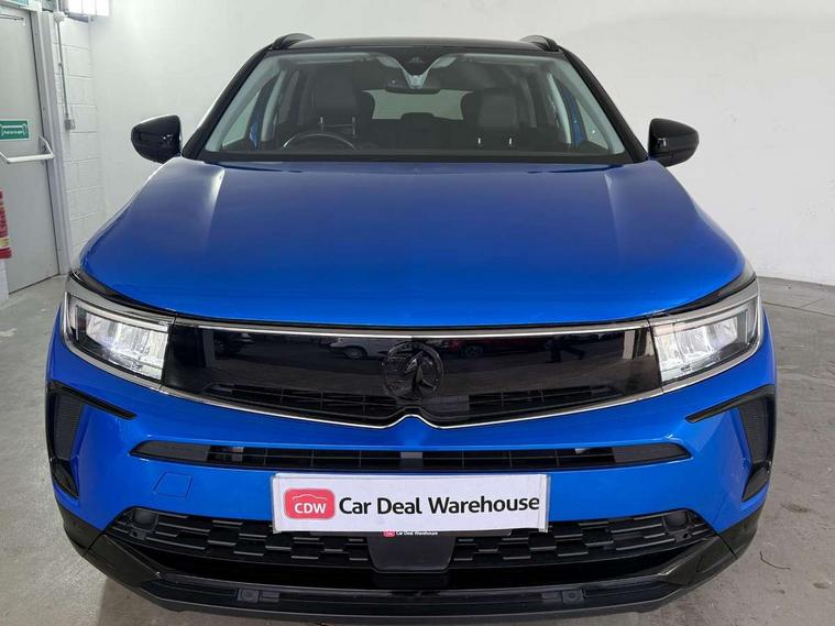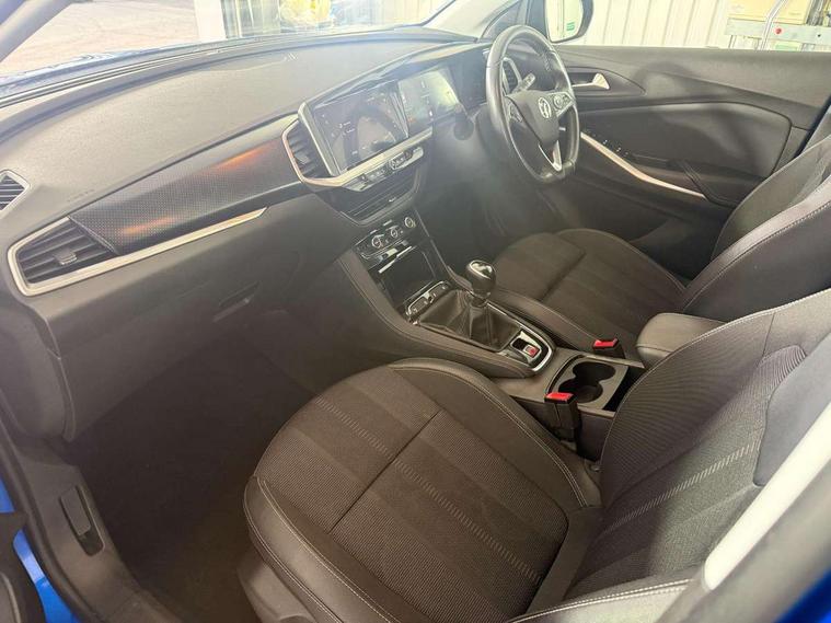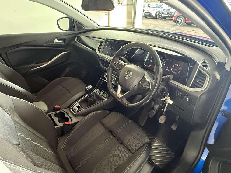 12" colour digital cluster, Central facia display with digital clock, outside air temperature and audio information, Cruise control with speed limiter, Digital fuel gauge with low fuel level warning light, Digital rev counter, Digital speedometer, Digital water temperature gauge with warning light, Driver drowsiness alert system, Driver information - Total mileage, service indicator, oil life, Front and rear parking distance sensors with 180 degree rear view camera and advanced park assist, Gearshift up/down indication light, Lane departure warning system, Lane keep assist, Lights on audible warning, Multi function trip computer - Trip odometer, vehicle range, average speed and fuel economy, instantaneous fuel economy and driving time, Multimedia navi pro with 10" colour touch+ sat nav+AM/FM/DAB radio, bluetooth audio streaming/mobile phone portal, Apple carplay/Android auto, USB, Side blind spot alert, Speed sensitive electric power assisted steering, Speed sign recognition, Vauxhall connect including Emergency call (SOS e-call) and Breakdown call (b-call), Anti-roll bars, Compound crank rear suspension with coil springs and gas pressure dampers, Independent decoupled MacPherson strut front suspension with gas pressure dampers and coil springs, anti-roll bar, Six speaker - four front + two rear, Steering wheel mounted audio/phone/cruise controls, Automatic lighting control, Automatically dimming anti dazzle rear view mirror, Black door mirrors, Black side window trim, Body colour door handles, Body colour upper front bumper, Carbon black lower front and rear bumpers, protective wheel arches and lower door cladding, Collapsible windscreen wipers, Dark tinted rear side and tailgate windows, Door to door illumination, Electric adjustable/heated/folding door mirrors, Electrically operated front and rear windows with safety auto reverse and one touch up/down facility, Front wiper system spraying directly from wipers, Hazard warning lights, Heated rear screen with timed cut off, High beam assist, High gloss black exterior detailing, High gloss black Griffin for Vizor and tailgate with high gloss black Grandland tailgate lettering, High gloss black protective front and rear skid plates and C-shape bumper inserts, High gloss black roof rails, High level centre rear brake light, Intermittent rear window wash/wipe, LED daytime running lights, LED Headlights, LED tail lights, Magic wash, Manual headlight beam levelling, Rain sensor windscreen wipers, Rear side wing doors, Rear spoiler, Reversing light, Shark fin aerial, Soundproof insulated windscreen, Two speed windscreen wipers with variable intermittent wipe, Upper and lower bumper design, Vizor front grille, Welcome lighting, 12V electrical accessory socket in front, 3 bench rear seats in 2nd row, 3 spoke flat bottom leather steering wheel with satin chrome effect bezel, 4 way electric driver lumbar support, 60/40 split folding rear seat, Advanced predictive logic control system using a sun sensor, Ambient centre console downlighter, Automatic air direction and fan speed with manual override, Charcoal filter, Chrome effect interior door handles, Covered storage compartment in centre console and in driver armrest, Driver's centre armrest, Drivers seat with height, reach, backrest adjustment and seat cushion extension, Dual zone electronic climate control, Ergonomic active drivers sports style seat, Focus cloth upholstery, Front door pockets with 2.6 litre capacity, Front passenger seat, Front passenger seat with reach and backrest adjustment, Front passengers sports style seat, Fully carpeted luggage area, Height adjustable headrests, Illuminated driver/passenger sunvisors with vanity mirror, Illuminated luggage area, ISOFIX on front passenger and rear outer seats, Luggage compartment cover, Reach + rake adjustable steering column, Rear centre seat head restraint, Rear door pockets with 1.8 litre capacity, Rear passenger compartment heating ducts, Rear reading lights, Two drinks holders in centre console, Anti-lock braking system (ABS), Automatic emergency braking with pedestrian detection, Child proof locks on rear doors, CSC - Cornering stability control, Deactivation switch for front passenger front and side impact airbags, Deflation detection system, Driver airbag, Dual seatbelt pretensioners on front seats, EBD - Electronic brakeforce distribution, Electronic parking brake, Electronic stability program (ESP) including traction control, Front brake ventilated disc 304mm diameter, Front passenger airbag, Front seat side impact airbags, Full-size curtain airbags for driver and front passenger, Hill start assist, Hydraulic Brake Assist (HBA), Inertia reel lap and diagonal seatbelts for all seats, Load limiters on outer rear seatbelt retractors, Pretensioners on outer rear seatbelt retractors, Rear brake ventilated disc 268mm diameter, Smart seatbelt reminder for front and rear seats, Tyre pressure monitoring system, Central locking, Deadlocking system, Electronically protected audio equipment, Engine deadlock immobiliser, Locking wheel nuts, Remote security alarm system, Black door panels with black premium leather effect inserts, Dax decor facia panel with palladium medium finish, 18" 5 twin spoke high gloss black alloy wheels, Tyre inflation kit,