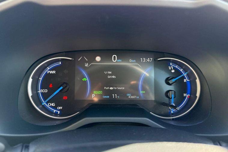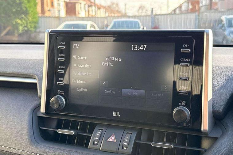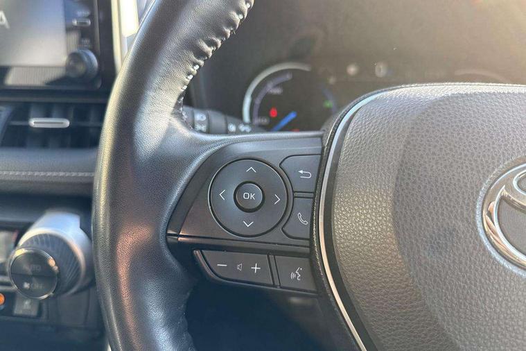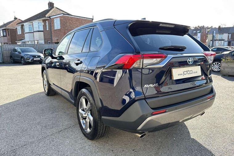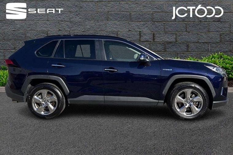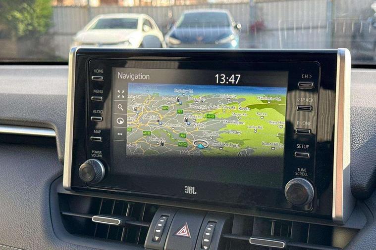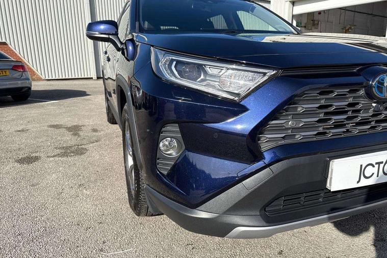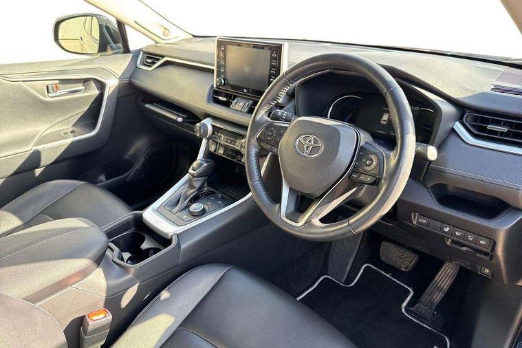 7" colour TFT display, Adaptive cruise control with lane trace assist, Adjustable speed limiter, Blind spot monitoring with rear cross traffic alert, Bluetooth system, Cyclist Detection, Drive mode selector, eCall emergency call system, ECO-driving indicator, Electric power steering, Hybrid system indicator, Lane departure warning system, Lights on warning, Low screen washer fluid warning, Night Time Pedestrian Detection, Pedestrial detection, Power boot opening and closing, Rear parking camera, Rear parking sensors, Remote boot door release in cabin, Tachometer, Touch 2 Go navigation system including 3D maps and voice control, Traffic sign recognition, Trip computer, Voice control system, Vehicle Stability Control (VSC), 6 speakers, 8" Multimedia display touch screen, Auxiliary socket for external MP3 player, DAB audio, Steering wheel mounted audio controls, Toyota touch media system, USB connection, Auto dimming interior mirror, Auto high beam, Automatic headlamp levelling, Automatic headlights, Automatically retractable door mirrors, Black roof rails, Body colour door handles, Body colour door mirrors, Body colour rear spoiler, Body coloured bumpers, Body coloured Shark-fin antenna, Door mirror puddle lights, Electric adjustable door mirrors, Emergency brake-light signal (EBS), Follow me home headlights, Front fog lights, Headlight cleaners, Heated door mirrors, LED daytime running lights, LED High mounted stop lamp, LED rear lights, Meshed shape upper front grille, Power front windows, Power rear windows, Privacy glass, Projector LED headlights, Rear screen wiper - intermittent, Rear windscreen defogger, Silver front under-run, Silver rear under-run, Trailer sway control, Turning signal integrated indicators in door mirrors, Windscreen wiper de-icer, 3 rear headrests, 60/40 split fold rear seat back, Boot light, Clean air filter, Driver and front passenger personal light, Driver and front passenger Whiplash Injury Lessening seats, Driver and passenger sunvisors with illuminated vanity mirrors, Driver seat memory function, Dual sided deck board in boot, Dual zone automatic air conditioning, Floor mats, Folding rear centre armrest, Front and rear bottle holders, Front centre armrest, Front footwell lights, Front headrests, Front seat and rear pockets, Front/rear roof mounted assist grips, Grey roof lining, Heated driver and front passenger seats, Heated steering wheel, Isofix child seat preparation, Leather gear shift with chrome surround, Leather upholstery, Light blue ambient lighting on front cupholders and open tray, Manual telescopic and tilt 3-spoke leather steering wheel with Chrome insert, Manually reclining and sliding front passenger seat, Pollen filter, Power height-adjustable sliding reclining and lumbar support for driver seat, Rear coat hooks, Rear door armrests, Rear passenger air vents, Reclining rear seats, Satin chrome interior door handles, Sunglasses holder, Parking pack - Rav4, 3x3 point rear seatbelts, ABS/EBD, Adjustable front driver and passenger seat belt extender, Brake assist function, Child proof door locks, Collision mitigation braking system, Driver/Front Passenger airbags, Driver/front passenger side airbags, Drivers knee airbag, Electronic parking brake, Electronic Stability Programme (ESP), Emergency brake light system (EBS), Front and rear curtain airbags, Front and rear seatbelt reminder, Hill start assist, Passenger airbag cut-off device, Seatbelt pretensioners with load limiters, Traction control, Tyre pressure warning, Alarm/immobiliser, Glass-breaking alarm sensors, Light - on and Key in reminder, Remote central locking, Smart entry + Smart start, Speed sensitive auto door locking, Tilt detection sensors, Piano black centre console with silver insert, Soft-touch black lower dashboard, Soft-touch black upper dashboard with silver insert, Full size spare wheel,