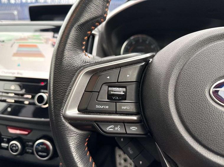 8" touch screen, Apple car play/Android Auto, Blind spot monitoring, Bluetooth system, EyeSight driver assist - Adaptive cruise control, lane keep assist/sway warning and pre-collision braking, Interior fuel flap release, Lane change assistant, Multi function display, Rear cross traffic alert, Rear view camera, Satellite navigation system, Speed sensitive power steering, Trip computer, Voice control system, Sports suspension, SVDC - Subaru Vehicle Dynamics Control, 2 USB ports, 6 speakers, Auxiliary input socket, DAB Digital radio, iPod connection, Radio/CD, Steering wheel mounted audio controls, Subaru Audio system, Automatic headlights, Automatic rain sensing wipers, Body colour bumpers, Body colour door handles, Body colour door mirrors, Daytime running lights, Electric folding door mirrors, Electric front windows + drivers one touch/anti-trap, Electric glass tilt and slide sunroof, Front fog lights, Heated door mirrors, Heated rear window with timer, Heated windscreen + washer jets, High beam assist, LED Headlights, Pop-up headlight washers, Rear privacy glass, Rear wiper, Roof antenna, Roof rails, Roof spoiler, Steering responsive headlights, UV reducing glass, Wheel arch extensions, Windscreen wiper de-icer, 60/40 split folding rear seat, 8 way electric adjustable drivers seat, Adjustable height seatbelt anchor, Cargo hooks, Centre console cupholder, Centre console storage box, Defroster vents for front and side windows, Door pockets with bottle holder, Dual zone automatic air conditioning, Front armrest, Front map lights, Front passenger side seatback pocket, Heated front seats, Height adjustable driver's seat, Illuminated centre tray, Illuminated driver/passenger vanity mirror, Isofix child seat attachment, Leather gear knob, Leather upholstery, Luggage area lamp, Luggage hooks, Multifunction leather steering wheel with gearshift paddle, Rear armrest, Rear headrests, Rear seat heater ducts, Retractable luggage cover, Tilt/reach adjustable steering wheel, Tonneau cover, Two 12V accessory power outlets, Under floor storage in luggage area, 3x3 point rear seatbelts, ABS + traction control, Active front headrests, Childproof rear door locks, Curtain airbags, Driver and passenger seatbelts with warning light, Driver/Front Passenger airbags, Drivers knee airbag, EBD + Brake Assist, Electronic parking brake, ESP, Front seatbelt pretensioners + load limiters, Hill descent control, Hill hold control, Safety pedal system, Side airbags, WIL whiplash protection front seats, Immobiliser, Keyless smart entry with push button start, Remote central locking, Thatcham Cat.1 alarm, 18" Alloy wheels, Tyre repair kit,