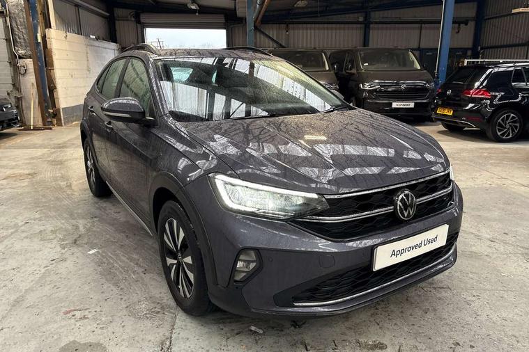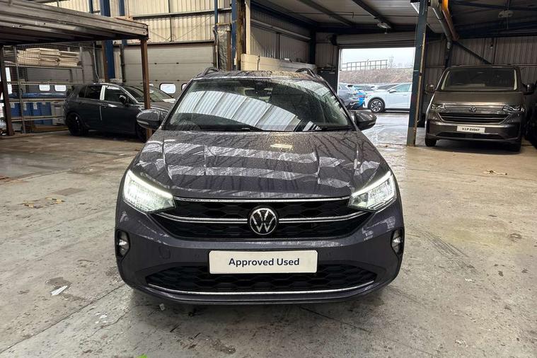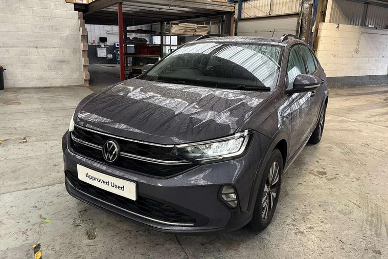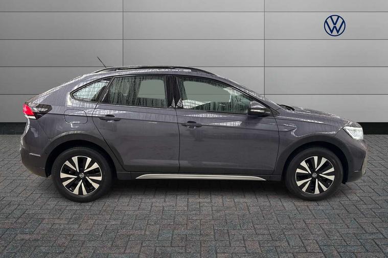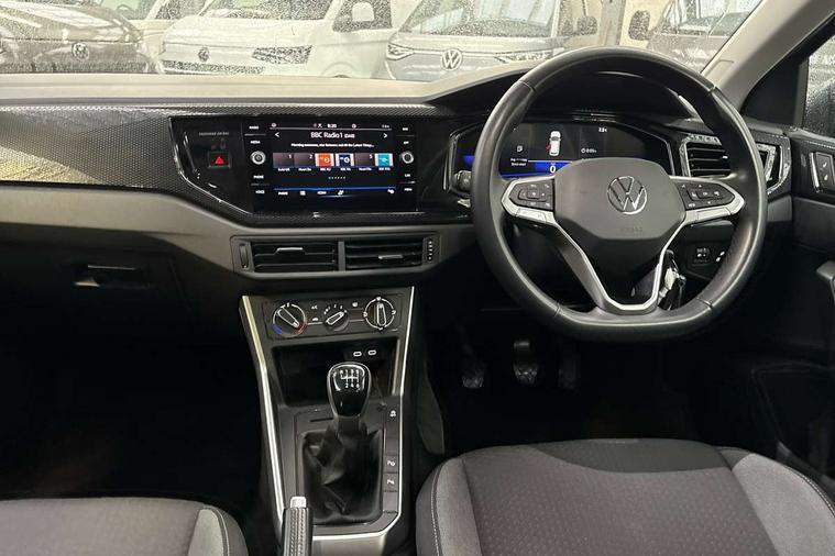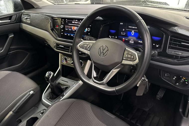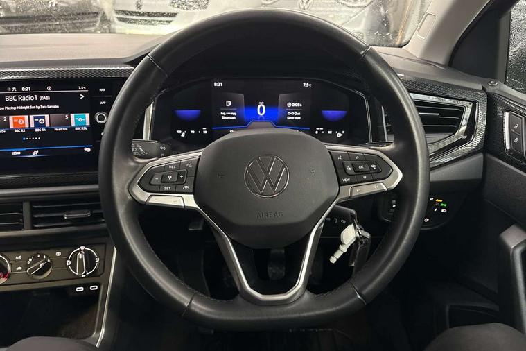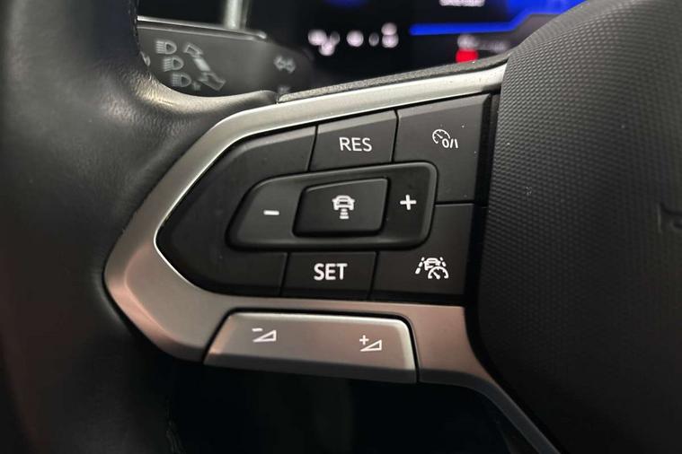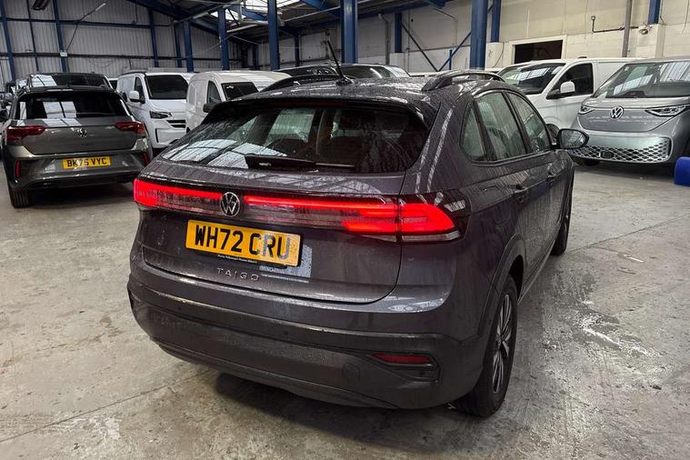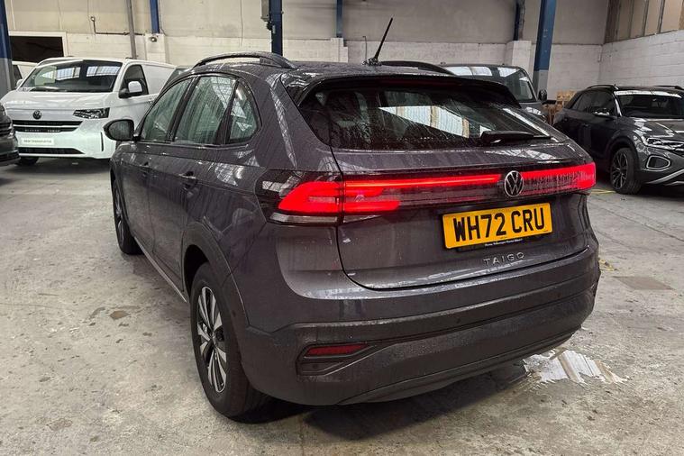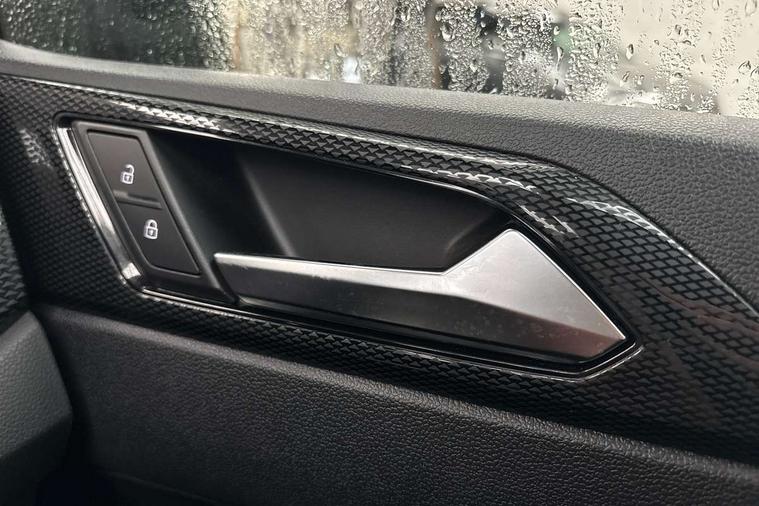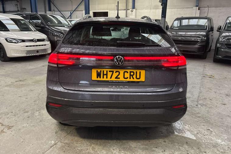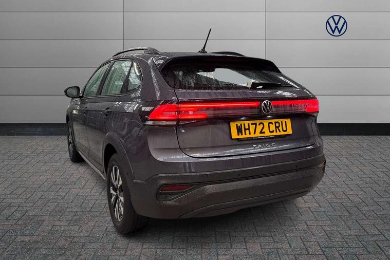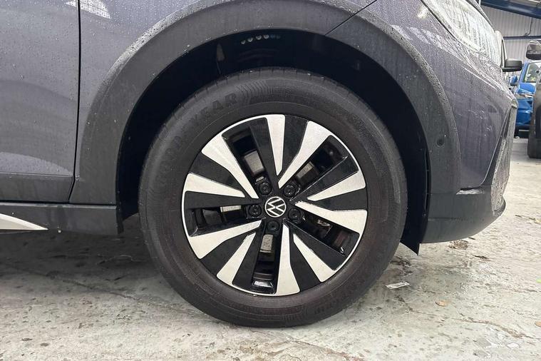 Driver alert system, e-Call (emergency call), Power Steering, Travel assist including emergency assist, Washer fluid level indicator, Wireless Charging including Bluetooth, Start-stop system with battery regeneration (recuperation - energy recovery during braking), WeConnect plus, Ambient lighting with logo projection, Aspherical driver's exterior mirror, Auto headlights, Body coloured bumpers, Body coloured exterior mirror housings and door handles, Electric windows, External USB type C socket and charging sockets, Front fog lamps with cornering function, Headlight range control, Heat insulating glass windscreen, LED headlamps, LED rear combination lamp, LED third brake light, Left convex exterior mirror, Power folding adjustable/heated exterior mirrors and front passenger exterior mirror lowering function, Rear fog light on one side, reversing light on both sides, Rear side wing doors, Rear wash/wipe with intermittent wipe setting, 'Slash/ Austin' Cloth upholstery, 12V socket in centre console, 2 front reading lights, 3 rear head restraints, 3 seat bench in 2nd row, Black carpets, Child seat anchor for child seat system i-Size, 2x top tether and child seat anchor in front on front passenger side, Door and side trim panels in titan black, Driver and front passenger seat height adjustment, Front centre armrest, Handbrake lever handle in leather, Height and reach adjustable steering wheel, Leather trimmed gear knob, Leather wrapped multifunction steering wheel, Luggage compartment floor, Luggage compartment light, Lumbar support for driver's and front passengers seat, Seat covers in titanium black, Single front passenger seat, Split folding backrest with centre armrest and unsplit rear seat bench, Storage compartment under front seats, Sun visors with illuminated vanity mirrors, Chrome Package - Taigo, Drivers assistance pack - Taigo, Light and Sight pack including High beam assist - Taigo, 2 x 3-point seatbelts/outer rear seats with ECE label, 3-point seat belts in front with pretensioner and height adjustment, 3-point seatbelt for centre rear seat, Driver and front passenger airbags with front passenger airbag de-activation, front side and curtain airbags, Driver and front passenger safety-optimised head restraints, Electronic stability control, Extended and predictive pedestrian/ cyclist protection, Front and rear disc brakes, Front curtain and side airbags with center airbag, Hill start assist, Manual rear child locks, Single tone horn, Tyre pressure loss indicator, Anti-theft alarm system with interior monitoring, backup horn, and towing protection, Anti-theft wheel bolts, Lava stone black gloss/matt decorative inserts in dash and front door panels, Low rolling resistance tyres,