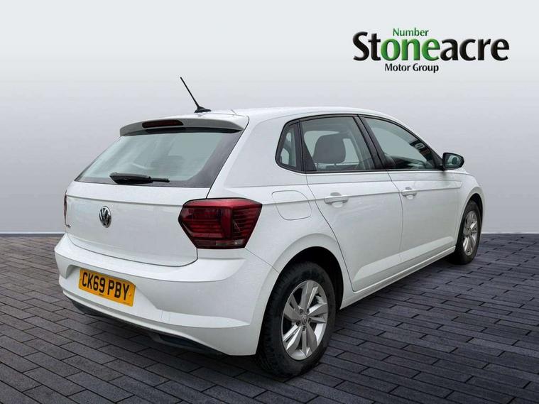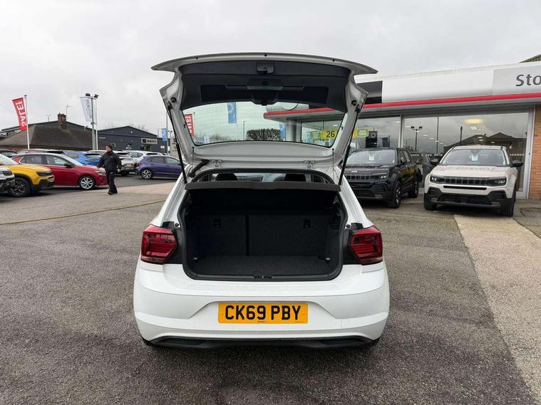 App-Connect, Bluetooth Telephone preparation, Discover navigation + European map data, Driver alert system, Multifunction colour display, PAS - speed related, Service interval indicator, Start/stop system, Trip computer, Warning buzzer and light for front seatbelts unfastened, Battery regeneration during braking, 6 speakers, Composition media system with radio, glovebox mounted CD, colour touch screen, SD card, aux-in, USB, multimedia interface, DAB Digital radio, Black grille with chrome surround, Black radiator grille with chrome insert, Body colour bumpers, Body colour door handles, Body colour rear spoiler, Body coloured side sills, Electric front windows, Front wash/wipe with interval delay, Fully galvanised body, Heat insulating tinted glass, Heated rear window with auto timer, High level 3rd brake light, LED daytime running lights, LED rear number plate lights, Rear electric windows, Rear windscreen washer and wiper with interval delay, 12V power socket in centre console, 2 bag hooks in luggage compartment, 2 cupholders, 3 rear head restraints, 3 spoke steering wheel, 4 grab handles, 60/40 split folding rear seat, Centre console storage, Chrome interior door handles, Chrome plated light switch, Driver/front passenger seat height adjustment + underseat drawers, Driver/passenger sunvisors with illuminated vanity mirrors, Dust/pollen filter, Front door pockets, Front seat backrest storage nets, Front/rear reading lights, Gear lever gaiter in high glass black trim surround, Glovebox, Handbrake grip button in chrome effect, Height/reach adjustable steering column, Instrument lighting, white adjustable panel illumination, Interior light with delay, Isofix Preparation 2 Rear child seats, Jack and tool kit, Luggage compartment cover, removable, Luggage compartment lighting, Multifunction leather steering wheel with leather gear knob/handbrake grip, Storage compartment in front doors, Storage compartment in rear doors, Storage compartment under front seats, Sunglasses holder, Variable boot floor, Variable Luggage compartment, Light and sight pack - Polo, 3 point height adj front seatbelts + pretensioners, 3x3 point rear seatbelts, ABS, Automatic post collision braking, Driver/front passenger airbag, Driver/Passenger whiplash optimised head restraints, ESP with EDL + ASR, Front and rear passengers curtain airbag system including front side airbags, Front disc brakes and rear drum brakes, Front passenger airbag deactivation, Hill hold control, Hydraulic Brake Assist (HBA), Two tone horn, Tyre pressure monitoring system, Alarm with remote central locking and interior protection, Electronic engine immobiliser, Air vents in High gloss black, Black high gloss trim, Full size spare wheel,
