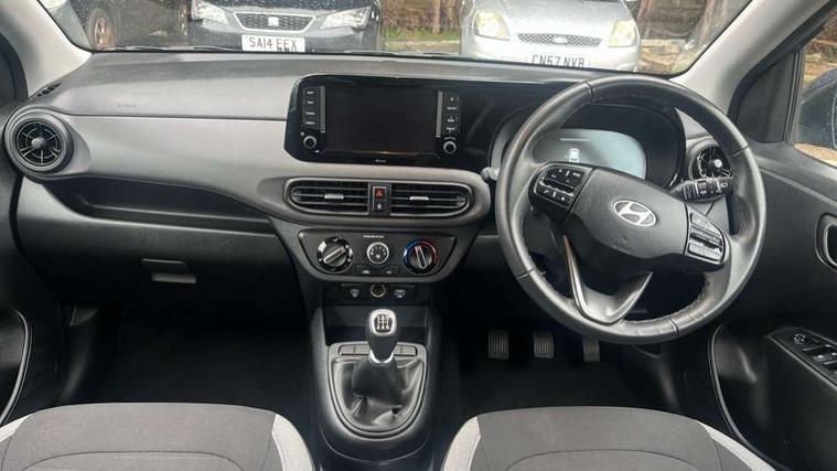 Apple car play/Android Auto, Bluelink mobile remote connectivity, Bluetooth connectivity with voice recognition, Cruise control, Driver attention alert system, eCall emergency call system, Forward Collision-Avoidance Assist (FCA) - Pedestrian/Cyclist, Front USB-C charging and USB-A data, Full-width 4.2" LCD instrument cluster, Intelligent speed limit assist, Lane departure warning system with lane keep assist - LKAS, Lane follow assist, PAS, Rear parking sensors, Rear view camera with guidelines, Roadside assistance, Start/Stop function, Tailgate, Trip computer, 2 front/2 rear speakers, Rear USB-C device charger, Steering wheel audio, phone and cruise controls, 1 speed non intermittent rear windscreen wiper, Black finish on B pillars, Body colour door handles, Body coloured bumpers, Body coloured door mirrors, Electric front windows, Electric rear windows, Electrically adjustable and heated door mirrors, Flat metal emblem, Front grille in matte black, Front intermittent wipers, Halogen daytime running lights, Halogen headlights, Headlights inner with Black Blade design, Heated rear window, High beam assist, Indicator light on door mirrors, Rear roof spoiler with integrated LED brake light, Rear side wing doors, 12v power outlet - front, 3 seat bench in 2nd row, 60/40 split folding flat to floor rear seats, Air conditioning, Auto light control, Bottle holders in front/rear doors + front centre console, Cabin and luggage compartment interior lighting, Cloth upholstery, Driver + passenger vanity mirrors, Driver's seat height adjustment, Driver/passenger sunvisors with ticket holders, Floor mats, Front door pockets, Front Head Restraints - Vertical and Horizontal Adjustment, Glove compartment, Height adjustable steering column, Isofix child seat preparation, Leather multifunction steering wheel, Rear door pockets, Single front passenger seat, Vertical adjustment rear head restraints, 3x3 point rear seatbelts, Airbags - front, front side and curtain airbags, Anti-lock brake system (ABS), Autonomous emergency braking (AEB) with forward collision warning system, Brake assist function, Childproof rear door locks, Electronic stability control, Front and rear seatbelt reminder, Front seatbelt pretensioners, Hill start assist control (HAC), Passenger airbag deactivate switch, Traction control, Tyre pressure monitoring system, Immobiliser, Perimeter alarm, Rear occupant alert, Remote central locking, Second remote key, Speed sensitive auto door locking, 15" Alloy wheels, Tyre repair kit,