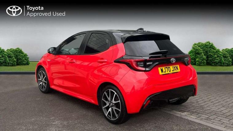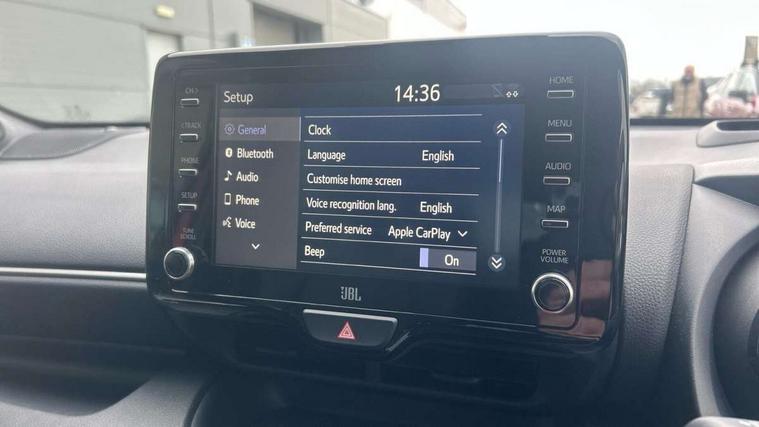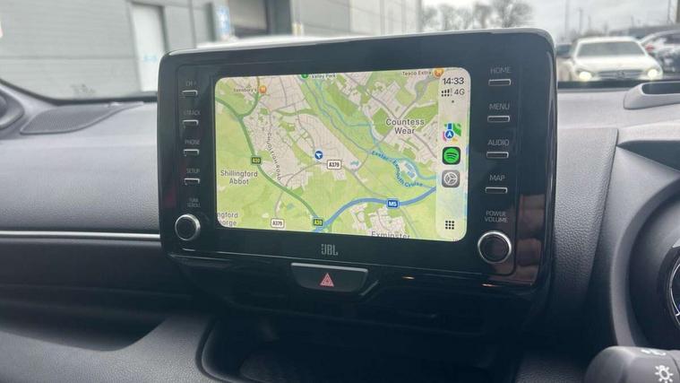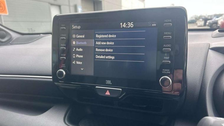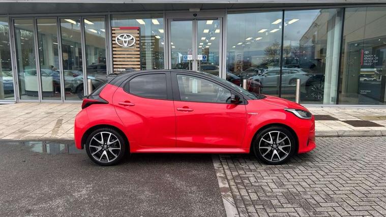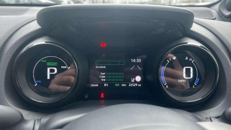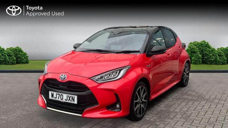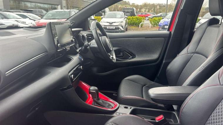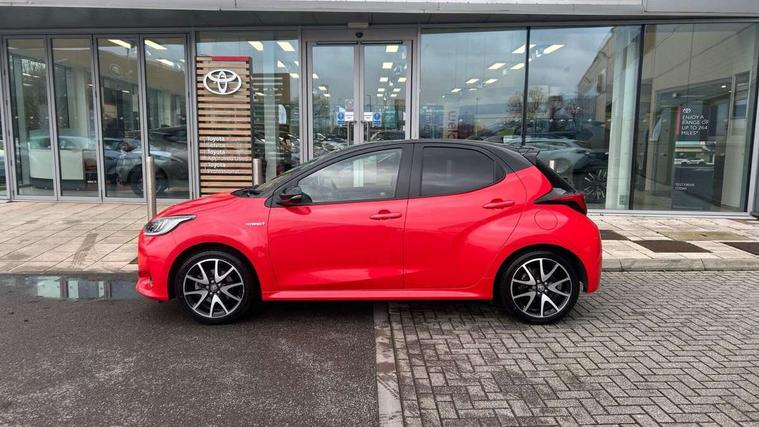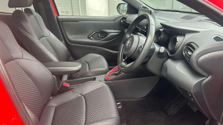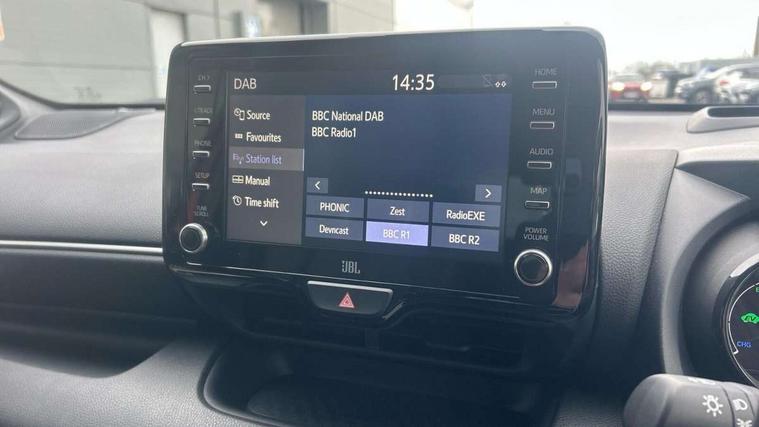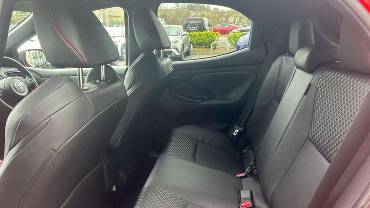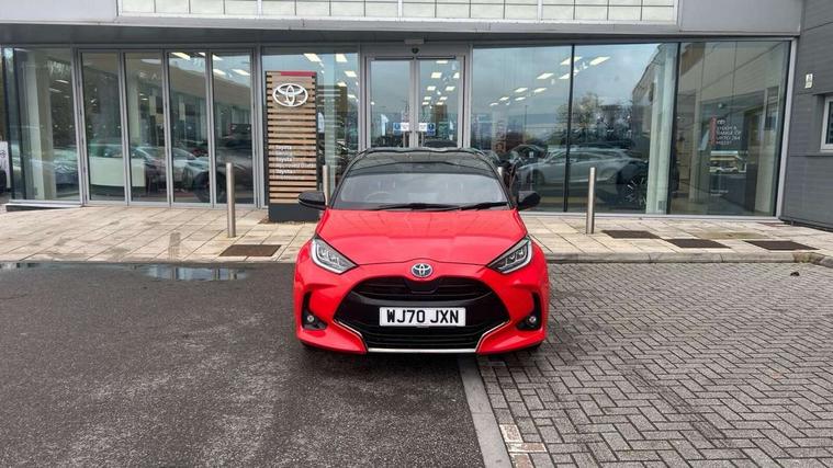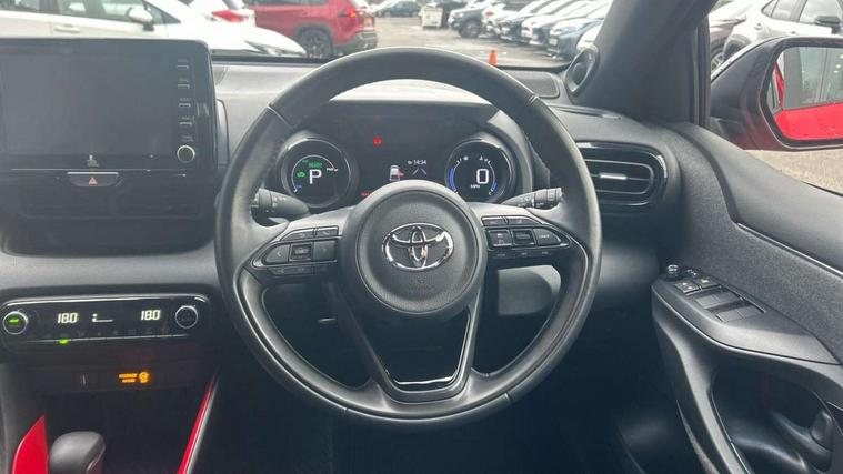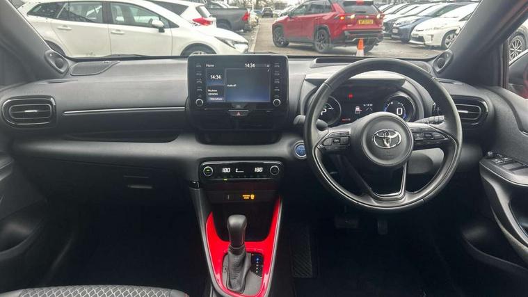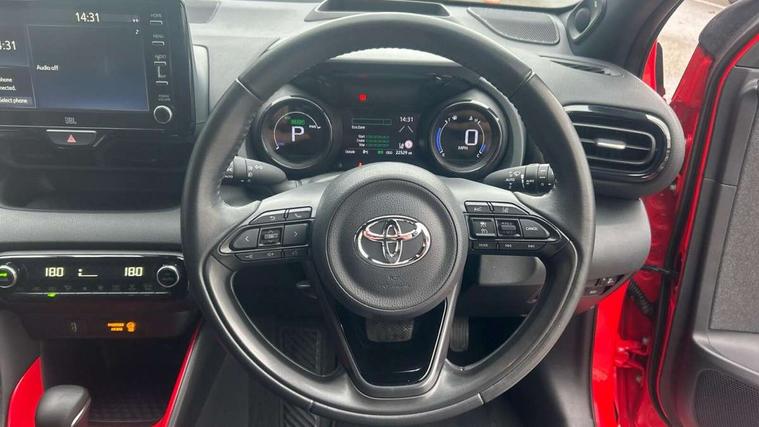 10" full colour head up display, Adaptive cruise control, Adjustable speed limit with speed warning, Blind spot monitoring, Bluetooth connectivity, Colour binocular inspired displays with digital speedometer, E-call, Electric power steering, Hybrid energy display, Multi information display switches on steering wheel, Reversing camera, Smartphone integration with Apple CarPlay and Android auto, Vehicle Stability Control (VSC), 8" Multimedia display touch screen, JBL Premium sound system with 8 speakers, Toyota Touch 2 with DAB, USB connection, Acoustic windscreen glass, Auto dimming rear view mirror, Auto windscreen wipers, Automatic headlights, Automatically retractable door mirrors, Black contrasting colour door mirrors, Electric adjustable heated door mirrors, Follow me home headlights, Front auto power windows with anti jam protection, Full LED rear lights, LED daytime running lights, LED front fog lights, LED Headlights, LED High mounted stop lamp, Painted front grille, Pearlescent bi-tone paint, Rear auto power windows with anti jam protection, Rear privacy glass, Rear spoiler, Shark fin antenna, Turning signal integrated indicators in door mirrors, 3 adjustable rear headrests, 3 spoke leather steering wheel, 60/40 split folding rear seat, Active headrests, Adjustable boot height, Ambient lighting, Coat hooks in rear grab handles, Cup holders (2 front & door), Data Communication Module (DCM) connected services, Dual zone automatic air conditioning, Fabric seat with partial synthetic leather upholstery, Front armrest, Front sport seats, Glovebox, Height adjustable driver's seat, Height adjustable passenger seat, Isofix seat fixing, Leather gearshift, Map pockets on the backs of the front seats, Pollen filter, Shopping bag hooks, Tilt/telescopic steering column, 3 point seatbelts on all rear seats, ABS+EBD+Brake assist, Electronic parking brake, Emergency brake light system (EBS), Front passenger airbag on/off switch, Front seatbelt reminder, Hill start assist control (HAC), Rear child proof door locks, Rear seat belt reminder, Supplemental Restraint System (SRS) 8 airbags: Driver & passenger's airbags, dual side curtain airbags, side impact airbags, front centre airbag, Toyota Safety Sense 2, Precollison + Night time Pedestrian & Cyclist Detection, Lane Trace Assist, Auto High Beam, Intelligent ACC & Road Sign Assist, Tyre pressure warning system, Alarm/immobiliser, Keyless smart entry with push button start, Remote powered central double locking doors, Piano black interior trim, Soft touch instrument panel, Space saver spare wheel,