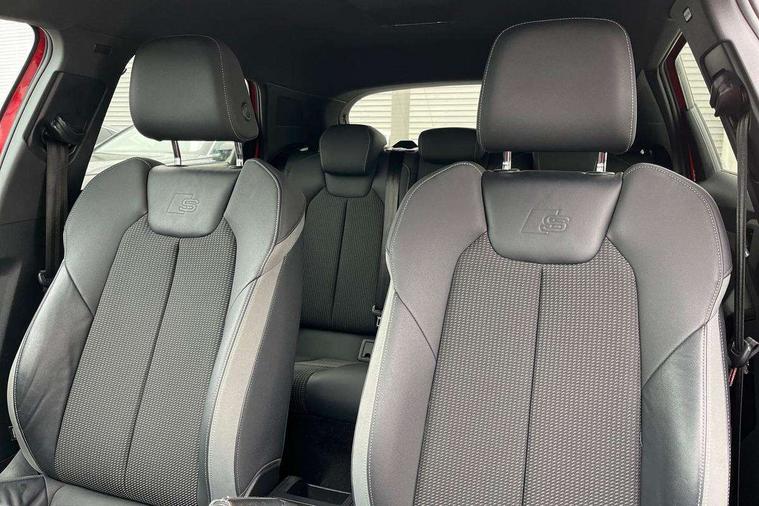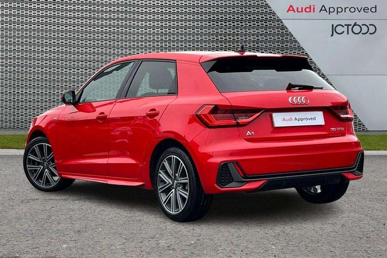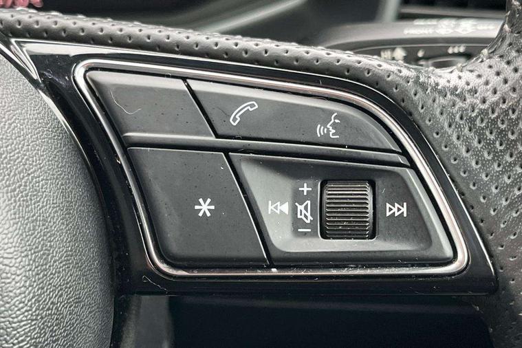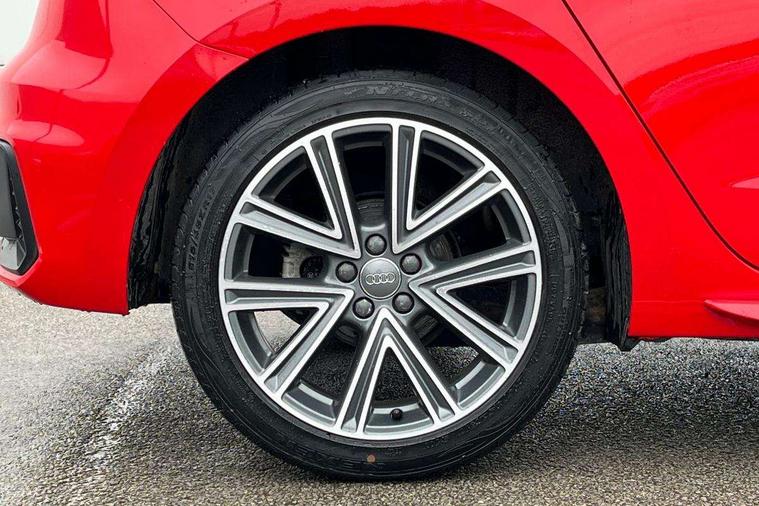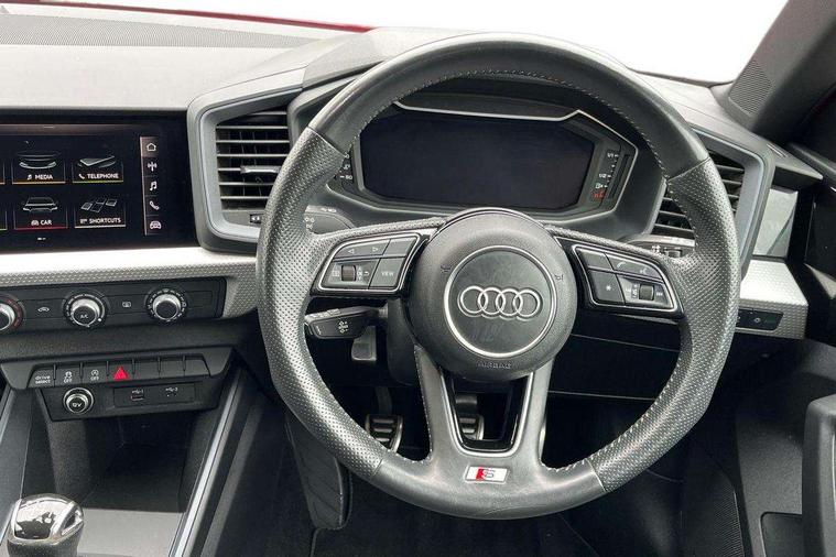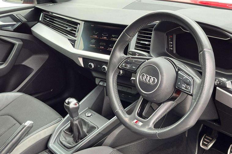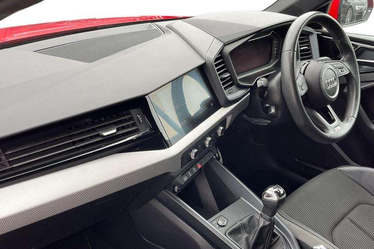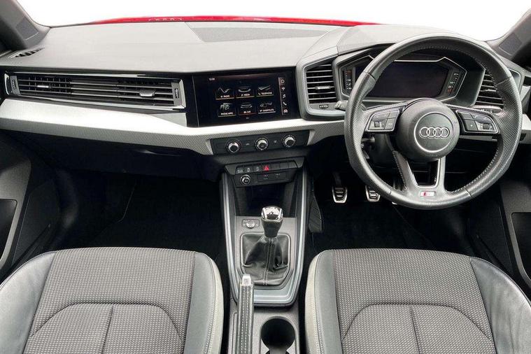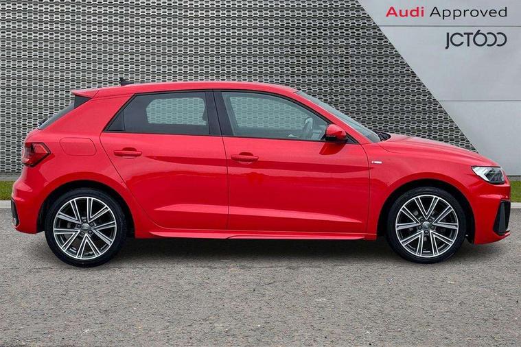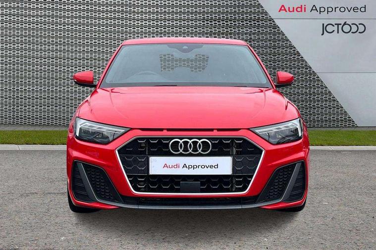 10.25" Digital instrument cluster display screen, Audi connect safety emergency and service including E-call, Audi drive select, Audi smartphone interface, Automatic start/stop system, Bluetooth interface, Driver's information system, Electromechanical power steering, Lane departure warning system, Service interval indicator, Speed limiter, Voice control system, Washer fluid level indicator, Sports suspension, 1 x SDXC card reader, 1 x USB type C and 1 USB type A charging points, Audi music interface, Bluetooth audio streaming, DAB Digital radio, MMI radio plus with 8.8" colour MMI display screen and MMI touch, Auto dimming rear view mirror, Body colour side sill mouldings, Body coloured bumpers, Body coloured door mirrors, Door sills with aluminium inlays and S Line logo, Electric front and rear windows, Front side air inlets in grained matt black and C frame in titanium black, Heat insulating glass windscreen and side windows, Heated rear windscreen, LED headlights with LED rear lights + dynamic rear indicators, Matt aluminium silver tailpipe trim, Matt black radiator grille frame, Matt platinum grey in front spoiler clip and rear diffuser clip, Rain and light sensors, Rear fog lights, Rear wiper, S line badges on front wings, S line exterior bumpers, S line roof spoiler, Side air inlet frames titanium black, Side front spoiler lips in grained matt black, 12V socket in centre console with two cup holders, 3 rear seats, Black cloth headlining, Driver and passenger seat with manual height adjust with forward and backwards adjustment, Front and rear black floor mats with contrast stitching in fine silver, Front head restraints, Height and reach adjustable steering wheel, ISOFIX child seat mounting in front passenger and rear outer seats, Leather gear knob with aluminium trim, Leatherette handbrake grip, Luggage compartment light with front and rear reading lights, Lumbar adjustment for front seats, Rear head restraints, Split folding rear seats, Stainless steel pedals, 3x3 point rear seatbelts, Audi pre-sense front with pedestrain and cyclist recognition, Brake assist function, Driver and front passenger airbag with front side and head airbags, Electronic Stability Control including ABS, EBD, ASR and EDL, Front and rear seatbelt reminder, Front passenger airbag deactivation switch, Hill hold assist, Seatbelt height adjustment for front seats, Seatbelt monitoring, Tyre pressure warning light, Warning triangle and first aid kit, Anti theft alarm, Anti theft wheel bolts and loose wheel warning, Immobiliser, Remote central locking with 2 remote folding keys, Aluminium trim for control switches, air vents and digital instrument cluster, Silver grey inlays polygon structure in diamond paint finish, Structured grey accent areas including air vents, door handle recesses and centre console in quartz paint finish,