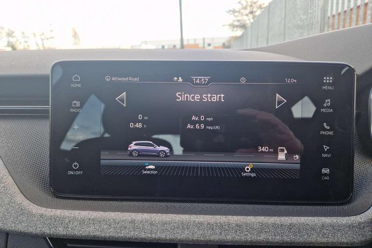 Advanced driver attention and drowsiness monitor, Bluetooth, e-Call (emergency call), Front assist system, PAS, Rear parking sensors, Rear view camera, Speed limiter, Tailgate, Traffic sign recognition, Virtual Cockpit - 10.25" digital display, Voice control system, Wireless smartlink, 4 USB C ports, 8 Speakers, 9.2" Skoda navigation display, DAB radio, Auto dimming rear view mirror, Automatic headlamp activation with Coming home and Leaving home feature, Automatic high/low beam, Body colour bumpers, Body colour door mirrors and handles, Chrome moulding around grille, Front and rear electric windows, Full LED headlights, Heated rear window, LED 3rd brake light, LED brake lights, LED daytime running lights, LED front turning lights, LED high beam, LED low beam, LED taillights, Rear LED fog light, Rear side wing doors, Rear wiper, Tinted windows, Unique dark chrome design logo on alloy wheels, 12V socket in luggage compartment, 3 seat bench in 2nd row, Black / Grey armrest stitching, Black hotstamping, Cargo elements, Chrome inner door handles, Door inserts in satin black, Driver and passenger sun visors with vanity mirror, Dual zone climate control, Front and rear roof lights, Front centre armrest, Front head restraints, Glasses storage in roof liner, Height adjustable driver seat, Height adjustable passenger seat, Ice scraper, Illuminated glove compartment, Inner circulation control with pollen filter, ISOFIX for front passenger seat, Isofix preparation for back seats, Leather gearknob and handbrake lever, Loft cloth upholstery, Luggage net under rear parcel shelf, Manual lumbar support for front seats, Net package and top tether hooks in boot space, Pearl grey ceiling, Pocket on the back of both front seats, incl. mobile phone pockets, Single front passenger seat, Skoda lettering on steering wheel, Textile floor mats, Third rear headrest, Ticket holder, Top tether for front passenger seat, Umbrella in driver's door, 3x3 point rear seatbelts, ABS, Child locks, Curtain airbags and front side airbags, Disc brakes, Driver and front passenger airbags, ESP, Hill hold control, Manual leather parking brake, One tone horn, Passenger airbag switch off function, Seatbelt reminder for driver and front passenger, Tyre pressure monitoring system, Anti theft alarm system with interior monitoring, backup horn and towing protection, Anti-theft wheel bolts, Remote central locking with 2 remote folding keys, SAFE function for remote central locking, Decord pad, door inserts Kota uni,