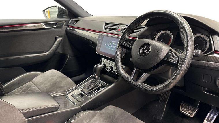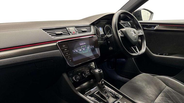 3D map navigation, Adaptive cruise control, Bluetooth system, CareConnect and Emergency Call, Columbus satellite navigation with 9.2" touch screen and integrated Wi-Fi, Driver fatigue sensor, Electromechanical power steering, Front assist with pedestrian protection, Multifunction colour trip computer, Progressive dynamic steering, Smartlink+ including apple carplay, android auto and mirror link connectivity, Voice control system, XDS+, 2 USB ports, Bolero radio with 8" touchscreen display, DAB Digital radio, DVD Drive, In-car voice enhancement, SD card slot, Aero front windscreen wipers with intermittent function, Auto dimming rear view mirror, Black rear badge, Body colour door mirrors and handles, Cornering front fog lights, Electrically adjustable heated and folding door mirrors with memory function, Front and rear electric windows, Full matrix LED headlights with AFS LED DRL integrated with headlight washer LED rear lights(High function), dynamic indicators and lighting animation, Gloss black exterior door mirrors with sports styling including front grill, side strip and window surrounds, Gloss black grille surround with gloss black rib elements, Gloss black roof rails, Gloss black strip between rear lights, Privacy glass, Rain sensor, Rear exhaust diffuser styling elements, Sport Line badging, 12v power point in centre console, Alcantara/leather upholstery, Black roof headlining, Carbon optic interior elements, Electric auxiliary air heater, Front armrest with storage box, Height adjustable front and rear head restraints, Ice scraper, Illuminated and cooled glovebox, Illuminated luggage compartment, Interior lights with control switches, Isofix child seat fittings on outer rear seats, One umbrella compartments in driver door with one umbrella in drivers door, Overhead glasses storage compartment, Rear centre armrest with cupholders, Split folding rear seats, Textile floor mat set, Ticket holder on A Pillar, LED interior light pack - Superb, LED package plus - Superb, 3 rear seatbelts, 7 airbags - Front, front side, curtain, driver's knee airbag with front passenger deactivation switch, Driver and passenger seatbelts with warning light, Electronic parking brake, ESC including ABS, EBV, MSR, ASR, EDS, HBA, DSR, RBS, CBC, multi-collision brake (MKB) and Auto hold, Hill start assist, Tyre pressure monitor, Alarm with interior monitoring tilt sensor and back up horn, Electronic engine immobiliser, Keyless entry and start/stop including rear doors, Remote central locking with SAFE system, Carbon interior trim,