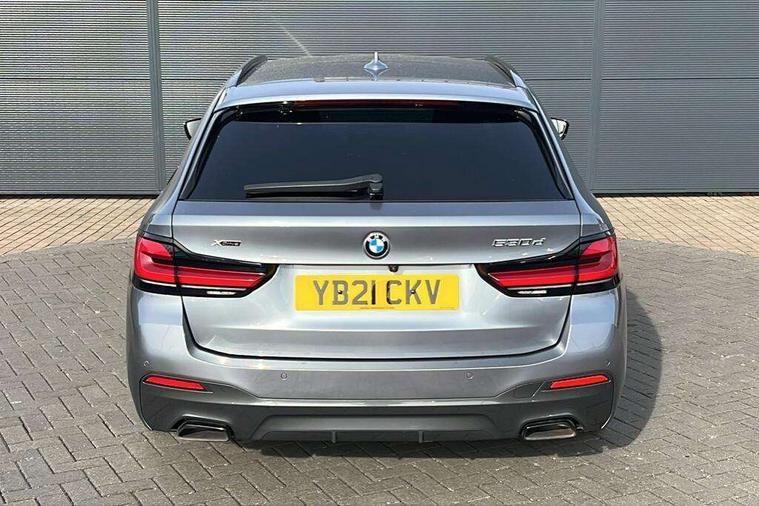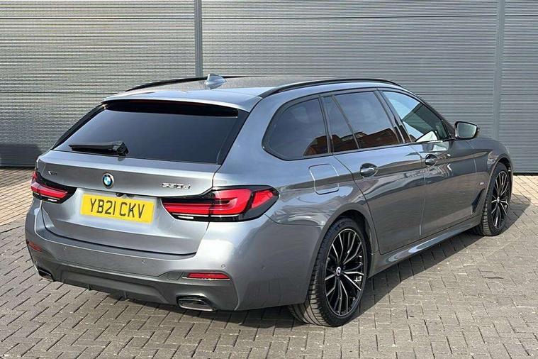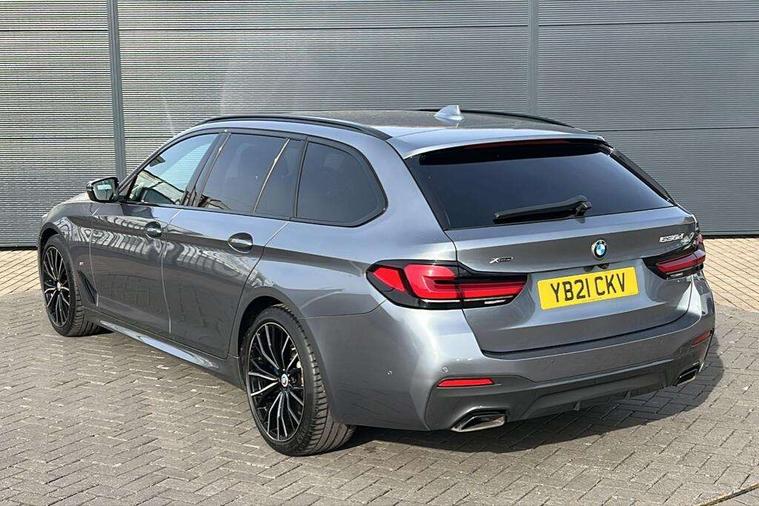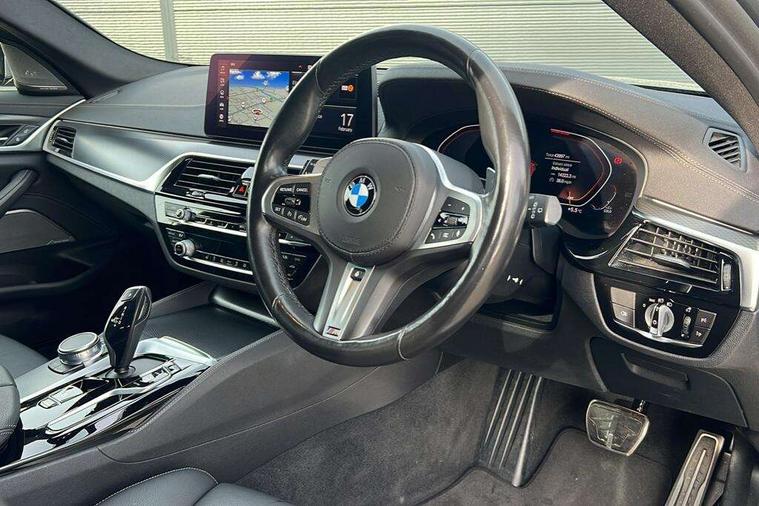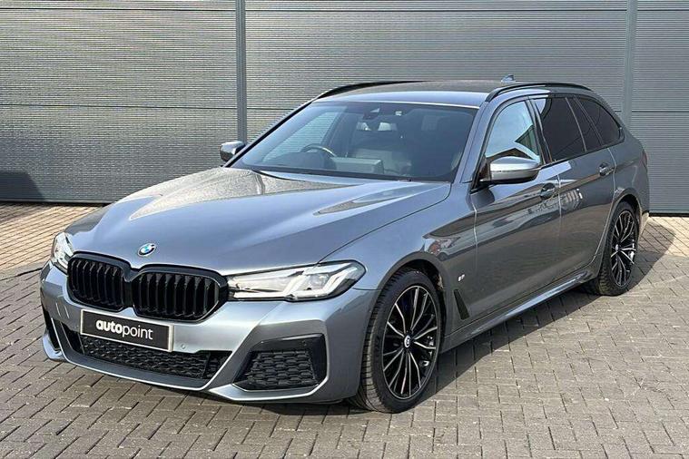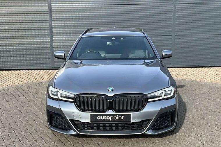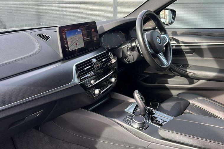32GB hard disc drive (HDD) memory, Active Guard, BMW ConnectedDrive online services, BMW Live Cockpit Professional sat nav system with 12.3" instrument display and high resolution control display, BMW Teleservices, Brake pad wear indicator, Cruise control with brake assist, Driving experience switch, Electric boot lid - electrically opening/closing rear tailgate, Electric Power Steering (EPS) with Servotronic, iDrive touch controller with shortcut buttons, Intelligent emergency call, Multifunctional instrument panel, Oil sensor for level and grade, On board computer inc. average speed, fuel consumption, liquid crystal Info display, journey computer, outside temperature display, personal profile, On-board diagnosis - OBD, Powered by Operating System 7.0, Service interval indicator, Speed limiting function, Stop/start button, 48V Mild hybrid technology, Diesel particulate filter, Drive performance control with ECO PRO comfort + sport mode, Engine cover with twin turbo designation, M sport suspension, Steptronic sport transmission with gearshift paddle switches on steering wheel, DAB Digital radio, Favourite buttons, Acoustic glazing, All round anti-corrosion system, Automatic windscreen wipers and automatic headlight, Automatically dimming rear view mirror, BMW Individual high gloss shadow line includes exterior mirror frame, window frame surround, B pillar finish, air breather in high gloss black, BMW Individual high gloss shadow line roof rails, Body colour door handles, Body coloured bumpers, Door handle illumination, Dynamic brake lights with LED technology, Electric front and rear windows with fingertip open/close + anti-trap facility and comfort closing function, Electrically adjustable and heated exterior mirrors includes integrated direction indicators and automatic parking function, Folding exterior side mirror with auto- dimming, Follow me home headlight function, Heated windscreen washer jets, High gloss black active air stream kidney grille, Independent opening for tailgate window, LED daytime running lights, LED third brake light, M designation on front side panels, left and right in chrome, Trapezoidal visible exhaust tailpipes, xDrive designation on tailgate, 12V power socket in front and rear, 40/20/40 split folding rear seats with additional mechanism in luggage compartment, Armrest - front and rear integrated door trim, centre console includes storage compartment, rear centre includes 2 cupholders, Child seat ISOFIX attachment with rear outer seats includes top tether, Cup holders (2 front and 2 rear), Front and rear footwell lights, Front reading lights, Height and length adjustable steering column and activation via lateral lever on the steering column, Lockable glove compartment with light, M door sill finishers, M specific pedals, M specific velour floor mats, Multifunction controls for leather steering wheel, Rear headrests, Retractable luggage compartment dividing net, Three spoke sport M leather steering wheel, Ambient lighting pack - 5 Series, Connected package professional - 5 Series, M Aerodynamic pack - 5 Series, Airbags - driver/front passenger, rear and side, first and second row seats head airbags, front passenger seat airbag deactivation + knee airbag, Anti-lock braking system (ABS), Automatic Stability Control (ASC), Brake assist function, Brake energy regeneration, Cornering brake control (CBC), Crash sensor activating central locking release, hazard warning lights, fuel cut off and interior lighting, Deformation zones - front and rear with door reinforcements and bumpers up to 2.5 mph, DSC - Dynamic Stability Control, Dynamic brake control, Dynamic Traction Control - DTC, Electromechanical parking brake with automatic drive away release and auto hold function, Electronic brake force distribution, Engine drag torque control, Front and rear brake discs with interior ventilation, Front head restraints with anti-whiplash, Hill start assist, M Sport brake in high gloss blue painted brake callipers with M designation, Mechanical child proof lock on rear doors, Passive protection for pedestrians, Side impact protection, Three point seat belts for all four seats, Two tone horn, Tyre pressure indicator, Warning triangle and first aid kit, Alarm system (Thatcham 1) with remote control and electronic engine immobiliser, Locking wheel bolts,