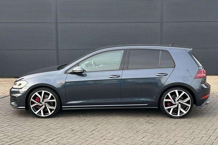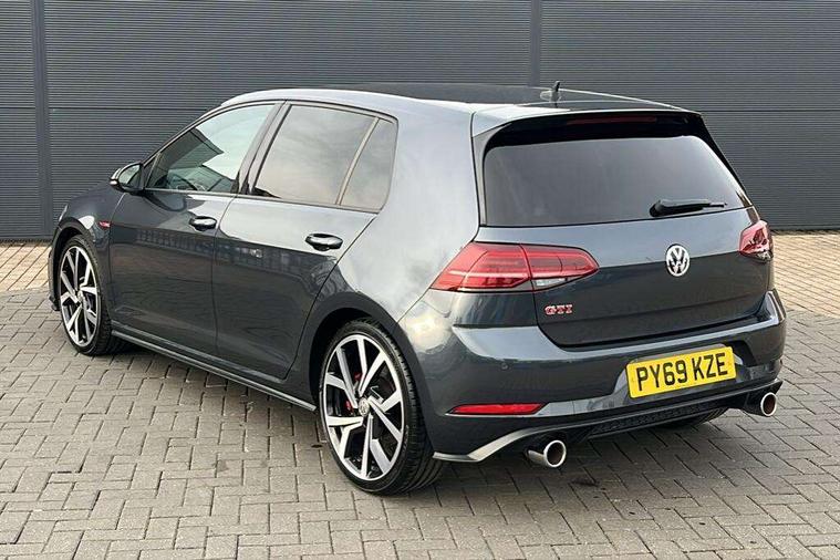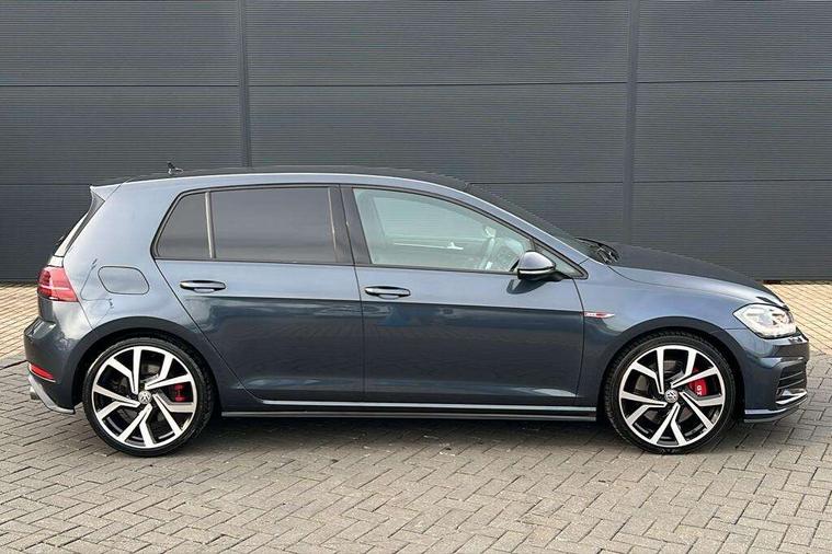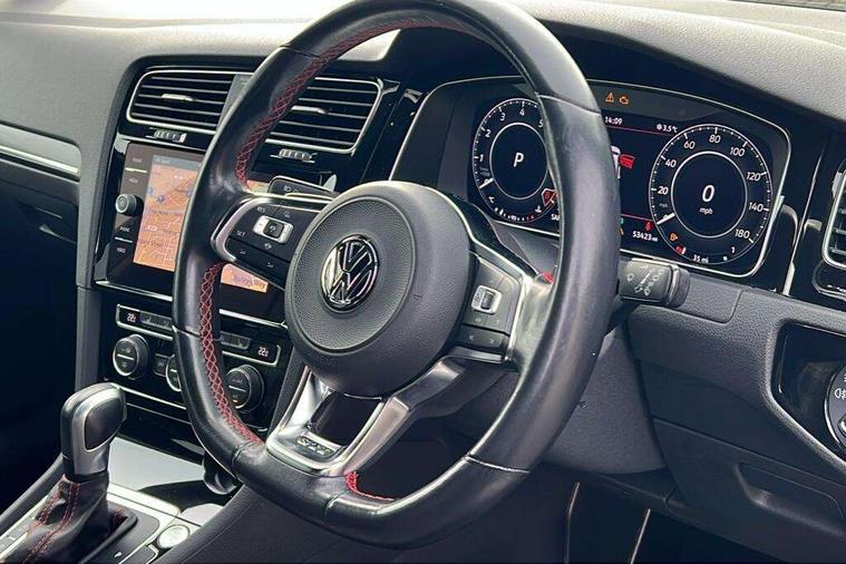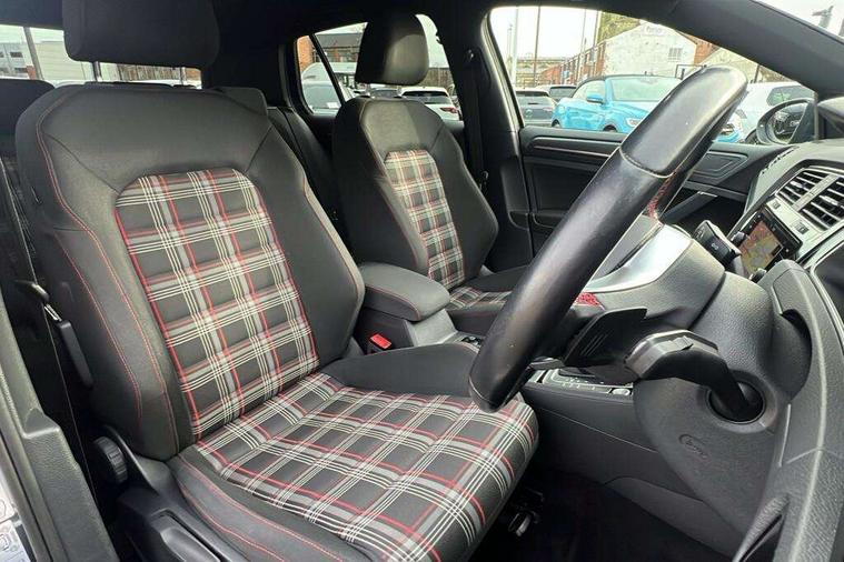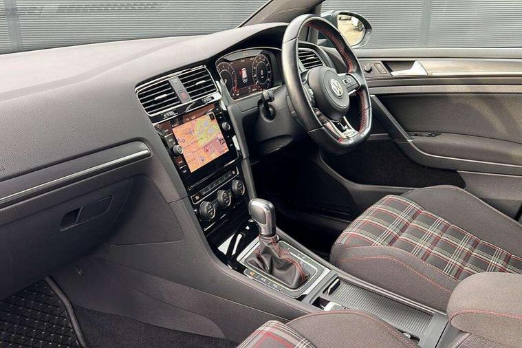 'Lights On' Reminder warning buzzer, ACC - Adaptive cruise control with front assist, forward collision warning, distance monitoring, city emergency brake and speed limiter, Active information display - 12.3" high resolution TFT display, Bluetooth telephone and audio connection for compatible devices, Brake pad wear indicator warning light, Driver alert system, Driving Mode Selection with four preset modes - Eco, normal, sport or individual modes, Multifunction computer with visual gear change recommendation for fuel consumption, Progressive steering, Push tank flap, Rear view camera, Speed limit display, Speedo, rev counter, electronic odometer, trip, service interval display, exterior temperature and fuel gauge, Stop/start system, Think blue trainer driver tips and journey analysis, Unique GTI instrument cluster, Warning buzzer and light for front seatbelts unfastened, Anti-tramp function, Battery regeneration during braking, Mechanical limited slip differential, Composition media system, DAB Digital radio receiver, Driver Personalisation profile selection, MP3/WMA compatability, Multi device interface (MDI) via USB connection, Premium USB cable in choice of either Apple or Android smartphone compatibility, SMS Functionality, Title and cover art display, USB and SD card connectivity, Volkswagen media control, 3D-LED tinted rear light clusters with indicator sweep function, Black front air intake and radiator grille with chrome insert, Body colour door handles, Body colour door mirrors with integrated indicators, Body colour rear roof spoiler, Dusk sensor + automatic driving lights, Electric front windows, Electric rear windows, Electrically adjustable and heated door mirrors, Extended sill strips flared, Front and rear unique GTI badging in red, Fully galvanised body, GTI logo in red on front and back, GTI logo lettering on front wings on right and left, Heated rear windscreen, High level 3rd brake light incorporating LED Technology, Honeycomb front air intake - Black, Honeycomb radiator grille with red stripe, LED daytime running lights incorporating red stripe, LED front fog lights, LED headlights with dynamic light assist, Rear fog lamp, Rear number plate lights incorporating LED technology, Rear window aerial, Rear window wash/wipe with intermittent wipe, Reflectors in all doors, Uniquely shaped front/rear bumpers, Windscreen wipers/ intermittent wipe + 4 position delay, 12V socket in luggage compartment, 3 rear headrests, 4 load lashing points in luggage compartment, 60/40 split folding rear seat backrest, Bag hook in luggage compartment x 2, Black rear diffuser with chrome exhaust tailpipes in left and right, Black roof lining, Climate control - 2 zone electronic air conditioning with automatic air recirculation and allergy filter, Cooled glovebox, Cover for storage compartment in centre, Dust/pollen filter, Front + rear carpet mats, Front centre armrest with storage compartment and two rear air vents, Front seat back storage pockets, Grab handles front x 2, rear x 2 with integrated coat hooks, Height and reach adjustable steering wheel, Illuminated vanity mirrors, Interior light delay, Isofix preparation for 2 rear child seats, Leather gear knob and handbrake grip, Load through provision with rear centre armrest and cupholders x2, Luggage compartment lighting, Overhead storage box, Stainless steel pedals, Storage box in luggage compartment, Storage compartment in roof console with cover, Storage compartments in centre console, Storage compartments in front doors, Storage compartments in rear doors, Stowable luggage compartment cover, Sun visors, Three spoke multifunction leather steering wheel with GTI logo and red stitching including gearknob gaiter, Variable boot floor, height adjustable and removable, Ambient lighting pack - Golf, Convenience Pack - Golf, Mirror pack - Golf, Winter pack - Golf, 3 rear three point seatbelts, Airbags - Driver's and front passenger's, curtain airbag, Driver's knee, front side impact and passenger's airbag deactivation switch, Anti-lock Braking System (ABS) with Hydraulic Brake Assist (HBA), Automatic post collision braking system, Child locks on rear doors, Driver/Passenger optimised head restraints, Electronic parking brake with auto hold, Electronic stability control (ESC) including Electronic differential lock (EDL) and ASR (Traction control) with deactivation via infotainment system, Front ventilated disc brakes and rear disc brakes, Larger diameter brake discs and GTI logo on red brake calipers, Pre crash preventive occupant protection, Three point height adjustable front seatbelts with tensioners, Tyre pressure loss indicator, Alarm with interior protection and deactivation via infotainment system, Electronic engine immobiliser, Keyless entry with start/stop button on centre console, Chrome plated air vent surround, Chrome plated electric mirror adjustment switch surround, Chrome-plated light switch surround, Honeycomb black decorative inserts, Piano black decorative inserts in centre console, Steel space saver spare wheel,
