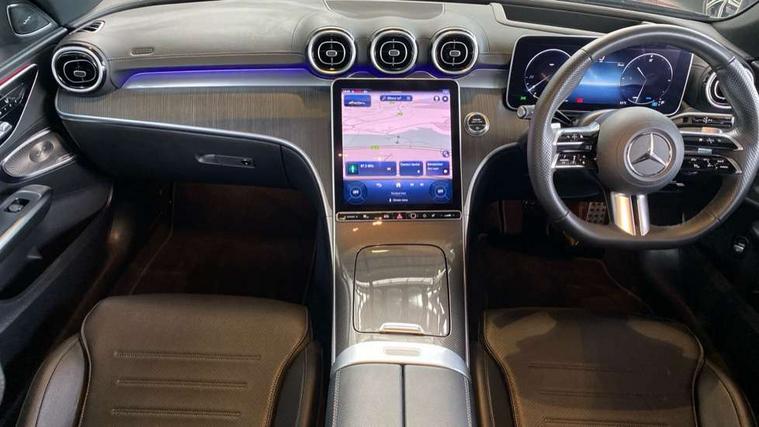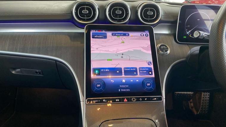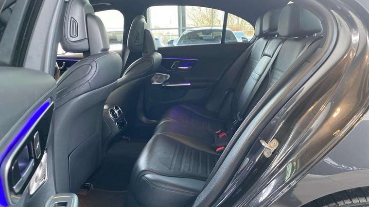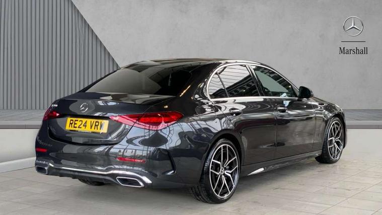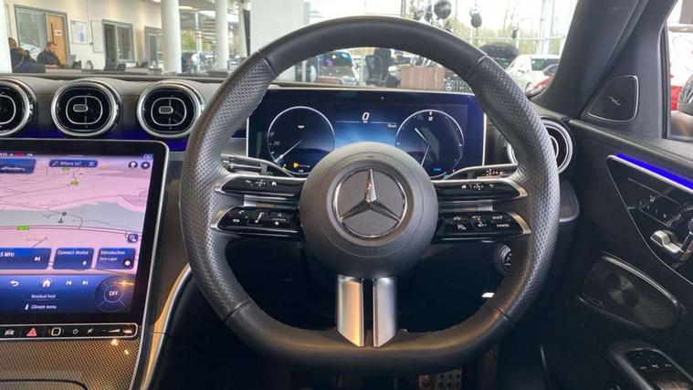 11.9" high resolution multimedia colour display, 12.3" digital instrument cluster display, Active parking assist with PARKTRONIC, Attention assist, DYNAMIC SELECT with a choice of driving modes (Comfort, ECO, Sport, Sport+, Individual), E-call, Extended MBUX functions, Finger print sensor, Fluorescent jacket for driver, Hard disc navigation, Head up Display, MBUX navigation premium, Mercedes me remote services, Outside temperature gauge, Service indicator (ASSYST), Smartphone integration, Sports direct steer speed sensitive steering, Status display for rear seat belts in instrument cluster, Traffic sign assist, Wireless charging system for mobile devices, 9G TRONIC 9 speed automatic transmission, Petrol Particulate Filter, Sport suspension, Burmester 3D surround sound system, DAB Digital radio, MBUX multimedia system, Adaptive brake lights, Adaptive high beam assist plus, AMG body styling front apron, rear apron and side skirts, AMG Line exterior, Body coloured bumpers, Body coloured door mirrors, Digital light LED headlamps, Electric panoramic glass sunroof, Electric windows with one touch opening/closing and obstruction sensors, Electrically adjustable and heated door mirrors, Heat insulating dark tinted glass, LED daytime running lights, LED Indicators, LED tail lights, LED third brake light, Noise acoustic glass, Radiator diamond grille with integrated Mercedes Benz star and louvre silver with chrome pins, Rain sensor with automatic windscreen wiper activation, Rear boot, Rear side wing doors, Two visible exhaust pipes integrated into rear bumper, 3 seat bench in 2nd row, 40:20:40 split folding rear bench seat, Ambient lighting premium, Ambient lighting with projection of brand logo, AMG floor mats, AMG line interior, Artico man-made leather upholstery, Auto Mercedes-Benz child seat recognition sensor, Black roof liner, Boot lid convenience closing feature, Comfort seats, Double cupholder in centre console, Electrically height/reach adjustable steering column, Folding rear seat backrest, Front and rear head restraints, Gearshift paddles on steering wheel, Illuminated door sills with Mercedes Benz lettering, Illuminated glove compartment stowage, Multifunction sports steering wheel in nappa leather, Rear top tether child seat ISOFIX attachment, Single front passenger seat, Sunvisors with illuminated vanity mirrors, THERMATIC 2 zone automatic climate control, AIR BALANCE Package - C Class, Energizing package plus - C Class, Interior light package - C Class, Keyless go comfort package - C Class, Memory package - C Class, Mirror package - C Class, Parking package with 360 degree camera - C Class, Stowage space pack - C Class, USB package plus - C Class, 3 rear 3 point seatbelts, Active bonnet pedestrian safety measure which detects an impact and raises bonnet, Adaptive brake system with HOLD function and brake drying in the wet, Anti-lock braking system (ABS), Black seat belts, Brake calipers with Mercedes-Benz lettering + perforated front brake discs, Child proof door locks, Drivers knee airbag, Drivers pelvis airbag, Dual stage driver/passenger airbags, Electric parking brake, Electronic Stability Programme (ESP), Front centre airbag between driver and front passenger seats, Front side airbags, Tyre pressure monitoring system, Warning triangle and first aid kit, Window airbags for driver, front passenger and rear passenger, Antitheft alarm system, Interior monitoring system and Increased antitheft protection, Central locking with interior switch, automatic locking and crash sensor with emergency opening function, Chrome surround in electric key, Urban guard vehicle protection plus, Black open pore aluminium lines wood trim with centre console in metal structure finish, Dashboard, instrument panel and beltlines in ARTICO man made leather in nappa look, 19" AMG multi spoke light alloy wheels painted black with high sheen finish, TIREFIT with tyre inflation compressor,
