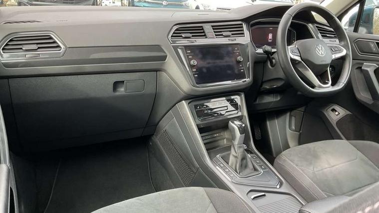 Adaptive cruise control ACC stop and go including speed limiter, App-Connect incl. App-Connect Wireless for Apple CarPlay and Android Auto, Bluetooth phone integration system, Digital Cockpit Pro - Active info display, Distance control assist, Driver alert system, Driver profile selection, Dynamic road sign display, eCall emergency call system, Electromechanical speed sensitive power steering, Engine start/stop button, Lane keeping system Lane Assist, Lights on warning, Motorised electric tailgate operated via key fob, drivers door and foot movement under tailgate, Multifunction front facing camera, Outside temperature display, Premium multifunction display with multi colour display, Remote control boot opening, Rev counter, Revision / skills operating concept travel assistant, Service interval indicator, Speed limit display, Start/stop system with regenerative braking, Tailgate/trunk lid unlocking from outside, Trip computer, Warning sound and light for doors and tailgate open, Battery regeneration during braking, XDS electronic differential lock for improved traction and handling, 2 USB-C ports in the front, 1 USB-C charging socket on the center console in the rear, Diversity antenna for FM reception, Radio, SD card slot, Simultaneous pairing of 2 compatible mobile devices, SMS functionality - read, compose and send SMS messages using touch-screen display, Title and cover art display, Aluminium door sill protectors, Auto dimming interior rear view mirror, Automatic headlight control system, Body colour door handles, Body coloured bumpers, Body coloured door mirrors with integrated indicators, Coming/leaving home lighting function, Dynamic headlight range control, Front and rear electric windows, Heated rear window, High level 3rd brake light, IQ light-Adv high beam, Dynamic light assist for LED matrix headlamp+LED separate DRL+DCL, dark red rear LED tech, Poor weather light+ cornering light, Laminated safety glass windshield, heat and sound insulating, LED rear number plate lights, Poor weather light and cornering light, Privacy glass for rear side windows and rear window, Rain sensor windscreen wipers, Rear exhaust tailpipe, Rear fog lamp, Rear side wing doors, Rear windscreen washer and wiper with interval delay, Side and rear windows in heat insulating glass, Tilting and sliding panoramic sunroof with rear panoramic sunroof, Trailer Stability Programme, Windscreen wipers/ intermittent wipe + 4 position delay, 12V outlet in center console rear and in luggage compartment, 12V outlet in front and tray, 2 cup holders in front, 2 LED front reading lights, 2 LED rear reading lights, 3 bench rear seats in 2nd row, 3 rear headrests, 4 load lashing points, 40:20:40 split folding rear seats, Air Care Climatronic 3 zone automatic climate control with enhanced air filter and controls in the rear, Backrest release for left front seat, Climate control unit rear with touch function, Door and side trim panel in foam film and woven fabric, Front + rear carpet mats, Front centre armrest, Front footwell illumination, Front seats head restraints (x-adjustment), Height adjustable front seats, Height/reach adjust steering wheel, Instrument lighting white adjustable panel illumination, Interior light with delay, Isofix Preparation 2 Rear child seats, Leather gear knob, Lockable cooled glovebox, Luggage compartment lighting, Luggage net, Rear bench seat asymetrically split folding, longitudinally movable and folding with load-through hatch and center armrest, Remote unlocking for rear seat backrest, Removable luggage cover, Removable rear headrests, Safety optimised front head restraints, Single front passenger seat, Sliding/reclining rear seats, Standard rear seat release, Storage compartment in driver's door, Storage compartment in passenger's door, Storage compartment in rear doors, Storage compartments in luggage area left and right, Storage tray on dashboard, Sun visors with illuminated vanity mirrors, Top front comfort seats, Variable boot floor, height adjustable and removable, Ambience pack - Tiguan, Chrome pack - Tiguan, Easy open and close pack with safelock - Tiguan, 3 point seat belt for centre rear seats, 3 point seat belts with seat belt pretensioners for the outer rear seats, Active bonnet, Curtain airbags for front and rear passengers, Driver/Front Passenger airbags, Drivers knee airbag, Electronic parking brake with auto hold, Electronic Stability Control with driver steering recommendation, ABS, ASR, EDL, EDTC and trailer stabilization, Front assist with autonomous emergency braking (for Adaptive Cruise Control ACC up to 130 mph), Front disc brakes, Front passenger airbag deactivation, Front side airbags, Height adjustable front 3 point seatbelts + pretensioners, Hill hold control, Manual child proof rear door locks, Pedestrian monitoring system, Power assisted brakes, Proactive passenger protection system in combination with front assist, Rear disc brakes, Rigid safety cell with front and rear crumple zones, Two tone horn, Warning sound and light for front seat belts if unfastened, Anti theft alarm system with interior monitoring, backup horn and towing protection, Anti theft wheel bolts, Central locking system with safelock radio remote control and 2 remote control folding keys, Electronic engine immobiliser, Tool kit,