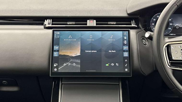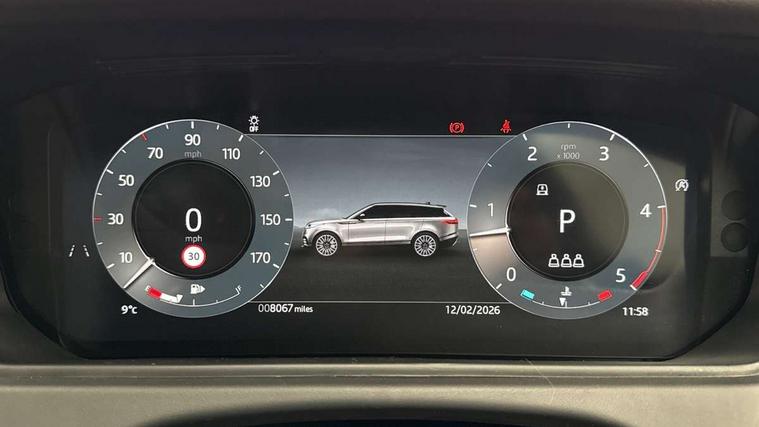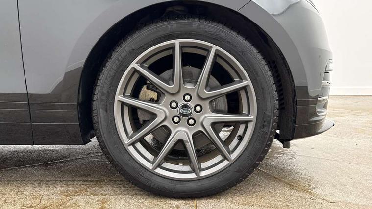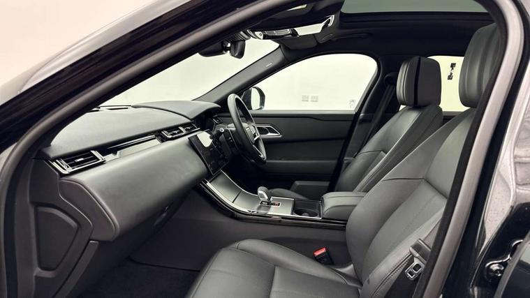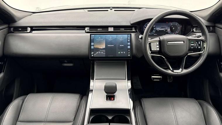 Adaptive cruise control with steering assist, Android Auto, Apple CarPlay, Blind spot assist, Bluetooth connectivity, Brake pad wear indicator warning light, Driver condition monitor, eCall emergency call system, Front and rear parking aid, InControl remote, Land Rover InControl apps, Lane keep assist, Pivi pro with connected navigation, Rear collision monitor, Rear traffic monitor, Service indicator, Speed proportional electronic power assisted steering (EPAS), Traffic sign recognition with adaptive speed limiter, Trip computer, Voice control system, Wireless device charging, 8 speed automatic transmission, Adaptive dynamics, All terrain progress control, Electronic air suspension, Open differential with torque vectoring by braking, Single speed transfer box, DAB radio, Steering wheel mounted controls, 3rd brake light, Acoustic laminated windscreen, Auto dimming interior rear view mirror, Automatic headlamp levelling, Automatic headlights, Body coloured bumpers, Boot protection plate, Electric windows with one touch open/close and anti trap, Flush deployable exterior door handles, Follow me home headlights, Heated rear window with timer, Heated washer jets, Heated windscreen, Metal front tread plates, Metal load space scuff plates, Pixel LED headlights with signature DRL, Power fold, auto-dimming, heated door mirrors with memory and approach lights, Rain sensor windscreen wipers, Rear animated directional indicators, Rear fog lights, Rear side wing doors, Rear wash/wipe, Tailgate/boot lid spoiler, Trailer stability assist, Velar badge, 3 seat bench in 2nd row, Ambient lighting, Bright metal pedals, Carpet mats, Driver/passenger sunvisors with illuminated vanity mirrors, Ebony morzine headlining, Electrically adjustable steering column, Extended leather upgrade, Heated steering wheel, Isofix system on outer rear seats, Loadspace cover, Overhead lighting console, Overhead stowage for sunglasses, Passive front headrests, Rear air vents, Rear centre headrest, Single front passenger seat, Twin front cupholders, Twin sliding front centre armrest, Online pack with data plan - Velar, Power socket pack 2 - Velar, 380mm front brakes and 325mm rear brakes, 3x3 point rear seatbelts, Anti-lock braking system (ABS), Cornering brake control, Curtain airbags, Customer configurable autolock, Door side intrusion beams, Driver airbag, DSC - Dynamic Stability Control, Electronic brake force distribution, Electronic parking brake, Electronic traction control, Emergency braking, Front and rear seatbelt reminder, Hill descent control, Hill launch assist, Low traction launch, Passenger airbag, Power operated child locks, Rear airbags, Roll stability control, Side airbags, Tyre pressure monitoring system (TPMS), Global lock and unlock switch on driver door, Immobiliser, Intrusion sensor, Keyless entry, Lock only switch on front passenger door, Locking wheel nuts, Perimetric alarm, Remote central locking, All season tyres,