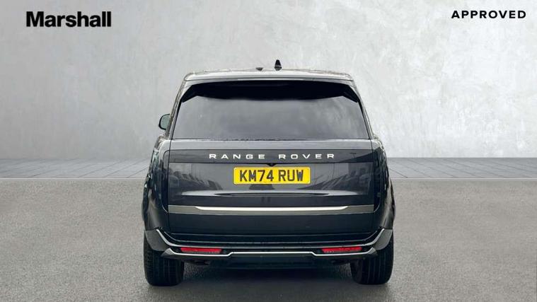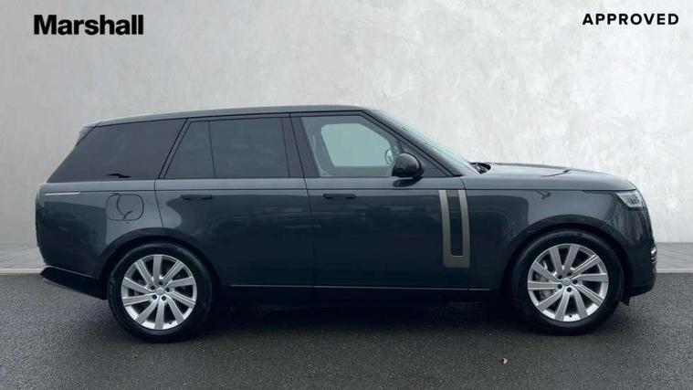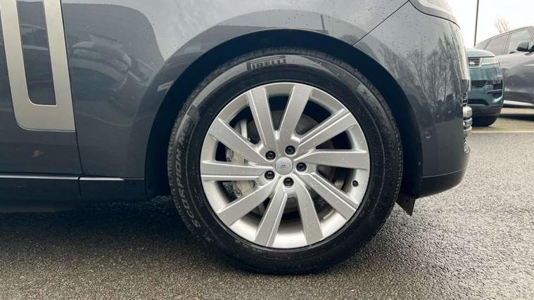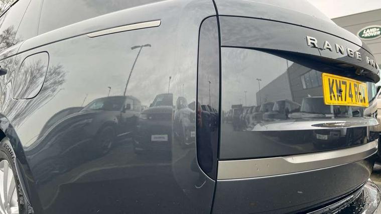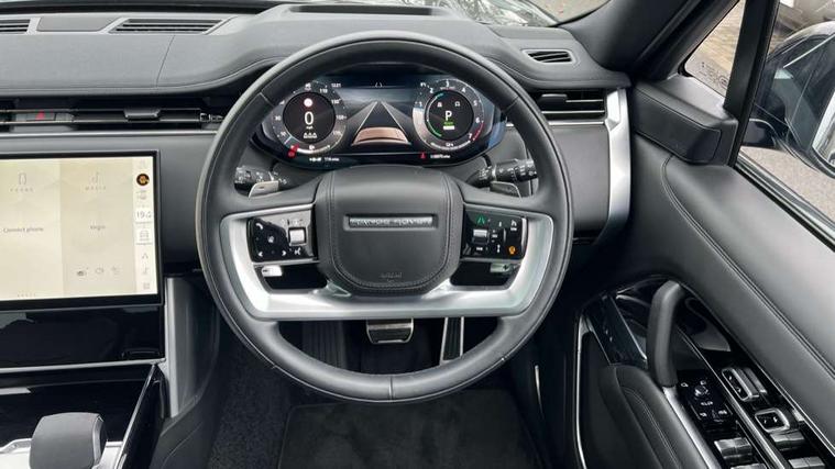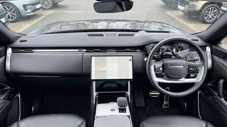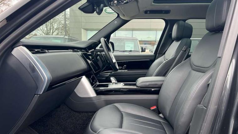 13.1" Touchscreen, 3D surround camera inc frwd traffic detection, vehicle clearance guidance, 3D view, clearsight ground view, manoevure light, 360 parking aid, wade sensing, All Terrain Info Centre, All wheel steering, Android Auto, Apple car play, Blind spot assist, Bluetooth connectivity streaming, Driver condition response, Eco mode, Electric power assisted steering (EPAS), Emergency call service, Front and rear parking aid, Head up Display, Interactive driver display, Lane keep assist, Park assist, Powered gesture tailgate/boot lid, Rear collision monitor, Rear traffic monitor, Remote, Traffic sign recognition with adaptive speed limiter, Wi-Fi Enabled with data plan, Wireless device charging with phone signal booster, 7 kW onboard charger, 8 speed automatic transmission, Active damper technology system, Adaptive dynamics, All terrain progress control, All Wheel Drive (AWD), Automatic access height, Home charging cable 5m Mode 2 including plugs, Public charging cable 5m Mode 2 including plugs, Terrain Response 2 Auto, Twin speed transfer box, Digital Audio Broadcast radio-DAB, Pivi pro including smart settings, Connected navigation pro, nuance speech, USB socket, Acoustic laminated windscreen, Animated directional indicators, Automatic headlights, Automatic levelling headlights, Centre high mounted stop light, Electric windows with one touch open/close and anti trap, Engine cover, Flush deployable exterior door handles, Front and rear recovery eyes, Front fog lights, Headlamp power wash, Heated rear window, Heated washer jets, Illuminated aluminum treadplates with Range Rover script, LED tail lights, No badges, Power fold, auto-dimming, heated door mirrors with approach lights, Rain sensing windscreen wipers, Rear boot, Rear fog lights, Rear side wing doors, Side repeater indicators in mirror, Trailer stability assist, Winter wiper park position, 12V power sockets, 3 seat bench in 2nd row, Air quality sensor, Auto folding loadspace cover, Bright metal pedals, Cabin air purification pro, Cabin lighting, Customer configurable single point entry, Driver and passenger front seat armrests, Easy boot loading, Ebony Carpet, Front and rear cupholders, Front and rear grab handles, Front head restraints, Gearshift paddles, Heated steering wheel, Hook in load space, Loadspace light, Luggage tie down in loadspace, Multifunction steering wheel, Rear centre armrest, Rear head restraints, Rear ISOFIX, Single front passenger seat, Soft close doors, Upper and lower glovebox, Online pack with data plan - Range Rover, 3x3 point rear seat belts, Anti-lock braking system (ABS), Brake hold function, Cornering brake control (CBC), Customer configurable autolock, DSC - Dynamic Stability Control, Electronic brake force distribution, Electronic parking brake, Electronic traction control, Emergency braking, Front airbags with passenger seat occupant detector, Front side airbags, Hill descent control, Hill launch assist, Low traction launch, Occupant protection assist, Power operated child locks, Roll stability control, Tyre pressure monitoring system (TPMS), Immobiliser, Intrusion sensor and alarm, Keyless entry, Locking wheel nuts, Remote central locking, Noble chrome controls,