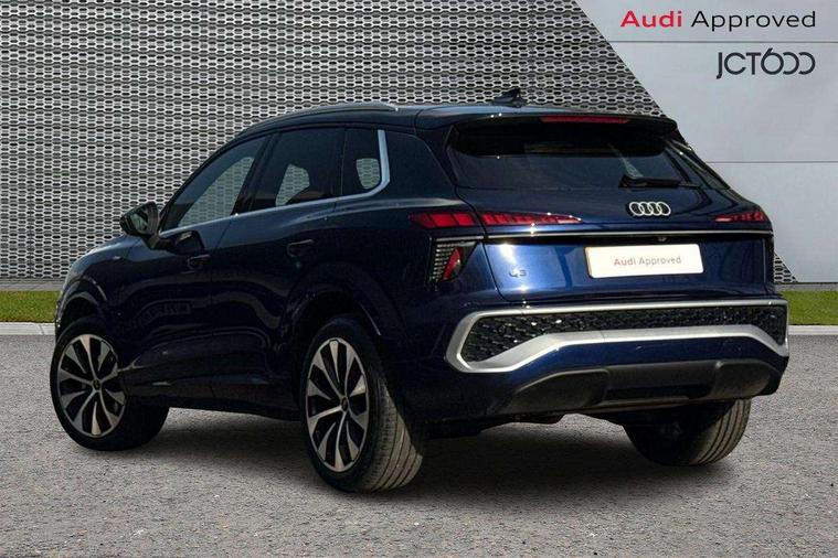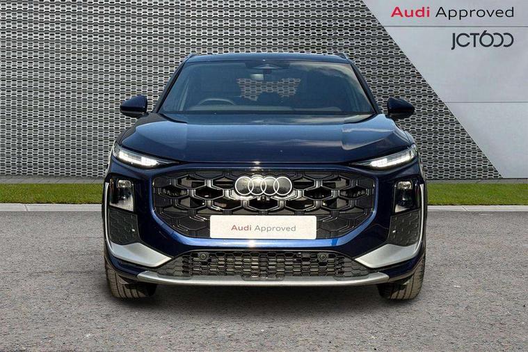 Adaptive cruise control, Audi connect emergency call and service, Audi connect remote and controls, Audi drive select (Balanced/Individual, effeciency, comfort and dynamic), Audi virtual cockpit plus - 11.9" display, Bluetooth interface, Camera based traffic sign recognition, Driver attention and fatigue monitor with driver monitoring, Front cross traffic assist, Lane departure warning with emergency assist, Panoramic curved display with 12.8" MMI navigation plus and MMI touch, Park assist plus with parking system and 360 display, Phonebox light with wireless charging, Reversing camera, Smartphone interface includes wireless Apple carplay/Android Auto, Start/stop system, Swerve assist and turn assist, Traffic sign based speed limiter, Voice control system with natural language interaction, Comfort suspension, Petrol Particulate Filter, 2 USB-C ports with charge and data functions, Audi sound system with 10 loudspeakers, subwoofer, 8 channel amplifier with 260 watts, DAB digital radio module, Acoustic glass for front door windows, Acoustic windscreen, Aluminium roof rails, Aluminium window trim, Audi Q3 lettering on the B-pillars, Auto dimming door mirrors, Auto dimming rear view mirror, Body colour door mirrors, Contrasting finish in volcano grey, Electrically folding, adjustable and heated door mirrors with integrated LED side indicators and kerb view function for passenger side, Full paint finish, Illuminated door sills with aluminium inserts at the front with S logo, LED daytime running lights, LED headlights plus with LED rear lights pro with continous light strip, illuminated Audi rings, rear, LED third brake light, Loading sill protector in stainless steel, Main beam assist, Privacy glass - dark tinted rear window, rear door and side windows, Projection light in the exterior mirrors - Projects a graphic element onto the ground, Q3 badging on the rear, Rain and light sensors, Rear side wing doors, Rear window, rear door windows and rear side windows in clear glass, Rear wiper, Sports bumpers, 3 seat bench in 2nd row, 3 spoke flat top and bottomed leather multi function sport steering wheel with gear shift paddles and "S" badging, 3-zone deluxe automatic air conditioning, 4 way lumbar support for the front seats - electric with horizontal and vertical adjustment in four directions, Black cloth headlining, Front and rear floor mats, Front and rear headrests, Front centre armrest, Heated front seats, Height and reach adjustable steering wheel, Interior storage compartment, Leather/artificial leather upholstery combination with S emblem + front sports seats, Luggage compartment lid, electrically opening and closing, Manual front seats with height adjustment, Rear seat bench plus with split folded 40:20:40, Single front passenger seat, Stainless steel pedals, Steering wheel operating unit, gloss black, Storage compartment in front centre console, Ambient lighting package pro - Q3, S line exterior styling pack - Q3, 3x3 point rear seatbelts, Convenience key with safelock, Driver and front passenger airbag with passenger airbag deactivation, Electromechanical parking brake, Electronic stabilisation control including ABS, ASR and EDL, First aid kit with warning triangle and high visibility vests, Front emergency brake assist, Hill hold assist, i - Size child seat mounting on the front passenger side and i - Size and top tether on the outer rear seats, Power operated child locks, Seatbelt monitoring, Three point automatic belts with belt tensioner and height adjustment, Tyre pressure loss indicator, Anti theft wheel bolts, Remote central locking, Thatcham approved category 1 anti theft alarm, Dark aluminium divergence inlay, Interior elements in dinamica microfibre, Interior trims in aluminium look, Tool kit and Jack,