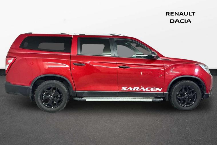 Automatic headlight control and rain sensing wipers, Blind spot detection, Bluetooth telephone connectivity, Cruise control, Front and rear parking sensors, HD 9.2 inch screen with TomTom navigation, rear view camera & Bluetooth connectivity, Hydraulic and speed sensitive power steering, Lane change assist, Rear cross traffic alert, Supervision cluster with 7'' colour TFT-LCD trip computer, TPMS (Tyre pressure monitoring system), 6 speakers, Apple carplay and google android auto, Audio controls mounted on steering wheel, DAB Radio, MP3, 4A, APE, OGG, WMA, FLAC & WAV file format play, USB and auxiliary socket, Black and silver roof rails, Black finished door mirrors, belt line and tailgate finisher, Chrome ladder style front grille, Electric windows, Electric, folding, heated door mirrors with side repeater, Headlamp levelling, High strength steel construction, LED Daytime running lights, LED front fog lights, Projection headlamps, Rear privacy glass, Rear wiper, Saracen graphics, Shark fin roof aerial, Ultra rigid quad frame for greater strength, Visible VIN plate, Windscreen wiper de-icer, 6 way power adjustable front passenger seat, 8 way power adjustable driver seat with power lumbar, A-pillar grab handles, Air vents for rear seat passengers, Automatic de-misting system, Automatic dual zone air conditioning, Cabin air quality control system, Floor mats, Glovebox with illumination and key lock, Heated front seats, Heated leather steering wheel, Heated rear seats, Height adjustable front headrests, Illuminated sun visor with sliding extension, Isofix child seat anchorage points on outer rear seats, Leather covered steering wheel with graphite accents, Premium nappa leather upholstery, Reach and rake adjustable steering column, Rear headrests, Rear seat armrest with cupholders, Stainless front and PVC rear door scuff plates, Tyre parking direction indicator, Ventilated front seats, Woven finish accent to fascia, graphite finish to air vents and door tops, Active roll over protection, Child safety locks, Curtain airbags for front and rear seat passengers, Door impact beams for added protection from side collisions, Dual airbags for driver and front passenger, Front passenger airbag on/off switch, Front seatbelt pretensioners, Seatbelt reminder for all seats, Side airbags for front passengers, Anti theft alarm system, Immobiliser, Remote central locking, Steering column lock, Anti lock braking system (ABS), Brake assist, EBD, Electronic stability programme, Hill Descent Control, Hill start assist, Push button start, Traction control, 18" Black alloy wheels, Tyre repair kit,