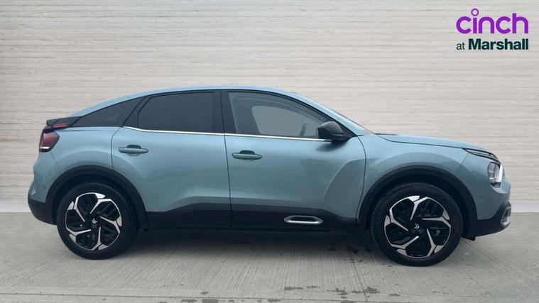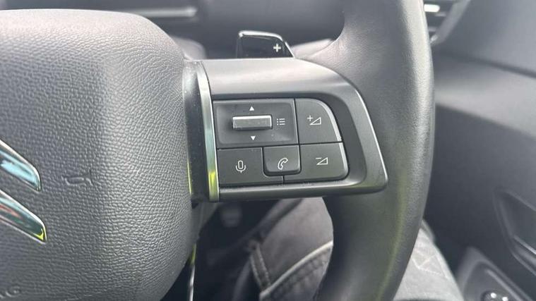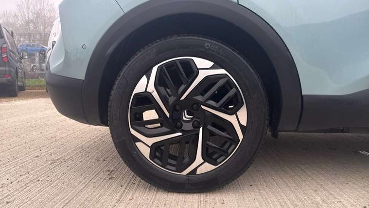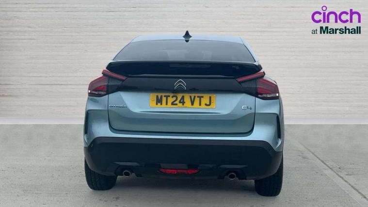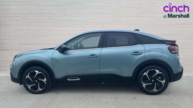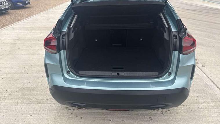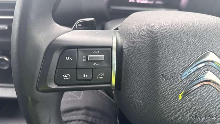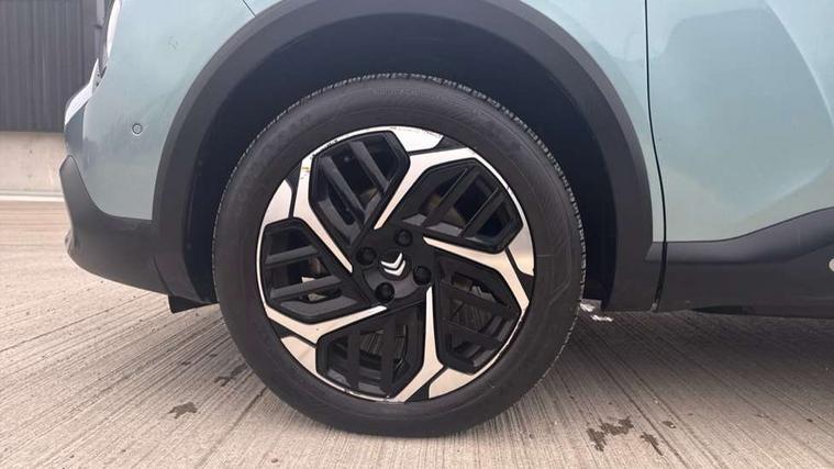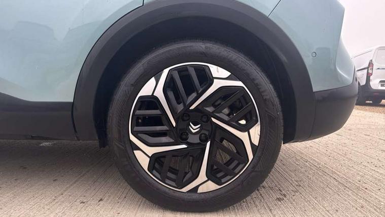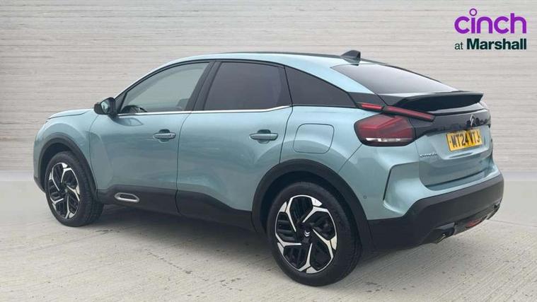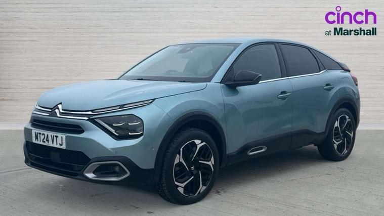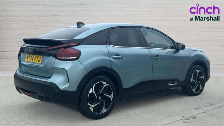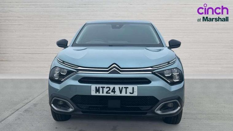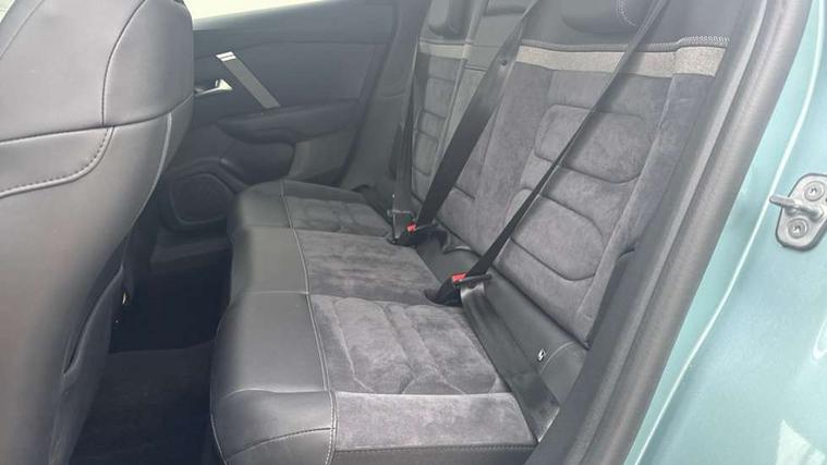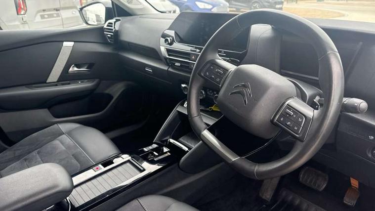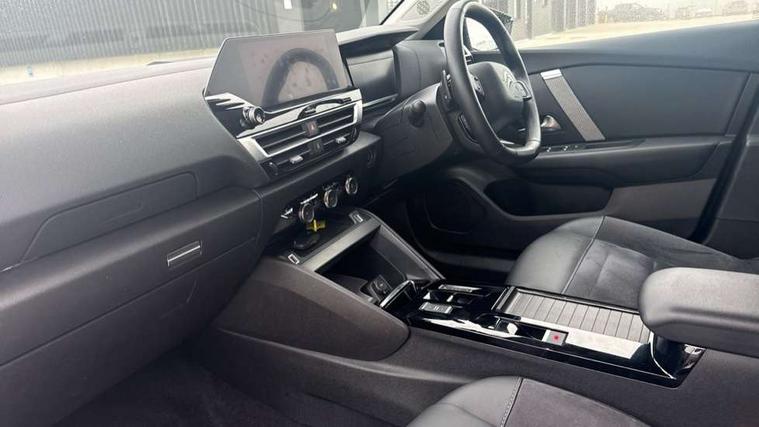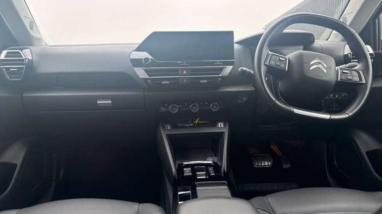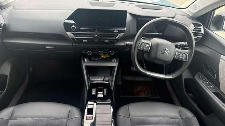 5.5 inch backlit full TFT driver's instrument cluster with LED ambient lighting, Active blind spot detection, Apple car play and Android auto, Citroen connect box emergency and assistance system, Citroen Smart Pad Support - integrated support for attaching a tablet computer for front passenger, Driver's head-up display, Electronic Power Steering (EPS), Front, rear and lateral parking sensors, In-crash braking, My Citroen Drive Plus: 10" high-resolution touchscreen user interface, controlling media, connectivity, vehicle settings + connected nav, Speed limiter, Tailgate, Voice commands, Advanced comfort suspension - double hydraulic stops on front and rear suspension, 6 speakers, Bluetooth telephone and audio streaming, DAB Digital radio, 3rd brake light, Automatic headlights, Body colour bumpers, Body colour door handles, Boot spoiler, C-Series badging on front wing, Dark tinted rear windows and side windows with chrome detail, Electrically heated, folding and adjustable external rear view mirrors with courtesy lighting, Electrochrome interior rear-view mirror with automatic day-night switching, Front and rear electric windows, Gloss black rear skirt, Intelligent beam headlights, LED daytime running lights in V signature, LED front fog lamps with static cornering function, LED front headlamps, Perla Nera black painted external rear view mirrors, Rain sensing automatic front windscreen wipers, Rear side wing doors, Rear wiper, Shark fin roof aerial, Welcome and goodbye lighting, 12V power outlet, 1x USB Type-C socket & data connection, 1x USB Type-A socket at 1st row + 1x USB Type-A socket , 1x USB Type-C socket in 2nd row, 3 rear headrests, 3 seat bench in 2nd row, Alcantara and black leather effect textile seats, Boot light, Dashboard tray in front cabin, Deluxe leather steering wheel with two command blocks, Driver and passenger sunvisors with illuminated vanity mirrors, Dual zone automatic air conditioning, Electrically heated front seats, Front and rear LED interior lighting, Front head restraints, Heated steering wheel, Height adjustable driver's seat with adjustable lumbar support, Height adjustable front passenger seat, Height and reach adjustable steering wheel, Map pockets in rear of front seats, Raised centre console with armrest and two cup holders, Rear central folding armrest with cupholders and ski hatch, Single front passenger seat, Split folding rear seats, Two position boot floor, XXL storage in front cabin, High level acoustic insulation pack - C4/C4 X/e-C4 X, Safety pack plus - C4/C-Series Edition/Max, 3x3 point rear seatbelts, ABS, Driver and front passenger airbags, Electric parking brake, ESP, Front seatbelt pretensioners, Hill start assist, Manual child lock in second row, Manual deactivation of front passenger airbag, Row 1 and 2 curtain airbags, Row 1 side thorax airbags, Seatbelt unfastened on the move warning, Tyre underinflation detection, Anti-theft alarm (volumetric protection), Immobiliser, Keyless entry and start, Remote locking with deadlocks, 18" Bi-tone diamond-cut aeroblade alloy wheels with anti-theft locking wheel nuts, Puncture repair kit with compressor,