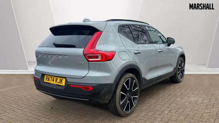 12.3" Progressive Driver Display, 360 degree surround view parking camera with side proximity sensors, 9" centre console portrait touch screen, Adjustable steering wheel force, Android auto (Wired), Apple carplay (wired), Bluetooth handsfree system, Driver alert control, Driver assistance (pilot assist and adaptive cruise control), Driver awareness - Blind spot information system with steer assist, cross traffic alert with autobrake and rear collision warning and mitigation, E-call, Front park assist, Google automotive services - Enabled entertainment apps, navigation with google maps, voice recognition with google assistant, Hands free power tailgate, Intelligent speed assistance, Lane keeping aid, Oncoming Lane Mitigation, Rear park assist, Speed sensitive steering, Volvo cars services with app - Driving journal, emergency and breakdown call, engine remote start, remote door locking/unlocking and vehicle dashboard, Wireless/Inductive Mobile Phone Charging, Automatic transmission with start/stop and manual change functions, Dynamic chassis, DAB Digital radio, Premium Sound by Harman Kardon, Dolby Pro Logic II Surround Sound, Dirac Unison, 12 speakers/600W and subwoofer, Steering wheel mounted remote controls, Active bending pixel LED headlights with adaptive shadow technology, Active high beam incorporating daytime running lights, Adaptive brake lights with high level LED brake lights, Auto dimming feature for exterior door mirrors, Auto dimming interior mirror, Automatic headlamp levelling, Dark tinted windows - rear side windows and rear screen, Front aluminium tread plates, Front and rear electric windows, Headlight cleaning system, High gloss black front and rear skid plate, High gloss black front bumper deco, High gloss black mesh front grille with high gloss black surround, High gloss black window trim, Home safe and approach lighting, Integrated roof rails in high gloss black, LED front fog lights with cornering function, Power glass tilt and slide panoramic sunroof with sun curtain, Puddle lights, Rain sensor with automatic windscreen wiper activation, Rear side wing doors, Rear wiper, Roof antenna, Roof spoiler, Visible VIN plate, 12V socket in front tunnel console and luggage compartment, 2-Zone electronic climate control with CleanZone air quality system and pollen filter, 3 seat bench in 2nd row, 3 Spoke tailored steering wheel with chrome trim, 60/40 versatile split folding rear seat, Centre console cupholders and storage, Flexible load floor and grocery bag holder, Floor mats, Front cabin courtesy lights, Front door pocket, front cupholder, ambient front door, rear reading, rear courtesy, instrument panel and tailgate lighting, Front footwell illumination, Front headrests, Front reading lights, Front seat cushion extensions, Front side step illumination (under door), Glovebox bag hook, Heated front seats, Height/reach adjustable steering column, High gloss centre tunnel deco, Illuminated glovebox, Illuminated luggage compartment, Illuminated vanity mirrors + ticket holder, Integrated waste bin, Isofix attachments on outer rear seats, Load cover, Load protection net, Multi directional lumbar support for driver and passenger seat, Power driver seat with memory + exterior mirrors memory, Power folding rear headrests, Power passenger seat, Rear armrest with cupholders, Single front passenger seat, Underfloor cargo storage, Climate pack without heated front seats - XC40, 3x3 point rear seatbelts, City safety with steering support with Pedestrian + cyclist + front collision warning with full auto brake and rear auto brake, Driver and passenger airbags, Drivers knee airbag, Electronic parking brake with auto hold, First aid kit, Front and outer rear seatbelt reminder and pretensioners, Front seats SIPS airbags, Hill descent control, Hill start assist, Inflatable curtain, Passenger airbag cut-off device, Power child locks on rear doors, Road sign information display, Run off Road Protection, SIPS (Side Impact Protection System), Slippery road and hazard light alert, Stability and Traction Control with Spin control, Engine Drag Control and Corner Traction Control, Tyre pressure monitoring system, Vehicle deceleration control with Anti-lock Brake System, Electronic Brake Distribution and Emergency Brake Assist, Warning triangle, WHIPS whiplash protection system - front, 2 x Key integrated remote control central locking including with deadlocking system and auto open/close windows and sunroof, Anti-theft alarm including immobiliser/volume sensor + level sensor, Keyless drive includes keyless entry and keyless start, Locking wheel nuts,