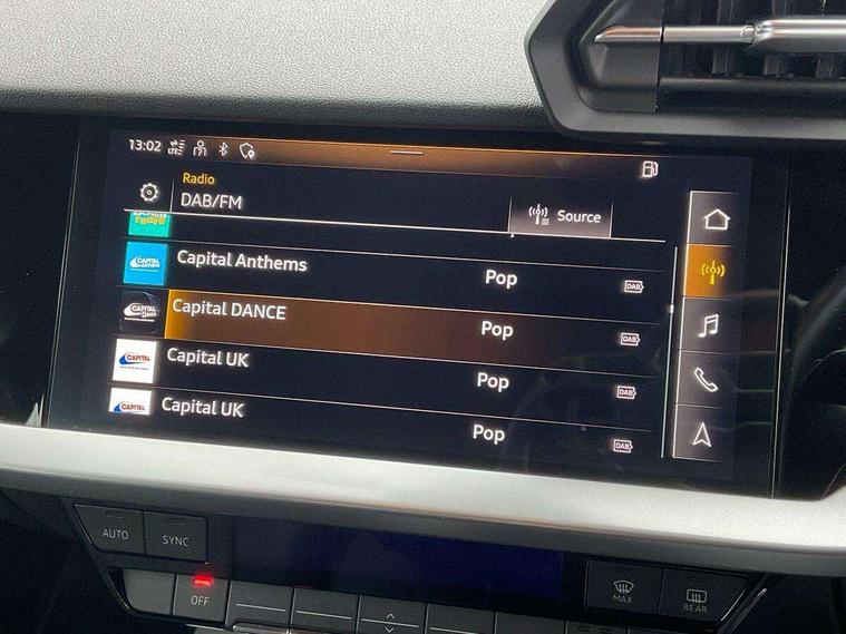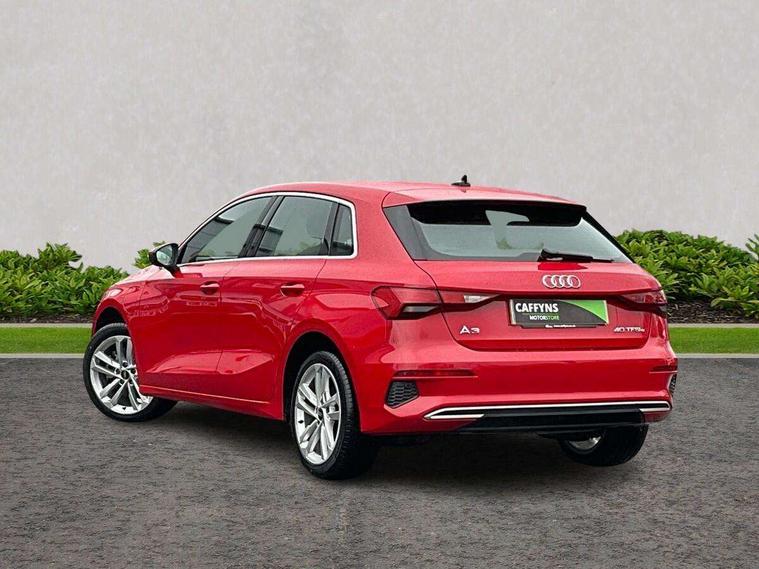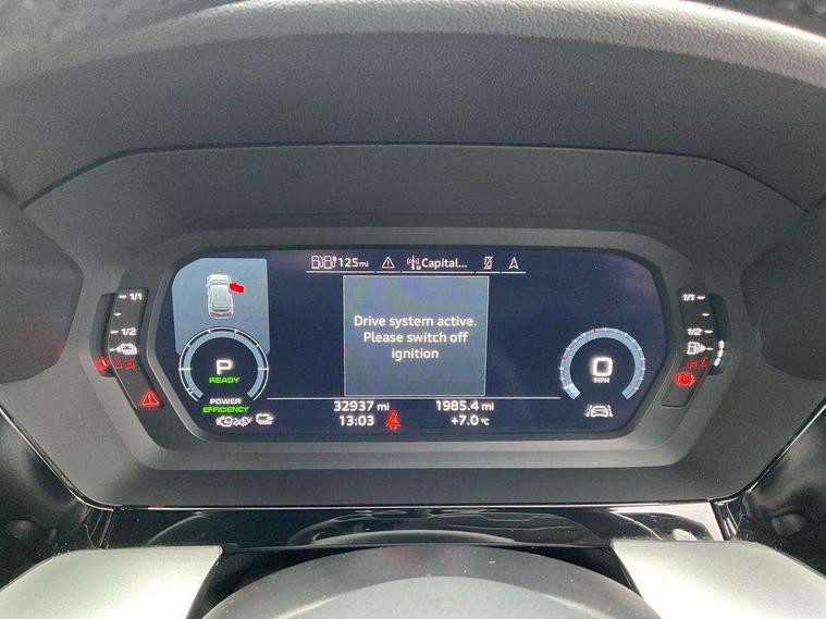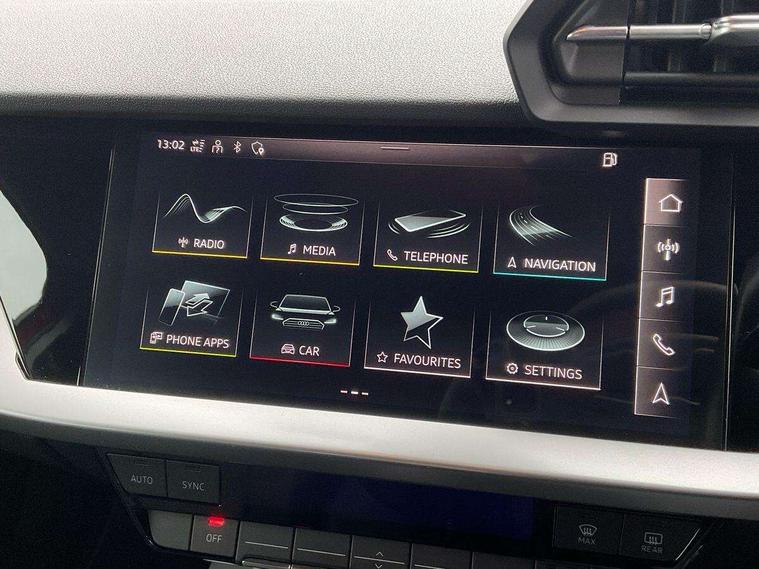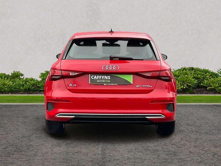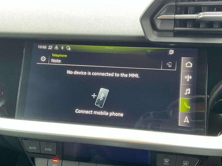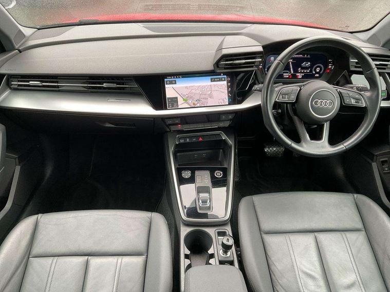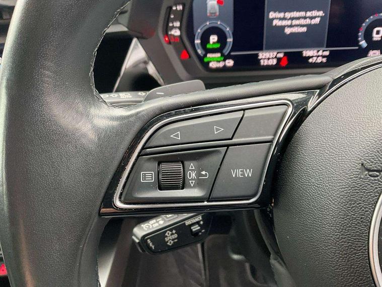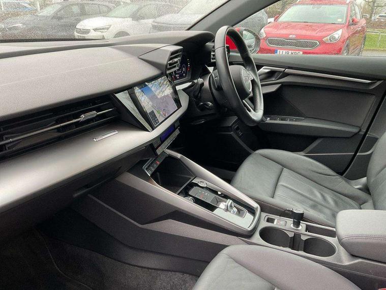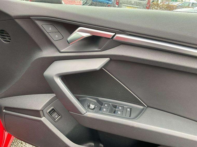 Audi drive select (Auto, Comfort, Dynamic, Efficiency and Individual), Audi smartphone interface, Audi Virtual Cockpit - 10.25" digital and colour instrument cluster, Automatic start/stop system with recuperation, Bluetooth interface, Collision avoidance assistant, e-Call (emergency call), Electromechanical power speed sensitive steering, Lane departure warning system, MMI Navigation Plus with high resolution 10.1" colour touch screen display, Service indicator, Trip computer, Voice control system with natural language interaction, 3 pin 10 amp domestic charging cable, 3.6 kw On-board charger, Standard suspension, Type 2 mode 3 32 amp charging cable, Type 2 socket for AC charging, 2xUSB-C connection with data and charging functions, 6 passive loudspeakers, DAB Digital radio, 3rd brake light, Acoustic glass windscreen, Aluminium window trim, Auto dimming frameless rear view mirror, Body colour exterior mirrors, Body colour roof spoiler, Electrically adjustable/heated/folding/auto dimming door mirrors with integrated LED indications + kerb view function for passenger side, Front electric windows, LED daytime running lights, LED headlights and halogen rear lights, Light and rain sensors, Rear electric windows, Rear side wing doors, Rear window, rear door windows and rear side windows in clear glass, Rear wiper, 12V socket and storage compartment in front centre console, 3 seat bench in 2nd row, 40/20/40 split folding rear seat bench with cupholder, Dual zone electronic climate control, Front and rear centre armrest, Front and rear headrests, Front door sill trims with aluminium inlay, Front/rear floor mats, Height and reach adjustable steering wheel, Interior lighting - Front and rear roof module including reading lights, glove compartment light and right hand side, Luggage compartment floor covering, Manual boot compartment lid, Manually adjustable front seats, Seat side bolsters, Single front passenger seat, Steel grey cloth headlining, Twin leather upholstery, Aluminium interior elements pack - A3 Sportback, Sport styling pack - A3 Sportback, 3x3 point rear seat belts, Audi pre sense front, Driver and front passenger airbag with passenger airbag deactivation, Electronic Stabilisation Control (ESC) including ABS, ASR and EDL, First aid kit with warning triangle and 2 safety vests, Front side airbags with head airbags and interaction airbag, Pre-sense front with pedestrian and cyclist detection, Seatbelt monitoring, Tyre pressure loss indicator, Anti theft alarm, Anti-theft wheel bolts, Immobiliser, Manual child locks, Remote control central locking, Inlays with silk effect paint in platinum grey, Tool kit, Tyre repair kit,