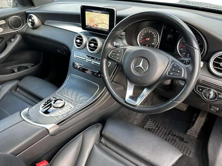 Active park assist with parktronic system, Attention assist, Bluetooth interface for hands free telephone, Collision prevention assist plus, Crosswind Assist, DYNAMIC SELECT with a choice of driving modes (ECO, Comfort, Sport, Sport+ and Individual), Garmin Map Pilot navigation system with SD card, touchpad and voice control, High resolution 7 inch multimedia colour display, Instrument cluster with 5.5-inch TFT multi-function display, Mercedes connect me with remote online services, Multi function trip computer, Outside temperature gauge, Power opening/closing tailgate, Remote boot release, Service indicator (ASSYST), 66 litre fuel tank, 5 speakers, DAB Digital radio, Frontbass loudspeakers, Mercedes Audio 20 radio/single CD + telephone keypad, USB connection, Adaptive brake lights, Automatic headlights, Black pins diamond radiator grille with integrated stars, Body colour door mirrors, Body coloured bumpers, Chrome exterior trim, Electric sliding glass sunroof, Electric windows one touch open/close, Electrically adjustable and heated door mirrors, Exhaust tailpipe finisher, LED daytime running lights, LED rear lamps, Privacy glass (to rear of B post), Rain sensor windscreen wipers, Range adjustable headlights, Rear wiper, Tinted glass all round, 2 cupholders in front centre console, 2 way rear head restraints, 3 spoke leather steering wheel, 4 way adjustable front head restraints, 4 way electric lumbar support for driver and front passenger, 40:20:40 split folding rear seats, Ambient lighting, Auto Mercedes-Benz child seat recognition sensor, Automatic climate control, Dividing net - rear, Electric front seat height adjustment, Front armrest with storage box, Front door sills with Mercedes Benz lettering, Gearshift paddles, Heated front seats, Height/reach adjustable steering column, Lockable/illuminated glovebox, Multifunction steering wheel, Rear top tether child seat ISOFIX attachment, Sunvisors with illuminated vanity mirrors, Velour floormats, Easy-pack load compartment cover, Interior lighting pack - GLC, Memory pack - GLC, Mirror pack - GLC, Storage pack - GLC, 3 rear 3 point seatbelts, ABS with Brake Assist, Active bonnet, Adaptive brake system, ASR, Black seat belts, Child proof door locks, Drivers knee airbag, Dual stage driver/passenger airbags, Electronic parking brake, ESP curve dynamic assist, Front and rear seatbelt reminder, Front passenger seat occupancy sensor, Front side airbags, Hill hold function, Tyre pressure monitoring system, Warning triangle and first aid kit, Window airbags, Alarm system/interior protection/immobiliser, Automatic door locking, Keyless entry and keyless start, Remote central locking, 18" 5 spoke alloy wheels in vanadium silver, Tyre inflation kit,