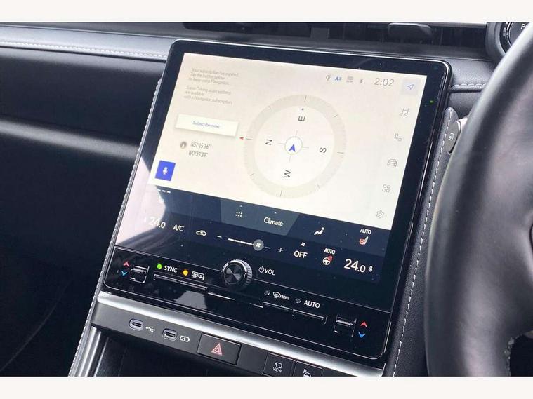 12.3" Digital instrument binnacle, Active Noise Control, Bluetooth connectivity, Cloud navigation, e-Call (emergency call), Electric power steering, Extended Lexus safety system+ 3 includes blind spot monitor, safe exit assist, camera washer and rear cross traffic alert, Front and rear parking sensors with intelligent clearance sensor, Front and rear smart entry, Front Cross Traffic Alert with Auto-Brake, Head up Display, Intelligent park assist, Lane change assist, Lane change flasher function, Lexus link connected services, Lexus safety systems+ 3 includes dynamic radar cruise control, pre collision system day and night, lane tracing assist, road sign assist, Panoramic view monitor, Pre-collision system with driver monitor, Push button start, Rear view camera, Tailgate, Wireless Apple CarPlay and wired Android Auto, Wireless Smartphone charger, Vehicle dynamic integrated management (VDIM), 1 USB (Type-C) charging ports in bottom of the instrument panel, 1 USB (Type-C) multimedia communication ports in bottom of the instrument panel, 1 USB (Type-C) ports inside front console box, 2 USB (Type-C) ports for charging in rear, Lexus Link Connect with 9.8" Touchscreen, Mark Levinson sound system with 13 speaker, Rear side monitor, Acoustic glass (front side and windshield glass), Auto dimming interior rear view mirror, Auto headlights, Black wheel arches, Cornering light, Electric adjustable/heated/auto folding door mirrors, Front and rear electric windows, Front windscreen de-icer, Full body colour bumpers, LED 3rd brake light, LED daytime running lights, LED front fog lights, LED rear lights, Power back door without kick function, Privacy UV glass, rear doors and tailgate, Rain sensing wipers, Rear side wing doors, Rear wiper, Single bulb LED headlights with adaptive high beam system, Wet arm wipers, 12V accessory connector in front console box, 3 bench rear seats in 2nd row, 3 rear headrests, 60/40 split folding rear seat, Aluminium scuff plates, Armrest with sliding cup holder, Centre armrest with storage, Cup holder in centre console, Driver and passenger door pocket, Driver's lumbar support, Dual zone automatic air conditioning, Front headrests, Glovebox, Heated front seats, Heated steering wheel, Illuminated entry system (cabin, footwell, console and door handles), Leather gear lever, Leather steering wheel, Memory function for driver seat, Multi colour ambient lighting, Nanoe-X Technology, Rear air vents, Sequential shift and paddles, Single passenger seat, Storage tray under audio panel and lower tray, Touch Sensor Buttons on Steering Wheel, Tsuyasumi interior ornamentaion, Under deck storage, 2 x Isofix child rear seat restraints, 3 point ELR (Emergency Locking Retractor) front seat belt with pretensioners, 3x3 point rear seat belts, ABS, Adjustable seatbelt anchor points, Driver and front passenger side airbags, Driver and front passenger single stage airbags, Driver knee airbag, E-Latch electric door release, Electronic parking brake, ESP, Front and rear curtain shield airbags, Front centre airbag, Manual rear child locks, Passenger airbag cut-off switch, Tyre pressure monitoring system, Alarm/anti-theft (with siren and 2 sensors), Engine immobiliser, Thatcham approved locking wheel nuts, Two motion door lock with double lock, VIN etching, Tyre repair kit,