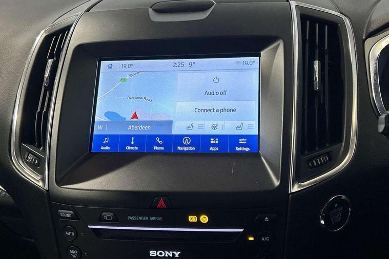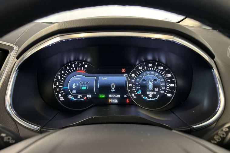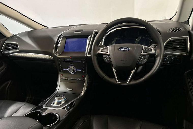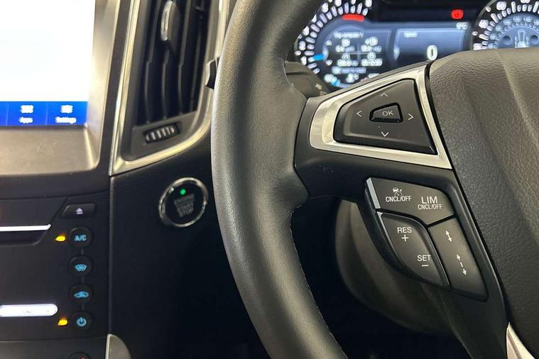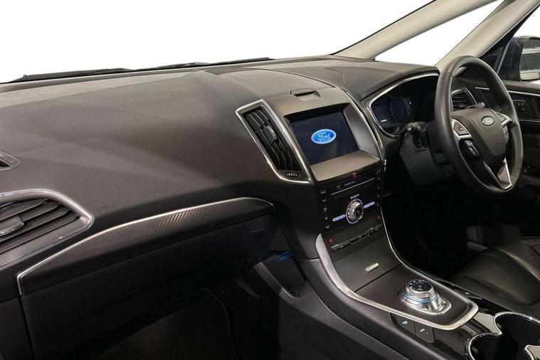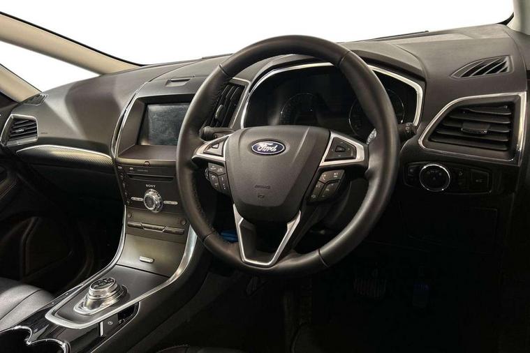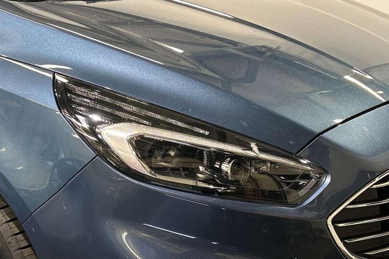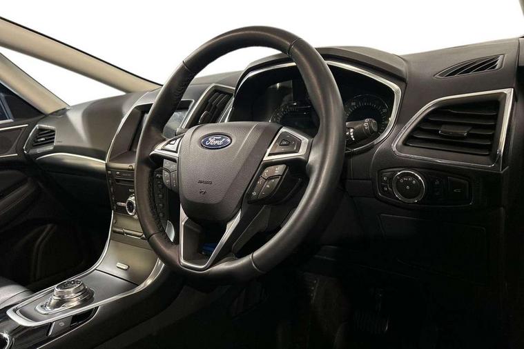 'Ford Power' starter button, 10.1" semi digital cluster, Easy fuel capless refuelling system, eCall emergency call system, Lane keeping aid including driver impairment monitor and active steering with lane departure warning, PAS, Rotary gear shift dial, Traffic sign recognition, Unique instrument cluster, Steering wheel mounted controls, 3rd brake light, Auto dimming rear view mirror, Automatic headlights, Automatic wipers with variable sensitivity adjustment, Body colour door handles, Body coloured bumpers, Chrome trim to side windows, Full body coloured trim, Halogen front fog lights, Halogen projector headlights, LED daytime running lights, LED rear lights, Power fold mirrors - heated, indicators with puddle lamps, Power operated front and rear windows, Quickclear heated front windscreen, Rear privacy glass - dark glass to rear windows, Rear side wing doors, Tailgate wash/wipe, Tinted glass, 2 x 3rd row individual seats with fold flat, 230V power outlet in centre console, 3 x 2nd row individual seats wih fold flat, slide and recline, Ambient lighting, Dual zone electronic automatic temperature control, Floor mats in all three rows, Front and rear head restraints, Front seat back table trays, ISOFIX attachments for child seats in 2nd row, Leather trimmed steering wheel, Overhead console with sunglasses stowage, Pollen and odor air filter, Reach and rake adjustable steering column, Single front passenger seat, Sports seats, 3 point seatbelts on all seats, ABS/EBD, Driver/Front Passenger airbags, Drivers knee airbag, Electric handbrake, ESP+EBA, Front and rear (row 2) curtain airbags, Front side airbags, Manual child lock in rear doors, Passenger airbag deactivate switch, Pre collision assist system, Traction control, Tyre pressure monitoring system, Immobiliser, Keyless entry system, Locking wheel nuts, MyKey system, Remote control central locking, Thatcham alarm, Tyre inflation kit,