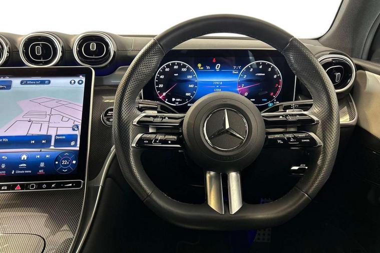 11.9" high resolution multimedia colour display, 12.3" Digital individually configurable instrument display, Acoustic presence indicator, Active lane keeping assist, Attention assist, Blind spot assist, Bluetooth interface for hands free telephone, Collision prevention assist plus, Cruise control with speedtronic variable speed limiter, Dashcam - front camera for video recording, Direct steer speed sensitive steering, DYNAMIC SELECT with a choice of driving modes (ECO, Comfort, Sport, Sport+ and Individual), eCall emergency call system, ECO start/stop function, Fingerprint scanner, Fluorescent jacket for driver, Hard disc navigation, Instrument display in miles with English lettering, MBUX augmented reality for navigation, MBUX navigation premium, MBUX voice control activated by keywords "Hey Mercedes", Mercedes me connect, Multi function trip computer, Outside temperature display, Remote boot release, Remote services, Road sign recognition system, Service indicator (ASSYST), Smartphone integration, Status display for rear seat belts in instrument cluster, Traffic sign assist, Wireless charging, 48V Mild hybrid technology, 4MATIC permanent four wheel drive, 62 litre fuel tank, 9G TRONIC plus automatic transmission, Petrol Particulate Filter (PPF), Sport suspension, DAB digital radio tuner, MBUX extended functions, Mercedes benz sound system, Pre installation for Mercedes Benz Link, Adaptive brake lights, Adaptive high beam assist plus, Aluminium look running boards with rubber studs, AMG bodystyling front apron, rear apron and side skirts, AMG Line exterior, Auto headlights, Body colour bumpers, Body colour door mirrors, Digital light LED headlights, Electrically adjustable door mirrors, Front and rear electric windows, Headlight washers, Heat insulating dark tinted glass, Heated rear window, High level LED brake light, Integrated LED daytime running lights, LED indicator lights, LED rear fog lights, LED tail lamp, Motor way mode function and locator lighting, Noise acoustic glass, Radiator grille with Mercedes Benz pattern and integreated Mercedes star and louvre in dark grey matt with chrome inlay and black frame, Rain sensor windscreen wipers, Range adjustable headlights, Rear side wing doors, Rear wiper, Transparent Bonnet, Two chrome plated tailpipe trim elements, Variable front intermittent wipers, Welcome and follow-me home light functionality, Wider wheel arch for AMG wheels, 3 seat bench in 2nd row, 40:20:40 split folding rear seats, Ambient lighting premium, AMG line interior, Artico man-made leather upholstery, Audio and onboard settings control on multifunction steering wheel, Automatic child seat recognition sensor, Black fabric roof lining, Black floor mats with AMG lettering, Double cup holder in centre console, Easy-pack removable load compartment cover, Electrically height/reach adjustable steering column, Front centre armrest with stowage compartment, Front head restraints, Galvanised steering wheel gearshift paddles, Heated front seats, Illuminated door sill panels with Mercedes Benz lettering, Illuminated glove compartment, Instrument panel and beltlines in ARTICO manmade leather in nappa look, Multifunction sports steering wheel in nappa leather, Rear centre headrest, Rear head restraints, Rear top tether child seat ISOFIX attachment, Single front passenger seat, Sports pedals with stainless steel surfaces and rubber studs, Sports seats, Sun visors, THERMATIC 2 zone automatic climate control, Anti theft protection package - GLC, Boot comfort package - GLC, Exterior chrome package - GLC, Interior chrome package - GLC, Interior lighting pack - GLC, Keyless-Go comfort package - GLC, Memory pack - GLC, Mirror pack - GLC, Parking package with 360 degree camera - GLC, Seat comfort package - GLC, Stowage space package - GLC, USB Plus Pack - GLC, 3 rear 3 point seatbelts, Active braking assist, Anti-lock braking system (ABS), ASR traction control, Automatic front passenger airbag deactivation, Black seat belts, Brake calipers with Mercedes-Benz lettering + perforated brake discs, Braking system with larger brake discs on the front axle, Child proof door locks, Dual-stage airbags - driver and front passenger, driver knee bag and window bags for driver, front passenger and rear passengers, Electronic parking brake, Electronic stability programme (ESP) with curve dynamic assist and cross wind assist, Front and rear seatbelt reminder, Front passenger seat occupancy sensor, Front seatbelt pretensioners, Hill start assist, Tyre pressure monitoring system, Warning triangle and first aid kit, Automatic door locking, Guard 360 degree vehicle protection plus, Interior protection/immobiliser, Remote central locking, Centre console in metal structure finish, Metal structure trim, 20" AMG 5 spoke aerodynamically optimised light alloy wheels in painted black with high sheen finish, Summer tyres, TIREFIT with tyre inflation compressor,