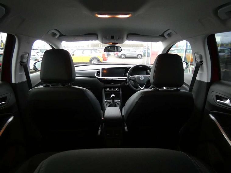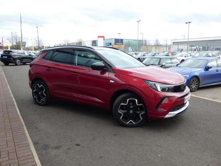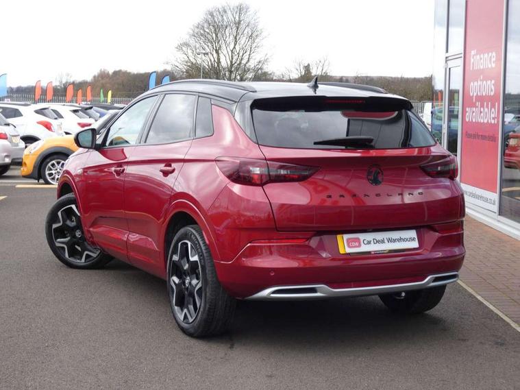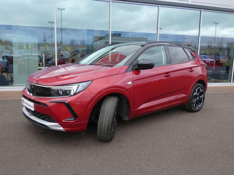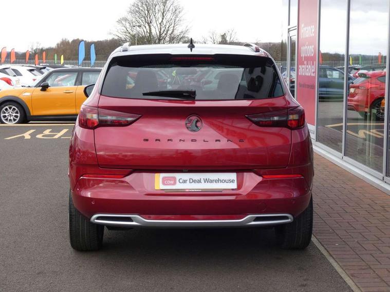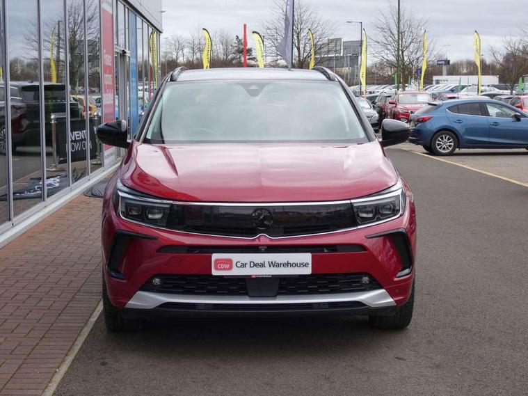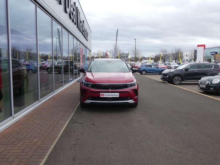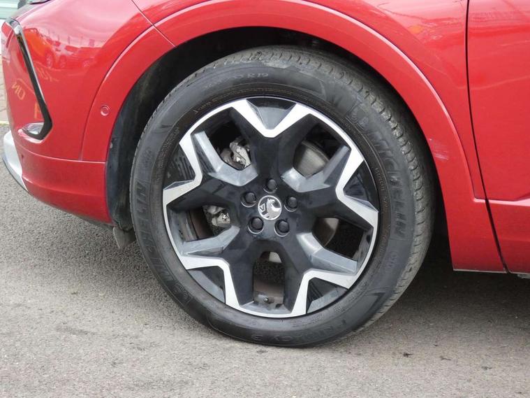 12" colour digital cluster, Central facia display with digital clock, outside air temperature and audio information, Cruise control with speed limiter, Digital fuel gauge with low fuel level warning light, Digital rev counter, Digital speedometer, Digital water temperature gauge with warning light, Driver drowsiness alert system, Driver information - Total mileage, service indicator, oil life, Front and rear parking distance sensors with 360 degree rear view camera and advanced park assist, Gearshift up/down indication light, Lane departure warning system, Lane keep assist, Lights on audible warning, Multi function trip computer - Trip odometer, vehicle range, average speed and fuel economy, instantaneous fuel economy and driving time, Multimedia navi pro with 10" colour touch+ sat nav+AM/FM/DAB radio, bluetooth audio streaming/mobile phone portal, Apple carplay/Android auto, USB, Power operated tailgate with foot sensor, Side blind spot alert, Speed sensitive electric power assisted steering, Speed sign recognition, Vauxhall connect including Emergency call (SOS e-call) and Breakdown call (b-call), Wireless charger for mobile devices, Anti-roll bars, Compound crank rear suspension with coil springs and gas pressure dampers, Independent decoupled MacPherson strut front suspension with gas pressure dampers and coil springs, anti-roll bar, Six speaker - four front + two rear, Steering wheel mounted audio/phone/cruise controls, Alloy effect front and rear skid plates, Automatic lighting control, Automatically dimming anti dazzle rear view mirror, Black door mirrors, Black roof, Black side window trim, Body colour door handles, Body colour lower front and rear bumpers, protective wheel arches and lower door cladding, Body colour upper front bumper, Collapsible windscreen wipers, Dark tinted rear side and tailgate windows, Door to door illumination, Electrically operated front and rear windows with safety auto reverse and one touch up/down facility, Front wiper system spraying directly from wipers, Hazard warning lights, Heated rear screen with timed cut off, Heated windscreen, High beam assist, High gloss black Griffin for Vizor and tailgate with high gloss black Grandland tailgate lettering, High gloss black roof rails, High level centre rear brake light, IntelliLux adaptive LED pixel headlights and LED tail lights, Intermittent rear window wash/wipe, LED daytime running lights, LED front fog lights, Magic wash, Manual headlight beam levelling, Rain sensor windscreen wipers, Rear side wing doors, Rear spoiler, Reversing light, Shark fin aerial, Silver effect protective front and rear skid plate, Soundproof insulated windscreen, Tinted windows, Twin electrically adjustable and heated power door mirrors (wide-angle on drivers side) with automatic timed cut-off, Two speed windscreen wipers with variable intermittent wipe, Upper and lower bumper design, Vizor front grille, Welcome lighting, 12v plug in front console and 12v plug in boot, 3 bench rear seats in 2nd row, 3 spoke flat bottom leather steering wheel with satin chrome effect bezel, 4 way electric driver lumbar support, 4 way passenger electric lumbar support, 60/40 split folding rear seat with centre rear seat armrest and load though facility, Advanced predictive logic control system using a sun sensor, Alcantara upholstery, Ambient centre console downlighter, Automatic air direction and fan speed with manual override, Charcoal filter, Chrome effect interior door handles, Covered storage compartment in centre console and in driver armrest, Driver's centre armrest, Drivers and front passengers seat with height, reach, tilt, backrest adjustment and seat cushion extension, Dual zone electronic climate control, Ergonomic active drivers sports style seat, Ergonomic active front passenger sports style seat, Front door pockets with 2.6 litre capacity, Front seat back storage pockets, Fully carpeted luggage area, Height adjustable headrests, Illuminated driver/passenger sunvisors with vanity mirror, Illuminated luggage area, ISOFIX on front passenger and rear outer seats, Luggage compartment cover, Reach + rake adjustable steering column, Rear centre seat head restraint, Rear door pockets with 1.8 litre capacity, Rear passenger compartment heating ducts, Rear reading lights, Two drinks holders in centre console, Winter pack - Grandland, Anti-lock braking system (ABS), Automatic emergency braking with pedestrian detection, Child proof locks on rear doors, CSC - Cornering stability control, Deactivation switch for front passenger front and side impact airbags, Deflation detection system, Driver airbag, Dual seatbelt pretensioners on front seats, EBD - Electronic brakeforce distribution, Electronic parking brake, Electronic stability program (ESP) including traction control, Front brake ventilated disc 304mm diameter, Front passenger airbag, Front seat side impact airbags, Full size curtain airbags for driver, front seat passenger and outer rear seat passengers, Hill start assist, Hydraulic Brake Assist (HBA), Inertia reel lap and diagonal seatbelts for all seats, Load limiters on outer rear seatbelt retractors, Pretensioners on outer rear seatbelt retractors, Rear brake ventilated disc 268mm diameter, Smart seatbelt reminder for front and rear seats, Tyre pressure monitoring system, Deadlocking system, Electronically protected audio equipment, Engine deadlock immobiliser, Keyless entry and start, Locking wheel nuts, Remote control central locking activation switch on driver door, Remote security alarm system, Black door panels with black premium leather effect inserts, Dax decor facia panel with palladium medium finish, 19" diamond cut bi-colour alloy wheel, Tyre inflation kit,