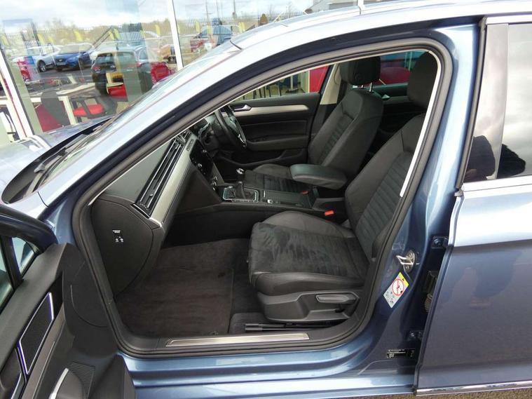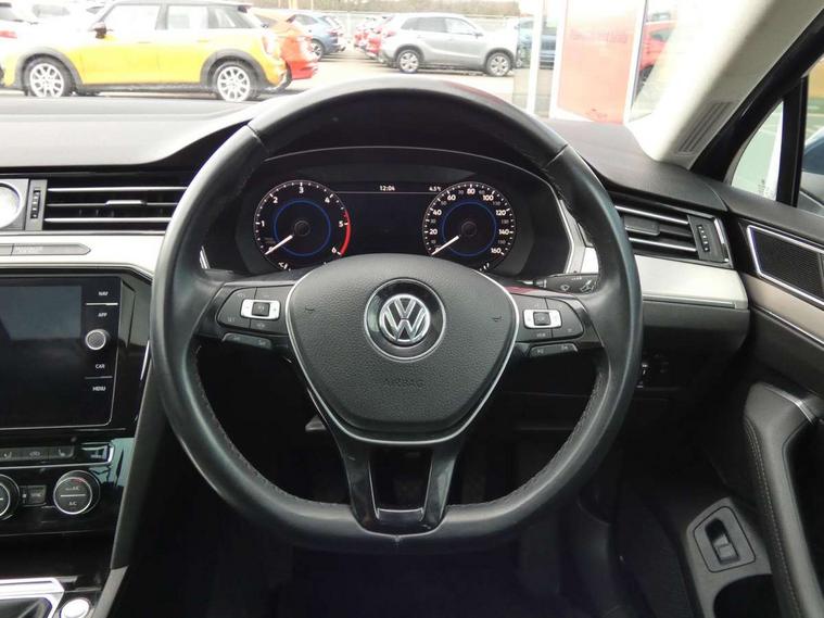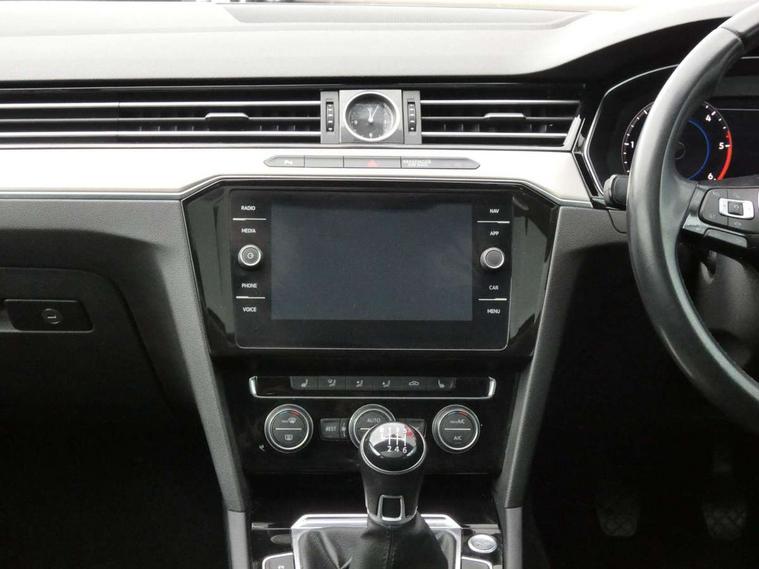 Active Info display 12.3" high resolution TFT dash display with customisable menu and information, Adaptive cruise control, Analogue clock, App-Connect, Door/boot open warning light, Driver alert system, Driver profile selection, Exterior temperature gauge with frost alarm, Low washer fluid warning light, Multifunction computer, One touch indicator turn signal, Remote boot release, Remote fuel flap release, Rev counter with fuel gauge, Service interval indicator, Start/Stop function, Think blue trainer driver tips and journey analysis, Warning buzzer and light for front seatbelts unfastened, Battery regeneration during braking, Diesel particulate filter, Misfuel prevention device, 4 X 20 watt output, Auxiliary socket for external device, Composition media system with Radio/CD/MP3, DAB Digital radio, MDI with USB/iPod connection cables, SD card slot, Simultaneous pairing of 2 compatible mobile devices, SMS Functionality, Title and cover art display, Automatic activation of hazard warning lights, Automatic headlights with dusk sensor, Body colour bumpers, Body colour door handles, Body coloured door mirrors, Chrome fog light surround, Chrome louvres in grille, Chrome side sills, Chrome side window surrounds, Chrome surround for air intake, Electric front windows, Electric panoramic sunroof with sunblind, Electric rear windows, Electrically adjustable and heated door mirrors, Gloss black finish on B pillar, Headlight range control, Heated rear window, High level 3rd brake light, LED rear lights, LED rear number plate lights, Trailer stability assist, Windscreen wipers/ intermittent wipe + 4 position delay, 12V socket in luggage compartment, 3 rear head restraints, 3 Zone electronic climate control with automatic air recirculation, 4 boot load lashing points, 60/40 split folding rear seat, Driver's cushion tilt adjust, Entry lights on doors, Front + rear carpet mats, Front and rear interior lighting with delay and dimming function, Front centre armrest with storage compartment, Front comfort seats, Front cupholders x2 with covers, Front door pocket bottle holders, Height adjustable head restraints, Height/reach adjust steering wheel, Leather gearknob, Load through provision, Lockable, illuminated, cooled glovebox, Luggage compartment cover, removable, Luggage compartment lighting, Rear centre armrest with cupholder and storage, Storage compartment in driver's door, Storage compartment in passenger's door, Storage compartment in rear doors, Storage compartment in roof console, Storage pockets in backrests of front seats, Variable boot floor, Convenience pack - Passat, Mirror pack - Passat, 3 rear 3 point seatbelts, ABS, brake assist and EBD, Automatic post collision braking, Curtain airbags, Disc brakes front and rear, Door open warning reflectors, Driver/Front Passenger airbags, Driver/Front passenger WOKS head restraints, Drivers knee airbag, Electronic parking brake with auto hold, ESP with EDL + ASR, First aid kit, Front assist including city emergency braking, Front side airbags, Height adjustable front 3 point seatbelts + pretensioners, Hill hold function, Manual passenger airbag deactivation function, Pre crash preventive occupant protection, Rear seatbelt warning indicator, Rear side airbags, Rigid safety cell with front and rear crumple zones, Volkswagen roadside assistance, Warning triangle, Alarm with interior protection, Electronic engine immobiliser, Keyless start, Remote central locking with 2 remote folding keys, Chrome air vent and instrument surround, White instrument dials, 18" full size alloy spare wheel including tyre,