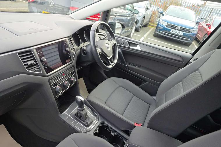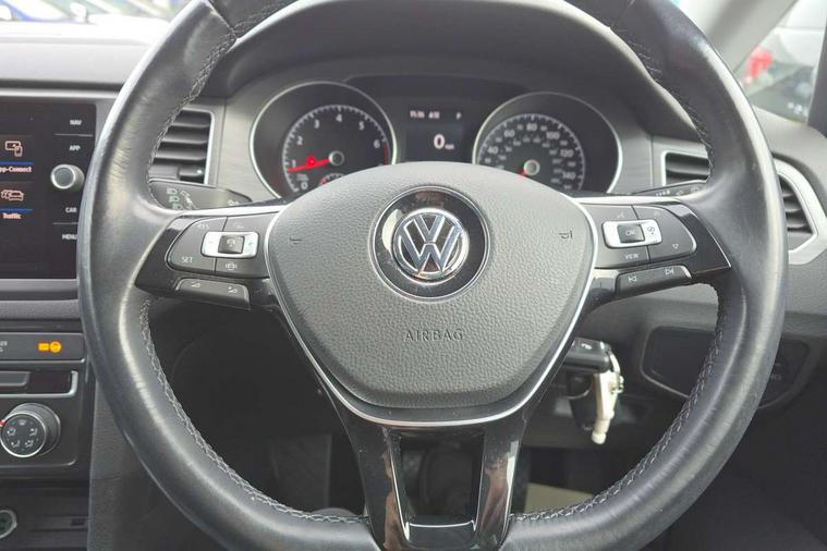 'Lights On' Reminder warning buzzer, ACC - Adaptive cruise control with front assist, forward collision warning, distance monitoring, city emergency brake and speed limiter, App-Connect, Bluetooth Telephone preparation, Brake pad wear indicator warning light, Driver alert system, Driver profile selection, Exterior temperature gauge, Front and rear parking sensors, PAS - speed related, Push tank flap, Rev counter, Speedometer, electronic odometer and fuel gauge, Stop/start system, Trip and service interval display, Warning buzzer and light for front seatbelts unfastened, White instrument cluster lighting, XDS electronic differential lock, CD/MP3/WMA, USB and SD card reader, aux-in, Composition media system, DAB Digital radio, Personalisation 1.1 profile for media, Auto dimming rear view mirror, Automatic coming/leaving home lighting function, Black front air intake and radiator grilles, Body colour bumpers, Body colour door handles, Body colour door mirrors with integral indicators, Electric front windows, Electric rear windows, Electrically adjustable and heated door mirrors, Fog light with turning light, Front fog lights with static cornering function, Galvanised body, Heat insulated tinted glass 65% light absorbing from B pillar back, Heated rear windscreen, LED 3rd brake lamp, LED daytime running lights, LED rear lights, Rain sensor, Range adjustable headlights, Rear diffuser, Rear roof spoiler, Rear window antenna, Rear windscreen washer and wiper with interval delay, Twin exhaust tailpipe, Windscreen wipers/ intermittent wipe + 4 position delay, 12V socket in luggage compartment, 2 front reading lights, 3 rear headrests, 3 spoke multi-function leather steering wheel and gearknob, 60/40 split folding rear seat, Auto fold down lever in rear seat backrest, Boot lashing points, Centre console storage box, Cooled glovebox, Courtesy light delay, Driver and front passenger under seat drawer, Driver/front passenger seat height adjustment, Dust/pollen filter, Front centre armrest with storage box and rear air vents, Front comfort seats, Front seat back storage pockets, Grab handles, Height/reach adjust steering wheel, Interior lighting with switch off delay and contact switches on all doors, Isofix preparation for 2 rear child seats, Luggage compartment cover, Luggage compartment lighting, Overhead storage box, Pearl grey headlining, Rear armrest with 2 cupholders and load through provision, Rear reading lights x 2, Storage box in luggage compartment, Storage boxes under front seats, Storage compartments in doors, Sunvisors with illuminated vanity mirrors, Variable boot floor, height adjustable and removable, White adjustable panel illumination, Mirror pack - Golf, 3 point height adj front seatbelts + pretensioners, 3 rear 3 point seatbelts, ABS, Automatic post collision braking, Child locks on rear doors, Door open warning reflectors, Driver/Front Passenger airbags, Driver/Passenger whiplash optimised head restraints, Drivers knee airbag, Electronic parking brake with auto hold, Electronic tyre pressure monitoring, ESP with EDL + ASR, Front and rear curtain airbags, Front passenger airbag deactivation, Front side airbags, Hydraulic Brake Assist (HBA), Pre crash system, Ventilated front disc brakes, Alarm with interior protection, Electronic engine immobiliser, Remote central locking with 2 remote folding keys, Brushed dark metal decorative inserts in dash and front door panels, Chrome-plated light switch surround, Decor strip on dashboard and door side trim, Polar night black centre console, Steel space saver spare wheel,