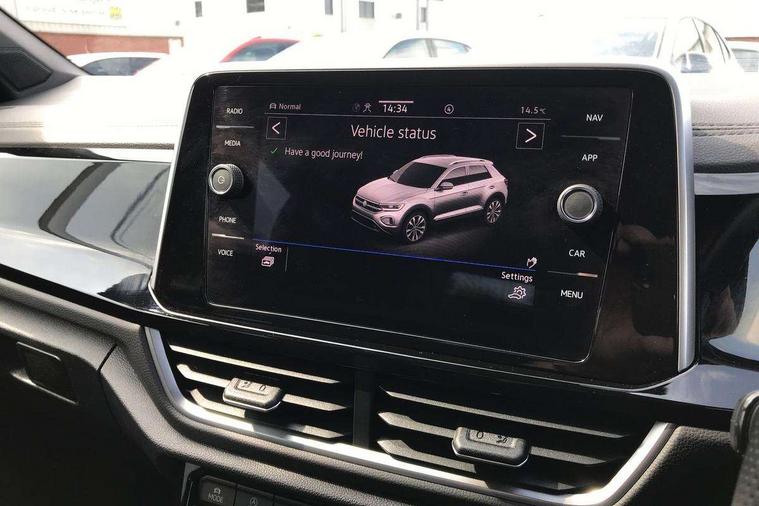 10.25" Digital cockpit pro, Advanced driver attention and drowsiness monitor, Bluetooth mobile phone interface, Emergency call service, Lane keeping system Lane Assist, Modified key software - reduce switch off time for key status change to Long no motion, Online services, Park assist including front and rear parking sensors, Service interval indicator, Tailgate/trunk lid release from outside, Think blue trainer driver tips and journey analysis, Warning sound and light for front seatbelts unfastened, Wireless app connect, Battery regeneration during braking, Start/stop function with battery regeneration, Diversity antenna for FM reception, Music playback - MP3, WMA and AAC files, Premium USB cable in choice of either Apple or Android smartphone compatibility, SD card slot, Simultaneous pairing of 2 compatible mobile devices, Title and cover art display, We Connect and We Connect Plus functionality, 3rd brake light, Auto dimming interior rear view mirror, Automatic hazard lights activation under emergency braking, Automatic headlight control with LED separate daytime running lights with coming/leaving home function, Electrically adjustable and heated door mirrors, Extended roof spoiler, Exterior mirrors aspherical on driver side, convex on front passenger side, External USB type C socket and charging sockets, Front windscreen wiper with intermittent wipe and 4 position delay, Heated rear window, LED rear combination lamps, LED rear number plate lights, Power windows with comfort operation and circuit breaker, R-Line design body coloured bumpers, Rain sensor, Rear exhaust tailpipe, Rear fog light on one side and reversing lights on both sides, Rear side wing doors, Rear wash/wipe with intermittent wipe setting, Remote electrically foldable door mirrors, puddle lights and reverse activated passenger's door mirror, 12V power socket in centre console, 3 rear head restraints, 3 seat bench in 2nd row, 4 load lashing points in luggage compartment, Air care climatronic air conditoning system with active combination filter and 2-zone temperature control, Black roof lining, Chrome plated radiator grille inserts, air vent surrounds and light switch surrounds, Door and side trim panel with leatherette insert, Front + rear carpet mats, Front centre armrest, Front cupholders x 2, Front footwell illumination, Front reading light, Front scuff plates with R Line logo, Front seat back storage pockets, Glove compartment door with light, Instrument lighting, white adjustable panel illumination, Interior ambient lighting and surround lighting, Interior light delay, Isofix child seat preparation, Leather gearshift handle, Load-through provision with cup holder when folded down ('Unsplit rear seat bench, split folding backrest, with centre armrest), Luggage compartment lighting, Single front passenger seat, Stainless steel pedals, Storage compartment in left and right luggage area, Storage compartment in rear doors, Storage compartments in driver and front passenger doors, Sunvisors with illuminated vanity mirrors, Variable boot floor, height adjustable and removable, Driver assistance pack without proactive passenger protection - T-Roc, 3 point height adj front seatbelts + pretensioners, 3 point seatbelts in outer rear with ECE label, ABS, Child locks on rear doors, City emergency braking and pedestrian monitoring, Driver and front passenger airbag with front passenger airbag deactivation, Driver and front passenger safety-optimised head restraints, Drivers seatbelt reminder, Electronic parking brake, Electronic Stability Control (ESC) inc EDL (Electronic Differential Lock) and ASR (Traction Control), Front and rear passengers curtain airbag system including front side airbags, Hill start assist, Predictive pedestrian protection, Rear disc brakes, Two tone horn, Tyre pressure loss indicator, Volkswagen roadside assistance, Anti-theft alarm system with interior monitoring, backup horn, and towing protection, Remote central locking with SAFELOCK, radio remote control with 2 remote control folding keys, Trims for alloy wheels,