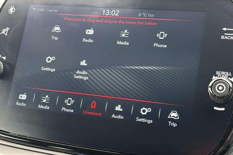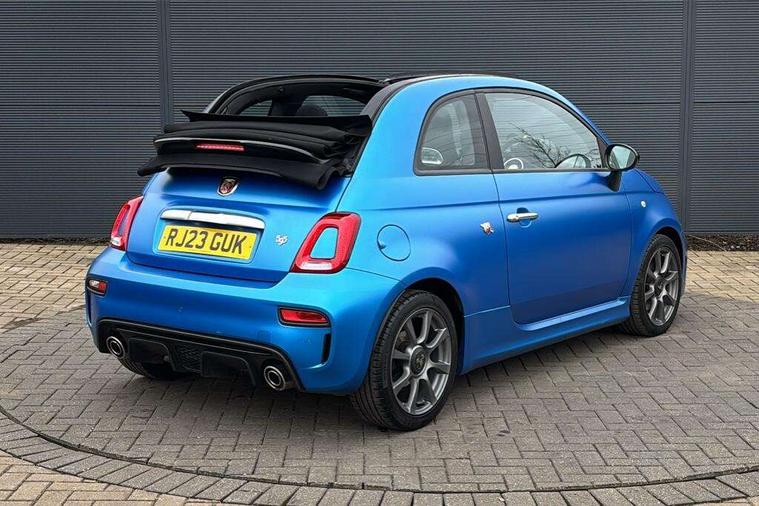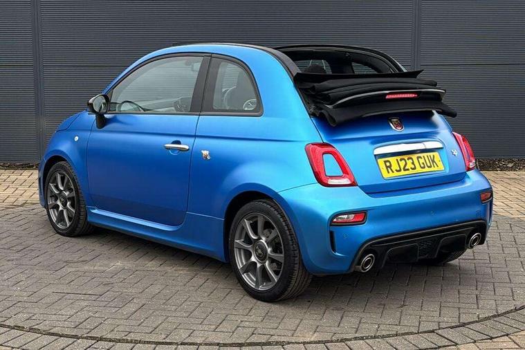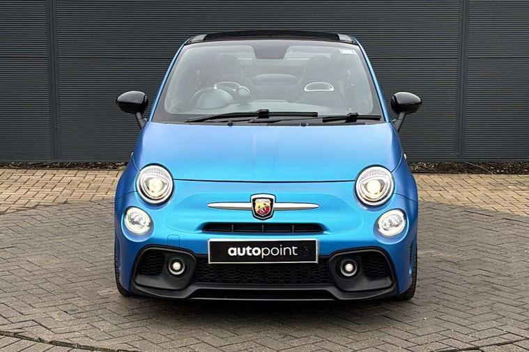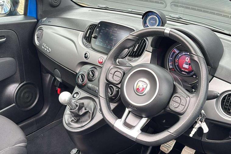 7" TFT instrument display with sports mode, Apple car play/Android Auto, Dualdrive PAS, E-call, Garrett turbo, Odometer, Rear parking sensors, Sports button, Wakeup screen for 7" radio, Koni rear suspension with FSD technology (Frequency Selective Damping), Torque transfer control (TTC), Uconnect radio, 595 badge, Dusk and rain sensors, Electric front windows, Electrically adjustable and heated door mirrors, Electrically operated soft top, Front fog lights, LED daytime running lights, Oil cap with key, Partial cellophane wrap, Rear boot, Rear window defroster, Satin chrome details (Front/rear mouldings, door handles), Third brake light, Twin exhausts with satin steel tailpipes, 12V socket, Abarth sport seats, Aluminium gear knob, Double rear seat, Driver/front passenger seat height adjustment, English handbook, Fabric upholstery, Floor mats, Front head restraints, Front passenger seat memory, Glovebox, Height adjustable steering wheel, High performance BMC air filter, Interior stowage net, Leather cockpit, Rear headrests, Single front passenger seat, Sports leather multifunction steering wheel with controls and satin chrome detailing, Sports seats, Stainless steel pedal covers, 2 x 3-point rear seat belts, 240x11 mm Drilled rear brake discs, 284x22 mm Drilled and ventilated front brake discs, ABS, Driver and passenger airbags, Drivers knee airbag, ESP + ASR/MSR + HBA + Hill holder, Front and rear brake calipers, Front side airbags, Head protecion side airbags, Tyre pressure monitoring system, Window airbags, Alarm, Central locking, Immobiliser, Remote central locking, Satin grey dash trim, 16" 8-spoke anthracite alloy wheels, Fix and go kit,
