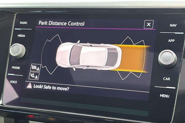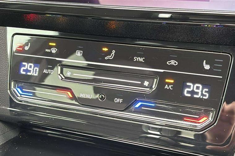 Adaptive cruise control (ACC) with speed limiter, front assist (reacting vehicles pedestrian and cyclists) and follow to stop, App connect including wireless Apple CarPlay, Camera for warning system, Digital cockpit with 10.25" high resolution TFT display screen with customisable menus and information, Driver alert system with fatigue detection, Driver profile selection including ECO function, Dynamic road sign display, eCall - Emergency call service for SOS calls to emergency response, Emergency assist, Hands free boot opening, Press and drive key, Progressive steering, Speedo and rev counter, electronic odometer, trip, service interval display and exterior temperature gauge, Travel assist - Lane keeping assist and traffic jam assist, Voice activation for telephone and navigation, Start/stop function with battery regeneration, Premium USB cable in choice of either Apple or Android smartphone compatibility, Auto dimming interior rear view mirror, Automatic headlights, Body colour door handles, Body colour side skirt, Body coloured top and matt black lower door mirrors with integrated indicators, Chrome plated radiator grille inserts and light switch surrounds, Chrome side window surrounds, Dynamic headlight range control, Electric folding door mirror, adjustable, heated with front passenger exterior mirror lowering function, Front and rear electric windows, Front and rear stainless steel door sill protection, Front windscreen washers and wipers with 4x interval delay, Heat insulating side and rear windows, Heated rear windscreen, Heated windscreen washer jets, High level 3rd brake light, LED rear combination lamp with dynamic indicators, LED rear number plate lights, Panoramic sunroof with tilting and sliding including integrated roller blind, R Line design body coloured bumpers, Rain sensor, Rear fog lamp on one side and reversing lamp on both sides, Rear side wing doors, Rear tinted glass from B pillar backwards, approx 65% tinted, Rear wash/wipe, Tailpipes behind rear bumper, 12V socket in front centre console, 12V socket on rear of front centre armrest, 3 rear head restraints, 3 seat bench in 2nd row, 30 colours options interior ambient lighting, 60:40 split folding rear seat backrests with centre armrest, Air care climatronic 3 Zone electronic air conditioning with automatic air recirculation, Black roof lining, Chrome trim on upper and lower air vents extending across cockpit, Driver and front passenger sunvisor with vanity mirror, Front + rear carpet mats, Front cupholders x 2, Front footwell illumination, Front sports comfort seats, Glovebox, Heated front seats, Height/reach adjust steering wheel, Isofix child seat preparation easy fit for two outer rear seats, Luggage compartment lighting, Removable luggage compartment cover, Single front passenger seat, Split folding front seat backrest with front centre armrest, Stainless steel pedals, Two LED front reading light, 3 rear three point seatbelts, ABS+EBD+Brake assist, Child locks on rear doors, Driver airbag and front passenger airbags with deactivation switch including driver knee airbags, Electronic parking brake, Electronic stability control (ESC) and Electromechanical brake booster, Front disc brakes, Front side airbags with curtain airbags, Hill start assist, Pro active occupant protection to detect critical situations with elevated accident potential from the front, Rear disc brakes, Three point height adjust front seatbelts + pretensioners, Two tone horn, Tyre pressure loss indicator, Warning buzzer for seatbelts if unfastened, Warning triangle, Alarm with interior protection with deactivation via infotainment system, Electronic engine immobiliser, Keyless entry system including start/stop button on centre console, Aluminium decorative inserts, Chrome trim on lower doors in front and rear, Leatherette insert on door and side trim panel in foam film, Piano black decorative inserts in centre console,