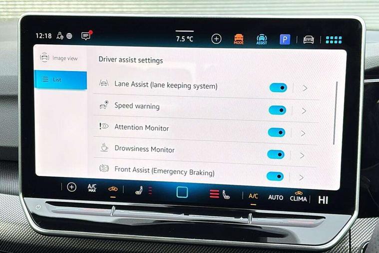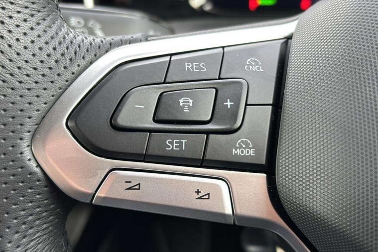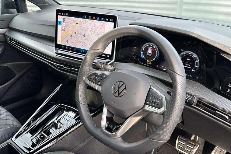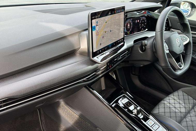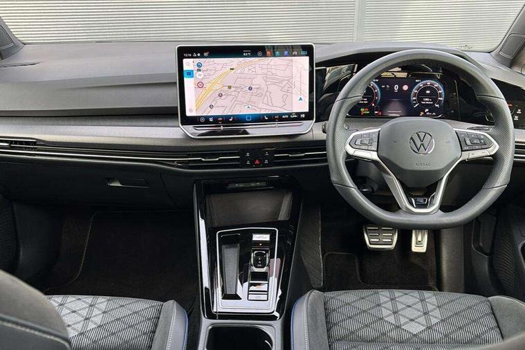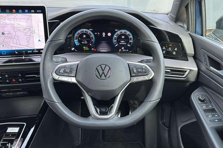 Activated carbon canister, Adaptive cruise control (ACC), Advanced driver attention and drowsiness monitor, Dynamic road sign display, Dynamic steering, E-Sim card for online connectivity, eCall emergency call system, Multi-color Digital cockpit pro, selection of different info profile possible, Multifunction front facing camera for distance control, Navigation system, Oncoming vehicle braking when turning including swerve support, Speed limiter, Speedo, rev counter, electronic odometer, trip, service interval display, exterior temperature and fuel gauge, Traffic jam assist, Voice enhancer and voice control, Warning signal and warning light for front and rear seatbelts not fastened, We connect plus preparation, We connect preparation, Wireless app connect, Hybrid propulsion system, Petrol Particulate Filter, Start-stop system with battery regeneration (recuperation - energy recovery during braking), XDS electronic differential lock for improved traction and handling, 2 USB C ports in front, 2 USB charging sockets on the centre console in the rear charging capacity upto 45W, Digital radio reception (DAB), Diversity antenna for FM reception, Gaming platform via car app, Infotainment system with 12.9" display, Mobile phone interface with inductive charging feature, 3rd brake light, Auto dimming rear view mirror, Automatic headlamp activation with Coming home and Leaving home feature, Body colored bumpers in R-Line style, Body colour door handles, Exterior ambient lighting, Exterior mirrors convex on the left and aspherical on the right, Front and rear electric windows, Heat insulating windshield made of laminated glass, LED separate daytime running light, Rain sensor, Rear exhaust tailpipe, Rear fog light on one side and reversing lights on both sides, Rear side wing doors, Rear windscreen washer and wiper with interval delay, Remote electrically foldable door mirrors, puddle lights and reverse activated passenger's door mirror, Volkswagen logo in front, illuminated lighting animation with wake up/goodbye scenario and illuminated door handles, Welcome light with surround lighting, 12V socket in front centre console, 12V socket in luggage compartment, 3 rear head restraints, 3 seat bench in 2nd row, Ambient lighting with 30 colour including LED light unit in front footwell with selectable light colour, Black roof lining, Brushed stainless steel pedals, Chrome plated radiator grille inserts, air vent surrounds and light switch surrounds, Door insert, side trim panel and arm support in leatherette, Front + rear black carpet mats, Front centre armrest, Front seat lumbar support adjuster, Integrated front head restraints, ISOFIX anchors for child seats on outer rear bench seats and on front passanger seat compatible for i-Size, Luggage compartment lighting, Manual height adjustable front passenger seat, Manually height adjustable driver seat, Plastic gear knob, Premium sports seats in front, Rear cupholder and loadthough, Sardegna cloth upholstery with front and outer rear seats Art Velour inner sides of bolsters, Single front passenger seat, Split folding backrest with centre armrest and unsplit rear seat bench, Sun visors with illuminated vanity mirrors, Titanium black instrument panel, Black exterior Styling package with Matrix LED headlights - Golf, Winter package - Golf DSG Estate/Hatchback, 3 point height adj front seatbelts + pretensioners, 3 rear three point seatbelts, ABS, Autonomous emergency braking front assist with pedestrian and cyclist monitoring, Child locks on rear doors, Driver and front passenger airbag with front passenger airbag deactivation, Electronic parking brake with auto hold, ESC (Electronic Stability Control), Extended pedestrian protection measures, Hill start assist, Rear disc brakes, Two tone horn, Tyre pressure loss indicator, Volkswagen roadside assistance, Anti theft wheel bolts, Preparation for alcohol interlock, Decorative inserts carbon grey for dashboard and front door trim panels, 18" Leeds alloy wheels, Tool kit for tyre mobility set, Tyre mobility kit Includes 12V compressor and tyre sealant,