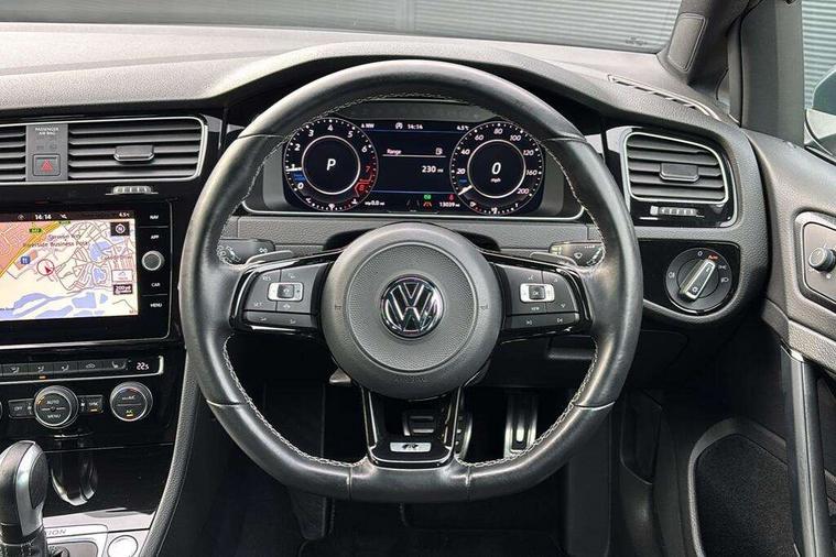 'Lights On' Reminder warning buzzer, 8" colour touch screen, ACC - Adaptive cruise control with front assist, forward collision warning, distance monitoring, city emergency brake and speed limiter, Bluetooth telephone and audio connection for compatible devices, Brake pad wear indicator warning light, Driver alert system, Driving Mode Selection with four preset modes - Eco, normal, sport or individual modes, Multifunction computer with visual gear change recommendation for fuel consumption, Progressive power assisted steering, Rear view camera, Speedo, rev counter, electronic odometer, trip, service interval display, exterior temperature and fuel gauge, Think blue trainer driver tips and journey analysis, Ultrasonic front and rear optical and audible parking sensors, Unique R instrument cluster, Warning buzzer and light for front seatbelts unfastened, Anti-tramp function, Battery regeneration during braking, Lowered sports suspension, XDS electronic differential lock, DAB Digital radio receiver, Driver Personalisation profile selection, MDI multi device interface, MP3/WMA compatability, Premium USB cable in choice of either Apple or Android smartphone compatibility, SD card slot, SMS Functionality, Title and cover art display, USB charging socket, Volkswagen media control, Anthracite wheel arch protection, Automatic coming/leaving home lighting function, Black rear diffuser, Body colour door handles, Body colour front and rear bumpers, Body colour rear roof spoiler, Chrome trimmed front air intake surround, Dusk sensor + automatic driving lights, Electrically adjustable and heated door mirrors, Front and rear electric windows, Fully galvanised body, Heated rear windscreen, High level 3rd brake light incorporating LED Technology, LED daytime running lights, LED rear lights, LED rear number plate lights, Rain sensor and automatic dimming interior rear view mirror, Rear fog lamp, Rear tinted glass 65% light absorbing from B pillar backwards, Rear window aerial, Rear window wash/wipe with intermittent wipe, Reflectors in all doors, Twin exhaust tailpipes x2, Unique R badging, Unique R design key, Unique R radiator grille with matt chrome strip, Windscreen wipers/ intermittent wipe + 4 position delay, 12V socket in luggage compartment, 3 rear headrests, 3 spoke steering wheel, 4 load lashing points in luggage compartment, 60/40 split folding rear seat backrest and flat folding into boot floor, Ambient lighting in front door armrest, light strips below trim in front doors and reflectors in front and rear doors, Bag hook in luggage compartment x 2, Black decorative sleeve on gear handles, Black roof lining, Climate control - 2 zone electronic air conditioning with automatic air recirculation and allergy filter, Cooled glovebox, Cover for storage compartment in centre, Dust/pollen filter, Front + rear carpet mats, Front centre armrest with storage compartment and two rear air vents, Front footwell illumination, Front seat back storage pockets, Grab handles front x 2, rear x 2 with integrated coat hooks, Height and reach adjustable steering wheel, Illuminated door sills, Illuminated vanity mirrors, Instrument lighting white adjustable panel illumination, Interior light delay, Isofix preparation for 2 rear child seats, LED front and rear reading lights X 2, Load through provision with rear centre armrest and cupholders x2, Luggage compartment cover with stowable convenience opening, Luggage compartment lighting, Multifunction leather steering wheel with R Logo and leather trimmed gear knob including paddle shift, Overhead storage box, Stainless steel pedals in clutch, brake and accelerator, Storage box in luggage compartment, Storage compartment in roof console with cover, Storage compartments in front doors, Storage compartments in rear doors, Sun visors, Variable boot floor, height adjustable and removable, Convenience Pack - Golf, Mirror pack - Golf, Winter pack - Golf, 3 rear three point seatbelts, Airbags - Driver and rear passenger curtain, driver knee, front side impact, driver and passenger airbag with passenger deactivation switch, Anti-lock Braking System (ABS) with Hydraulic Brake Assist (HBA), Automatic post collision braking system, Child locks on rear doors, Driver/Passenger optimised head restraints, Electronic parking brake with auto hold, Electronic stability control (ESC) including Electronic differential lock (EDL) and ASR (Traction control) with deactivation via infotainment system, Front ventilated disc brakes and rear disc brakes, Pre crash preventive occupant protection, Predictive pedestrian protection, Three point height adjustable front seatbelts with tensioners, Tyre pressure loss indicator, Volkswagen roadside assistance, Alarm with interior protection and deactivation via infotainment system, Electronic engine immobiliser, Keyless entry with start/stop button on centre console, Carbon touch decorative inserts in dash and door panels, Chrome plated air vent surround, Chrome-plated light switch surround, Piano black decorative inserts in centre console, Full size wheel trims, Steel space saver spare wheel,