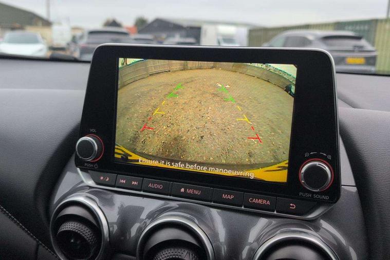 7" full colour TFT screen combimeter, Apple CarPlay and Google Android auto, Drive modes select (Eco, normal and sport), Emergency and breakdown call, Front parking sensor, Idle start/stop system, Intelligent lane intervention, Lane departure warning system, Nissan connect 8" touch screen entertainment system, Nissan connect nav with TomTom traffic, Nissan connect services and Wifi connection, Outside temperature sensor, Power Steering, Rear parking sensor, Traffic sign recognition, Trip computer, Voice recognition, Gasoline particulate filter, 6 speakers, Bluetooth system, USB, Aux-in and 12V socket, DAB Digital radio, Rear console USB port, Auto dimming interior rear view mirror, Auto headlights, Automatic hazard signal with emergency stop signal, Body colour bumpers, Body colour door handles, Electrically adjustable door mirrors with integrated indicators, Follow me home headlights, Front and rear electric window with one touch driver window, Heated and auto folding door mirrors, High beam assist, LED 3rd brake light, LED daytime running lights, LED headlamps, LED rear fog lamp, LED rear lamps, Rain sensor windscreen wipers, Rear privacy glass, Rear side wing doors, Rear wiper, Roof spoiler, Shark fin roof antenna in Pearl Black, Three blink turn signal, 3 height adjustable rear headrests, 3 seat bench in 2nd row, 60/40 split folding rear seat, Automatic climate control, Card holder on driver sunvisor, Cloth upholstery with black and metallic grey syntech leather inserts, Driver and passenger sliding and reclining seats, Driver side rear coat hanger, Driver/passenger sunvisors and vanity mirrors, Front and rear cabin lights, Front armrest, Front door pockets with bottle holders, Front head restraints, Front/rear passenger grab handles, Grey synthetic leather kneepad, Height adjustable driver's seat, Internal chrome door handles, Leather gearshift knob, Leather steering wheel, Luggage board, Luggage space lighting, Monoform sporty seats, Multifunction steering wheel, Rear door bottle holders, Single front passenger seat, Steering wheel mounted gearshift paddles, Telescopic steering wheel adjustment, Two cupholders in front centre console, Two rear isofix child seat anchorage points with top tether, Welcome light and console tray ambient lighting, ABS with EBD and brake assist, Active ride control, Active Trace Control, Driver and passenger airbags, Driver and passenger side airbags, Electric handbrake with auto hold function, Electronic Stability Programme (ESP), Front and rear curtain airbags, Height adjustable seatbelts, Hill start assist, Intelligent emergency braking with pedestrian and cyclist recognition, Rear door child safety locks, Seatbelt reminder for driver/front passenger and rear seats, Single tone horn, Three 3 point rear seatbelts, Traction control, Tyre pressure monitoring system, VDC Dynamic Vehicle Control, Ventilated rear brake discs, Alarm, Immobiliser, Intelligent key and start push button with walk away lock and approach unlock functions, Remote central locking,