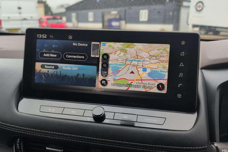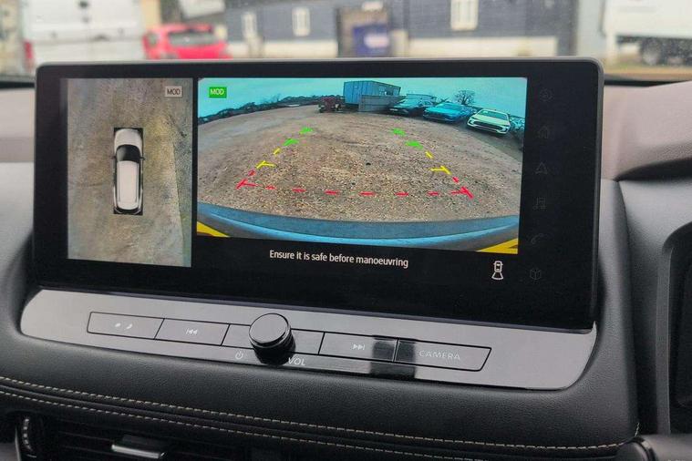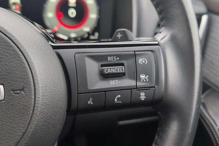 Android auto/Apple CarPlay (Wired), Blind spot warning, Drive modes (sport, normal, eco), Electric speed sensitive power steering, Emergency and breakdown call, Front and rear parking sensors, Full Digital 12.3" TFT Digital Combimeter, Google maps services - search, weather, 3D maps and Google street view, Idle stop/start system, Intelligent around view monitor, Intelligent Cruise control (ICC), Intelligent driver alert system, Intelligent forward collision warning, Intelligent lane departure warning, Intelligent lane intervention, Intelligent lane keep assist, Maximum speed limiter, Moving object detection, Nissan connect 12.3 inch touchscreen infotainment system, Nissan connect nav with TomTom traffic, Push button starter, Rear cross traffic alert, Rear view camera, Remote control services - door locks, lights, horn and car locator, Telematics - notifications and connectivity services, TomTom live traffic services, Traffic sign recognition with legal speed adjustment, Trip computer, Virtual personal assistant and firmware over the air capability, Wireless apple carplay, Wireless charging pad, 6 speakers, AM/FM audio system with DAB, Bluetooth audio streaming, Front USB connections (Type-A and Type-C), Rear USB charging only ports (Type-A and Type-C), 3rd brake light, Auto dimming rear view mirror, Auto rear wiper when reversing, Body colour mirror caps, Body coloured door handles, Bodyside mouldings, Chrome side window finisher, Electric auto folding door mirrors, Electrically adjustable and heated door mirrors, Follow me home headlights, Headlights auto levelling system, High beam assist, Intelligent auto headlights, LED daytime running lights, LED Headlights, LED rear lights, One touch front and rear electric windows with remote opening and closing, Partially body coloured bumpers, Rain sensing wipers, Rear privacy glass, Rear reversing light (bulb lighting), Rear roof spoiler, Rear side wing doors, Rear styling plate, Shark fin antenna, Splash free wipers, Super UV and infrared cut glass, Three blink turn signal, 12v power socket in dashboard and luggage, 3 bench rear seats in 2nd row, 3 rear headrests, 60/40 split folding rear seat bench, Butteryfly console, Chrome interior door handles, Cloth monoform upholstery, Driver and front passenger sunvisors with illuminated vanity mirrors, Driver seat back pocket, Dual zone automatic climate control with pollen filter, Front centre console and armrest, Front cupholders, Front door with bottle holders, Height adjustable driver's seat, Height adjustable front headrests, Height adjustable passenger seat, Leather shift knob, Leather steering wheel, Luggage board system, Luggage space lighting, Multifunction steering wheel, Passenger seat back pocket, Rear armrest with 2 cupholders, Rear door bottle holders, Single front passenger seat, Tilt/telescopic adjustable steering wheel, Two rear isofix child seat anchorage points with top tether, 3x3 point rear seatbelt pretensioners + load limiters, ABS with EBD and brake assist, Active brake limited slip, Auto hold function, Child locks on rear doors, Curtain and front side, far side airbags, Driver and passenger airbags, Driver, passenger and 2nd row rear seat belt reminder, Electronic parking brake, Front seatbelt pretensioners + load limiters, Height adjustable front seatbelts, Hill start assist, Intelligent blind spot intervention, Intelligent front emergency braking with pedestrian, cyclist recognition and junction assist, Intelligent rear automatic braking, Tyre pressure monitoring system, Vehicle dynamic control, Engine immobiliser, Intelligent Key, Remote central door locking with deadlocking, Thatcham Cat.1 alarm, 18" Diamond cut alloy wheels, Tyre puncture repair kit,