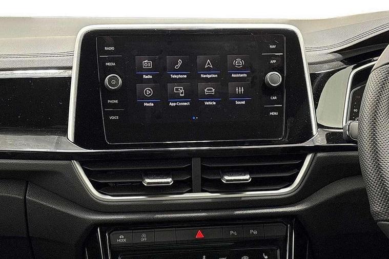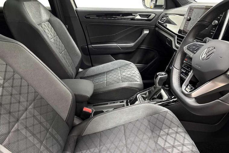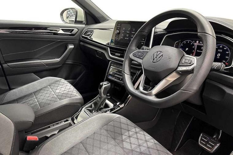 10.25" Digital cockpit pro, Advanced driver attention and drowsiness monitor, Emergency call service, Lane keeping system Lane Assist, Mobile phone interface, Modified key software - reduce switch off time for key status change to Long no motion, Online services, Park assist including front and rear parking sensors, Service interval indicator, Tailgate/trunk lid release from outside, Think blue trainer driver tips and journey analysis, Warning sound and light for front seatbelts unfastened, Wireless app connect, Battery regeneration during braking, Start/stop function with battery regeneration, DAB Digital radio, Diversity antenna for FM reception, Front and rear 6 speakers, Music playback - MP3, WMA and AAC files, Premium USB cable in choice of either Apple or Android smartphone compatibility, SD card slot, Simultaneous pairing of 2 compatible mobile devices, Title and cover art display, We Connect and We Connect Plus functionality, Auto dimming interior rear view mirror, Automatic hazard lights activation under emergency braking, Automatic headlight control with LED separate daytime running lights with coming/leaving home function, Body coloured exterior mirror housings and door handles, Electrically adjustable and heated door mirrors, Extended roof spoiler, Exterior mirrors aspherical on driver side, convex on front passenger side, External USB type C socket and charging sockets, Front windscreen wiper with intermittent wipe and 4 position delay, Heated rear window, LED 3rd brake light, LED rear combination lamps, LED rear number plate lights, Power windows with comfort operation and circuit breaker, Privacy glass for rear side windows and rear window, R-Line design body coloured bumpers, Rain sensor, Rear exhaust tailpipe, Rear fog light on one side and reversing lights on both sides, Rear side wing doors, Rear wash/wipe with intermittent wipe setting, Remote electrically foldable door mirrors, puddle lights and reverse activated passenger's door mirror, 12V power socket in centre console, 3 rear head restraints, 3 seat bench in 2nd row, 4 load lashing points in luggage compartment, Air care climatronic air conditoning system with active combination filter and 2-zone temperature control, Black roof lining, Chrome plated decorative trims, Chrome plated radiator grille inserts, air vent surrounds and light switch surrounds, Door and side trim panel with leatherette insert, Front + rear carpet mats, Front centre armrest, Front cupholders x 2, Front footwell illumination, Front reading light, Front scuff plates with R Line logo, Front seat back storage pockets, Glove compartment door with light, Instrument lighting, white adjustable panel illumination, Interior ambient lighting and surround lighting, Interior light delay, Isofix child seat preparation, Leather gearshift handle, Load-through provision with cup holder when folded down ('Unsplit rear seat bench, split folding backrest, with centre armrest), Luggage compartment lighting, Single front passenger seat, Stainless steel pedals, Storage compartment in left and right luggage area, Storage compartment in rear doors, Storage compartments in driver and front passenger doors, Sunvisors with illuminated vanity mirrors, Variable boot floor, height adjustable and removable, Driver assistance pack without proactive passenger protection - T-Roc, 3 point height adj front seatbelts + pretensioners, 3 point seatbelts in outer rear with ECE label, ABS, Child locks on rear doors, City emergency braking and pedestrian monitoring, Driver and front passenger airbag with front passenger airbag deactivation, Driver and front passenger safety-optimised head restraints, Drivers seatbelt reminder, Electronic parking brake, Electronic Stability Control (ESC) inc EDL (Electronic Differential Lock) and ASR (Traction Control), Front and rear passengers curtain airbag system including front side airbags, Hill start assist, Predictive pedestrian protection, Rear disc brakes, Two tone horn, Tyre pressure loss indicator, Volkswagen roadside assistance, Piano black decorative inserts in dashboard and front door trim panels, Trims for alloy wheels,