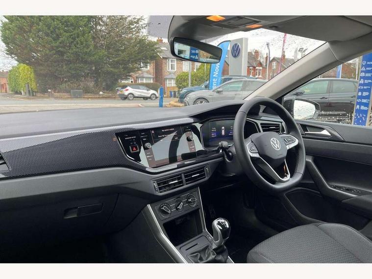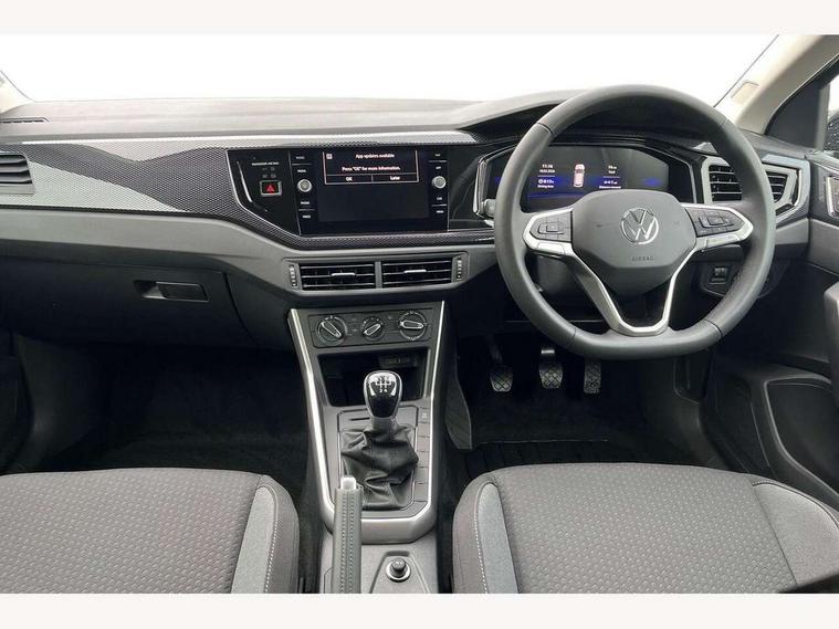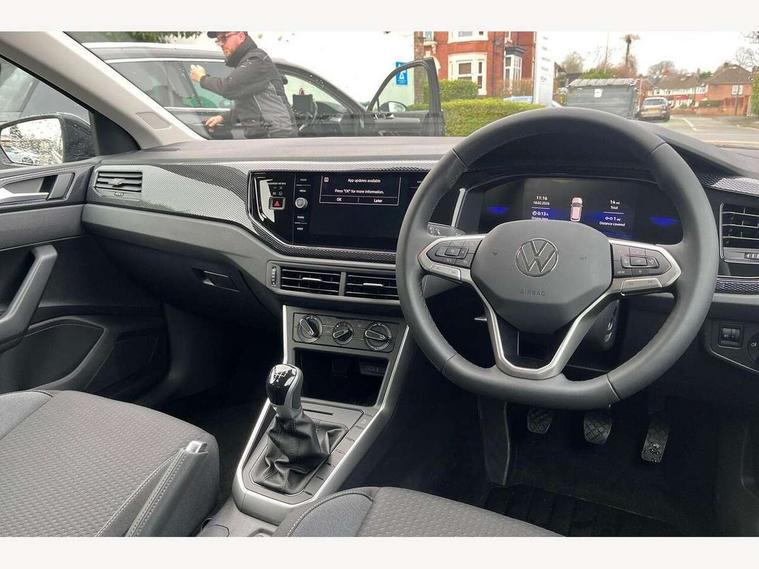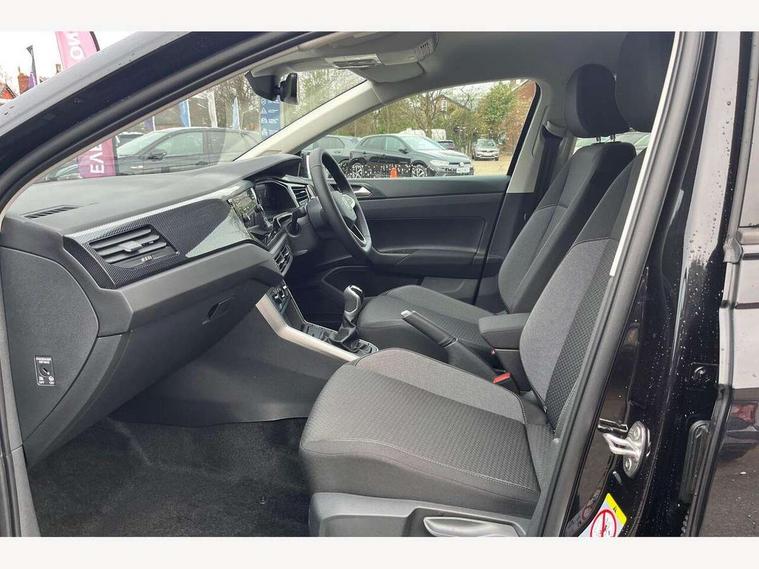 Adaptive cruise control without follow-to-stop and speed limiter, Advanced driver attention and drowsiness monitor, Bluetooth mobile phone interface, Dynamic road sign display, Emergency call service, Mobile phone preparation with inductive charging function, Multifunction front facing camera for distance control, Power assisted speed sensitive steering, Preparation for navigation system with media and internet package, Preparation for We connect and We connect plus, Rear view camera, Speedo and rev counter, electronic odometer, trip, service interval display and exterior temperature gauge, Standard rear axle, Travel Assist - Lane keeping system and traffic jam assist, Travel assist including emergency assist, Trip computer, Warning signal and warning light for front and rear seatbelts not fastened, Washer fluid level indicator, Wireless app connect, Front wheel drive, Rear shock absorpion, Start-stop system with battery regeneration (recuperation - energy recovery during braking), DAB Digital radio, Diversity antenna for FM reception, Automatic dimming interior rear view mirror, Automatic headlight control with LED separate daytime running lights with coming/leaving home function, Body colour bumpers with chrome inserts, Body colour door handles, Body colour door mirrors, Electric front windows, Engine badge deletion, Headlight range adjustment, Heat insulating and laminated safety glass windshield, LED Headlights, LED rear combination lamps, Power folding adjustable/heated exterior mirrors and front passenger exterior mirror lowering function, Rain sensor, Rear electric windows, Rear fog light, Rear side wing doors, Rear tinted glass from B-pillar backwards approx 65% tinted, Rear windscreen washer and wiper with interval delay, Third brake light, 12V power socket in centre console, 2 front and 2 rear reading lights with switch off delay and dimmer, 2 USB-C ports in the front, 2 USB-C charging sockets on the center console in the rear, 3 rear head restraints, 60/40 split folding rear seat and rear seat bench not split, Ceramique roof lining, Chrome plated radiator grille inserts, air vent surrounds and light switch surrounds, Door and side trim panel, Driver and front passenger seat height adjustment, Driver/passenger sunvisors with illuminated vanity mirrors, Front centre armrest, Front seat backrest storage pockets, Front standard seats, Handbrake lever handle in leather, Hartley/Thomas cloth upholstery, Headliner in recycled material, Isofix child seat preparation easy-fit (for two outer rear seats, and front passenger seat) compatible with I-size, Leather trimmed gear knob, Luggage compartment cover, Luggage compartment lighting, Removable luggage compartment floor, Single front passenger seat, Standard climatic zones, Standard pedal cluster, Three spoke leather wrapped multifunction steering wheel, Light and vision pack - Polo, 3 point height adj front seatbelts + pretensioners, 3 point seat belt for centre rear seat, 3 point seatbelts, outer rear with ECE lable, ABS, Driver and front passenger airbag with front passenger airbag deactivation, Drivers and front passengers safety optimised head restraints, ESC (Electronic stability control) + EDL (Electronic Differntial lock) and ASR (Traction control), Extended and predictive pedestrian/ cyclist protection, Front assist with autonomous emergency braking (for Adaptive Cruise Control ACC up to 130 mph), Front curtain and side airbags with center airbag, Front disc brakes, Hill hold control, Manual child lock in rear doors, Rear drum brakes, Single tone horn, Tyre pressure loss indicator, Alarm with interior protection, Anti-theft alarm system with interior monitoring, backup horn, and towing protection, Anti-theft wheel bolts, Electronic engine immobiliser, Lava stone black gloss/matt decorative inserts in dash and front door panels, 16" Torsby alloy wheels, Low rolling resistance tyres,