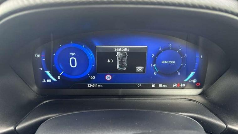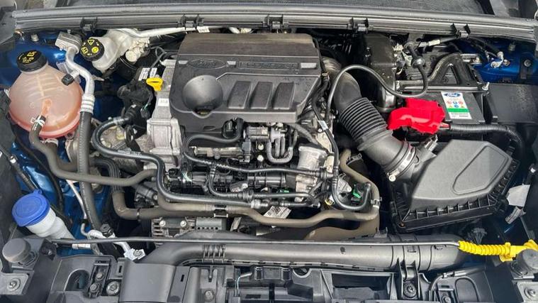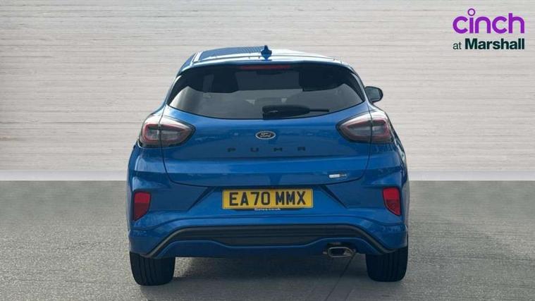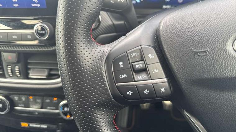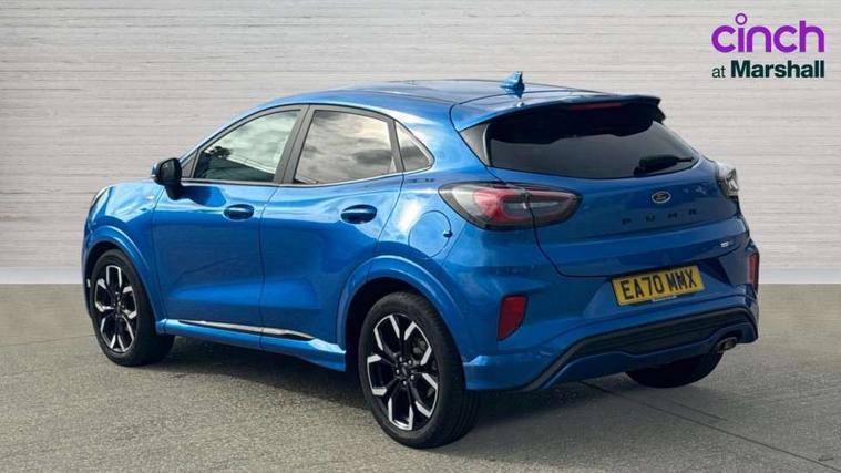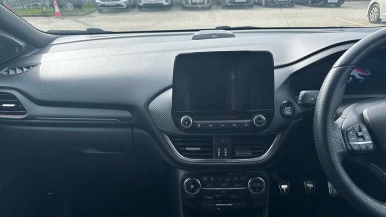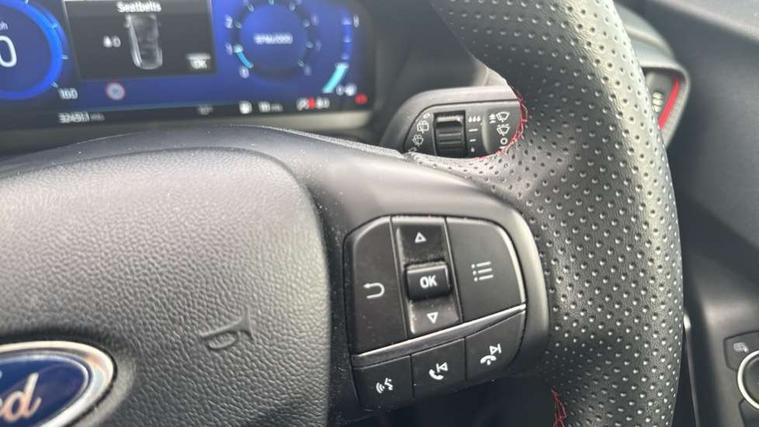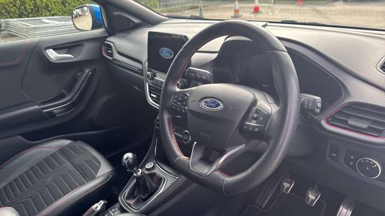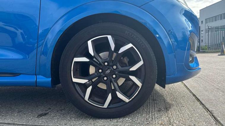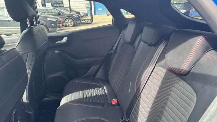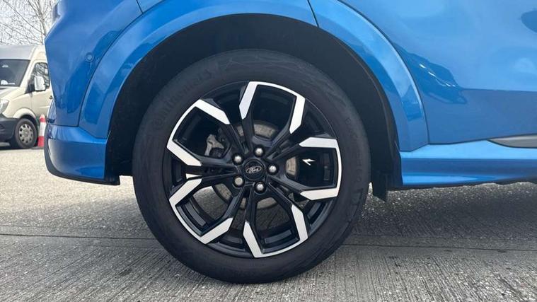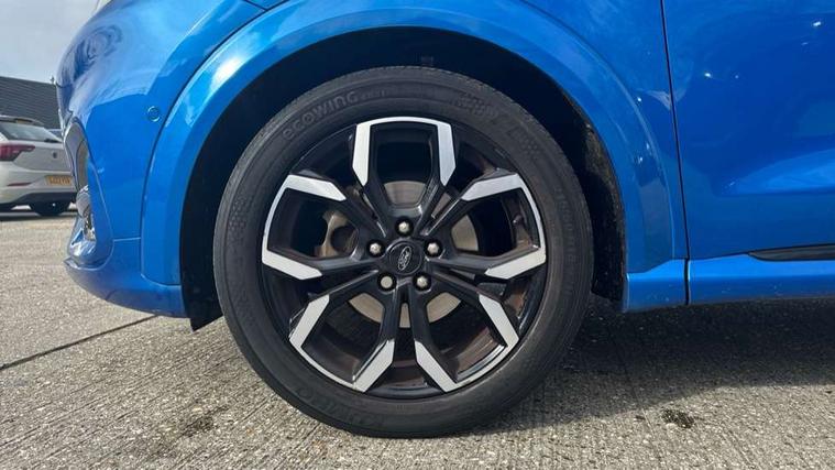 Ford easy fuel, Full digital 12.3" instrument cluster, Lane keeping aid with lane departure warning, Power assist steering, Rear parking sensor, Selectable drive modes(Normal, sport, Eco, trail, slippery), Wireless charging pad, Automatic headlights with rain sensing wipers and auto high beam, Body coloured door mirrors, Front fog lights with cornering lights and LED rear lamps, Power foldable heated door mirrors with puddle lamps, Privacy glass to side rear windows and tailgate glass, Quickclear heated windscreen, Rear wiper, ST-Line body kit with large rear spoiler wth sports suspension, Alloy sports pedals, Centre console with armrest and stowage, Driver and passenger seat lumbar and height adjust, Ford megabox extended bootspace, Front and rear floor mats, Front and rear head restraints, Manual air conditioning, Sensico partial premium upholstery, ST-Line flat bottomed sensico leather steering wheel with leather handbrake and aluminium gear knob, B&O Premium Audio system + Ford SYNC 3 navigation pack - Puma, 3 rear seatbelts, Electronic stability control (ESC) and hill start assist, Pre-collision assist with autonomous emergency braking, pedestrian/cyclist detection & post-collision braking, Tyre pressure monitoring system (TPMS), Thatcham alarm, Carbon look interior deco spears,