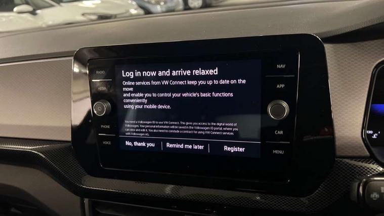 'Lights On' Reminder warning buzzer, 8" Digital cockpit, Advanced driver attention and drowsiness monitor, Bluetooth telephone and audio connection for compatible devices, Car information display, Dynamic road sign display, E-Sim card for online connectivity, eCall emergency call system, Front and rear parking sensors, Front assist, forward collision warning, autonomous emergency braking and speed limiter, Low washer fluid warning light, Multifunction computer with visual gear change recommendation for fuel consumption, Multifunction front facing camera for distance control, Operating permit alteration, Power assisted steering, Predictive adaptive cruise control, Preparation for navigation system with media and internet package, Preparation for We connect and We connect plus, Rear view camera, Semi-automated driving assistance, travel assist including lane keeping system Lane Assist and emergency assisst, Side assist, Speedo, rev counter, electronic odometer, trip, service interval display, exterior temperature and fuel gauge, Warning sound and light for doors and tailgate open, Warning sound and light for front seatbelts unfastened, Wireless Car net app connect with Apple CarPlay, combined functionality of Apple CarPlay/Android Auto and MirrorLink, Wireless charging, Misfuel prevention device, Start-stop system with battery regeneration (recuperation - energy recovery during braking), 2 USB C ports in front, 2 USB charging sockets on the centre console in the rear charging capacity upto 45W, DAB Digital radio receiver, Diversity antenna for FM reception, Multi device interface (MDI) with USB connection, Music playback - MP3, WMA and AAC files, Radio, Automatic dimming interior rear view mirror, Automatic hazard lights activation under emergency braking, Automatic headlight control with LED separate daytime running light and coming home and leaving home feature, Body colour door handles, Body colour door mirrors, Body coloured bumpers, Dynamic headlight range control with self adjusting whilst driving, Electric folding door mirror, adjustable, heated with front passenger exterior mirror lowering function, Exterior mirrors convex on the left and aspherical on the right, Front and rear electric windows, Galvanised body, Heat insulating and laminated safety glass windshield, Heat insulating darkened glass in side and rear windows, High Beam Assist, automatic sensing for switching between dipped and main beam, LED rear combination lights, LED third brake light, Lower door sills and door pillars in black, Rain sensor, Rear fog light on one side, reversing light on both sides, Rear side wing doors, Rear window aerial, Rear window wiper with intermittent control, Reflectors in all doors, Scuff plates, Tailgate with integrated roof spoiler, 12V Accessory socket in centre console, 3 rear head restraints, 3 seat bench in 2nd row, 60/40 split folding rear seat backrest, Ambient lighting and logo projection, Ceramique roof lining, Cloth upholstery, Door and side trim panel, Driver and front passenger sunvisor with vanity mirror, Dust and pollen filter, Front and rear reading lights X 2, Front centre armrest with storage compartment, Front seat back storage pockets, Glove compartment door with light, Heating and fresh air system with 4 stage blower, Height/reach adjust steering wheel, Instrument lighting white adjustable panel illumination, Interior light with switch off delay and dimmer, Isofix anchors for child seats on outer rear seats and front passenger seats, Leather gearshift handle, Leather wrapped multifunction steering wheel, Luggage compartment floor, Luggage compartment lighting, Manual front seats with height adjustment, Padded dashboard, Removable luggage compartment cover, Single front passenger seat, Storage compartment in drivers and front passengers door, Unsplit sliding rear seat bench, Without drawers under front seats, 3 point outer rear seat belts with ECE label, 3 Point seatbelt for centre rear seat, Anti-lock Braking System (ABS) with Hydraulic Brake Assist (HBA), Automatic post collision braking system, Disc brakes in front, Driver and front passenger safety-optimised head restraints, Drivers and Front Passengers airbags with front passengers airbag deactivation switch, Drum brakes in rear, ESC with EDL and ASR (traction control), Extended and predictive pedestrian/cyclist protection, Front and rear passenger curtain airbag system including front side airbags, Height adjustable front 3 point seatbelts + pretensioners, Hill start assist, Pre crash preventive occupant protection, Proactive passenger protection system in combination with front assist, Rear door child safety locks, Rigid safety cell with front and rear crumple zones, Single tone horn, Tyre pressure loss indicator, Volkswagen roadside assistance, Alarm with interior protection, Anti theft alarm system, Electronic engine immobiliser, Remote keyless entry using key fob including Start/Stop button on centre console with SAFELOCK, Remote tailgate unlocking using key fob, Low rolling resistance tyres,