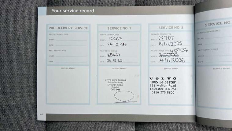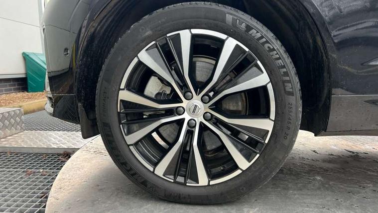 12.3" Progressive Driver Display, 360 degree surround view parking camera with side proximity sensors, 9" centre console touch screen, Adjustable steering wheel force, Apple carplay (wired), Bluetooth handsfree system, Drive mode settings, Driver alert control with lane keeping aid, Driver assistance (pilot assist and adaptive cruise control), Driver awareness - Blind spot information system with steer assist, cross traffic alert with autobrake and rear collision warning and mitigation, Emergency services call system, Front and rear park assist, Google Automotive Services, Head up display in windscreen includes road sign information, distance alert, set speed and navigation, Oncoming Lane Mitigation, Service interval indicator, Speed limiter, Speed sensitive steering, Trip computer, Volvo on call with App, Wireless/Inductive Mobile Phone Charging, 3.7 kW monophase on board charger, 7m 10amp charge cable with 3 pin plug and 6m 3 phase 16amp type 2/mode 3 charge cable, 8 speed automatic transmission with start/stop + manual change functions, Active four-C chassis + four corner adaptive damper with electronic rear air suspension, Electric rear axle drive, Recharging port located in nearside front wing, DAB Digital radio, Low speed exterior sound speaker, Premium Sound by Bowers and Wilkins, dirac live, dolby pro logic II surround sound, 14 speakers/1100W output and subwoofer, Steering wheel remote infotainment controls, Active bending headlights with adaptive shadow technology, Adaptive brake lights with high level LED brake lights, Auto dimming interior + exterior mirrors, Automatic headlight levelling system, Automatic LED Headlights + Active high beam incorporating daytime running lights, Dark tinted windows for rear side windows and cargo area, Electric adjustable/heated/auto power folding door mirrors, Electric front+rear windows, Headlight cleaning system, Heated front windscreen, High gloss black door mirrors and window surround, High gloss black front and rear bumper decoratives, High gloss black mesh front grille with high gloss black surround, Home safe and approach lighting, Integrated roof rails in high gloss black, Power glass tilt and slide panoramic sunroof with sun curtain, Puddle lights, Rain sensor with automatic windscreen wiper activation, Rear side wing doors, Rear wiper, Roof antenna, Roof spoiler, Tinted windscreen, Visible VIN plate, 12V socket in front tunnel console and cargo compartment, 2 zone electronic climate control with Clean zone air quality system and pollen filter, 3 seat bench in 2nd row, 3 Spoke tailored steering wheel with chrome trim, A-pillar parking ticket holder, Air purifier particulate matter (PM) filter, B Pillar ventilation, Bright metal luggage threshold, Centre console cupholders and storage, Charcoal floor mats, Front and rear courtesy lights, Front and rear door pocket illumination, Front cupholder illumination, Front footwell illumination, Front reading lights, Front seat cushion extensions, Glovebox compartment with illumination, Head restraints for all seats, Heated front seats, Heated steering wheel, Height/reach adjustable steering column, Illuminated luggage compartment, Illuminated vanity mirrors + ticket holder, ISOFIX attachment on outer rear seats, Load cover, Load protection net, Multi directional lumbar support, Power driver seat with memory + exterior mirrors memory, Power folding rear headrests, Power passenger seat with memory, Rear armrest with cupholder, Rear footwell and front and rear side step illumination, Rear seat concealed storage, Recharge aluminium tread plates, Single front passenger seat, Tailgate illumination and ambient door lighting, Underfloor stowage compartment, Versatile split folding rear seat - 60/40, 5 three point seatbelts, City safety with steering support with Pedestrian + cyclist + front collision warning with full auto brake and rear auto brake, Drivers knee airbag, Dual stage driver/passenger airbags, Electronic parking brake with auto hold, First aid kit, Front seats SIPS airbags, Hill descent control - Off-road drive mode, Hill start assist, IC (Inflatable Curtains) - Full Length, Passenger airbag cut-off device, Power child locks on rear doors, Run off Road Mitigation, Run off Road Protection, Seatbelt reminder and pretensioners, SIPS (Side Impact Protection System), Slippery road and hazard light alert, Stability and Traction Control with Spin control, Engine Drag Control and Corner Traction Control, Tyre pressure monitoring system, Vehicle deceleration control with Anti-lock Brake System, Electronic Brake Distribution and Emergency Brake Assist, Warning triangle, WHIPS whiplash protection system - front, Anti-theft alarm including immobiliser/volume sensor + level sensor, Care key with user defined top speed, Key integrated remote control central locking + fuel flap with deadlocking system and auto open/close power windows, Keyless Drive (includes Keyless Entry and Keyless Start) with Handsfree Tailgate Opening/Closing, Locking wheel nuts, Private locking for tailgate, Tailored instrument panel with contrast stitching, Tyre sealant kit + 12v compressor,