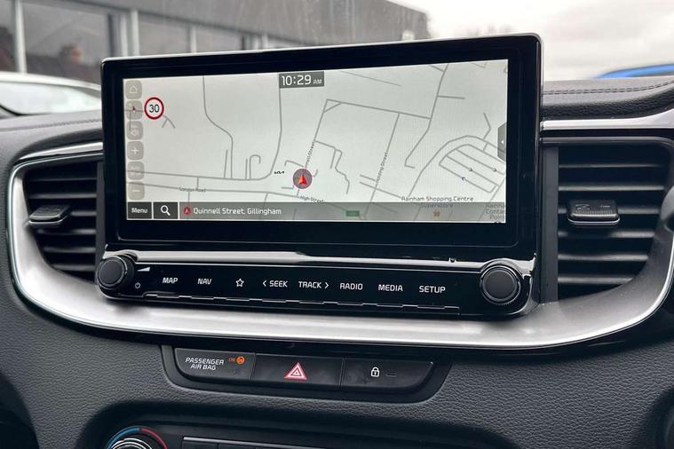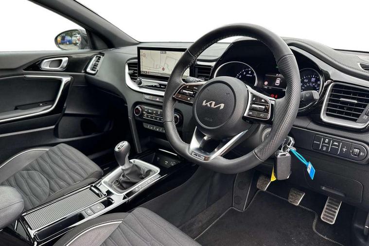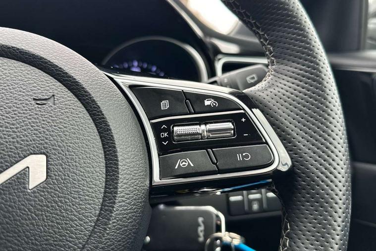 10.25" touchscreen satellite navigation, 4.2" supervision colour cluster display, Apple car play/Android Auto with voice control, Bluetooth with Voice Recognition & Music Streaming, Cruise control + speed limiter, Driver attention warning + (DAW) with leading vehicle departure warning, Emergency call service, Emergency stop signalling system, Forward Collision-Avoidance Assist (FCA) - City/Pedestrian/Cyclist, Kia connect UVO, Lane Following Assist (LFA), Lane keep assist, Manual speed limit assist, Motor driven power steering, Rear parking sensor, Reversing camera system with dynamic guidelines (Integrated into centre fascia screen), Trip computer, Intelligent Stop and Go, 6 speaker audio system, DAB Radio with MP3, Illuminated USB ports, Steering wheel mounted controls, USB Fast Charger in Front Centre Console, USB type A port, All-round Electric Windows with Front Auto Up & Down Function, Auto dimming rear view mirror, Automatic defog system, Automatic headlights control, Body colour bumpers, Body colour exterior door handles, Body coloured and dark chrome rear skid plate, Body coloured side sill mouldings, Dark chrome window surround, Electric adjustable/heated/folding door mirrors with LED Indicators, Heated rear window with timer, High beam assist, High gloss black and dark chrome radiator grille, High gloss black door mirrors, High Gloss Black rear spoiler - roof, LED daytime running lights, LED front fog lights, LED Headlights, LED High-mounted Brake Light, LED honeycomb rear light, LED rear combination lights, LED rear fog light, Privacy glass (rear side windows and tailgate), Rain sensing front wipers, Rear side wing doors, Rear wash/wipe, Satin chrome dual exhaust trim, Tinted glass, Wide view drivers door mirror, Windscreen Washer Level Warning, 1 x Front 12V socket, 12V power socket in luggage compartment, 3 seat bench in 2nd row, 3 x passenger assist grips, 60/40 split folding rear seat, All-round height adjustable headrests, Aluminium pedals, Black headlining, Centre console storage box/armrest, Cloth/faux leather upholstery, Cupholders in centre console, Cupholders in rear armrest, Dash illumination dimmer switch, Door courtesy lamps, Driver & Front Passenger Sunvisors with Vanity Mirror Illumination & Ticket Holder, Driver + front passenger electric lumbar support, Driver's seat height adjuster, Dual Height Luggage Area Floor, Dual zone automatic air conditioning, Faux leather door centre trim, Front and rear door storage, Front cabin map light with sunglasses case, Front Passenger Seat Height Adjuster, Front seat back pockets, Heated front seats, Heated steering wheel, Interior door lock/unlock function, ISOFIX Child seat top tethers and anchor fixings, Leather D-Cut steering wheel, Leather handbrake, Luggage area light, Luggage area parcel shelf, Luggage hooks, Rear centre armrest, Rear coat hooks, Single front passenger seat, Tilt/telescopic adjustable steering wheel, All round 3-point seatbelts, Anti-lock braking system (ABS), Brake assist system, Dual front side airbags, Dual horn, EBD - Electronic brakeforce distribution, Electronic parking brake, Electronic stability control (ESC) and vehicle stability management (VSM), Front passenger airbag cut-off switch, Height adjustable front seatbelts, Hill start assist control (HAC), Impact sensing auto door unlocking, Rear door child safety locks, Seatbelt reminder warning, Twin curtain airbags, Twin front airbags, Tyre pressure monitoring system, Alarm system, Engine Immobiliser & Deadlocks, Locking wheel nuts, Remote central door locking with fold away key, Speed sensitive auto door locking, Satin Chrome Fascia Trim, 17" GT-Line alloy wheels, Tyre mobility kit,
