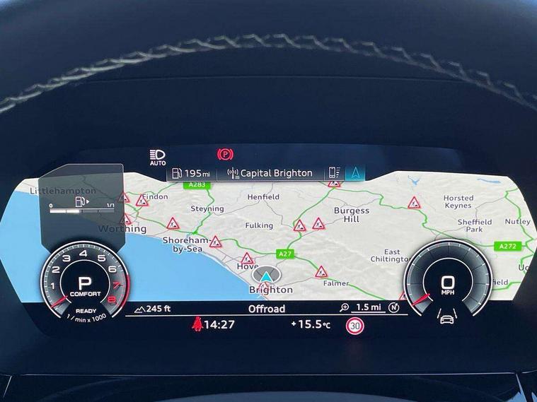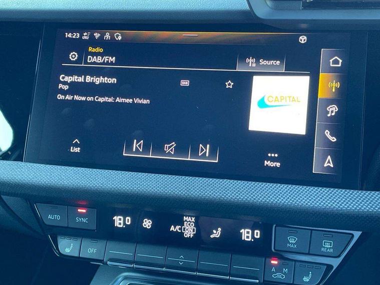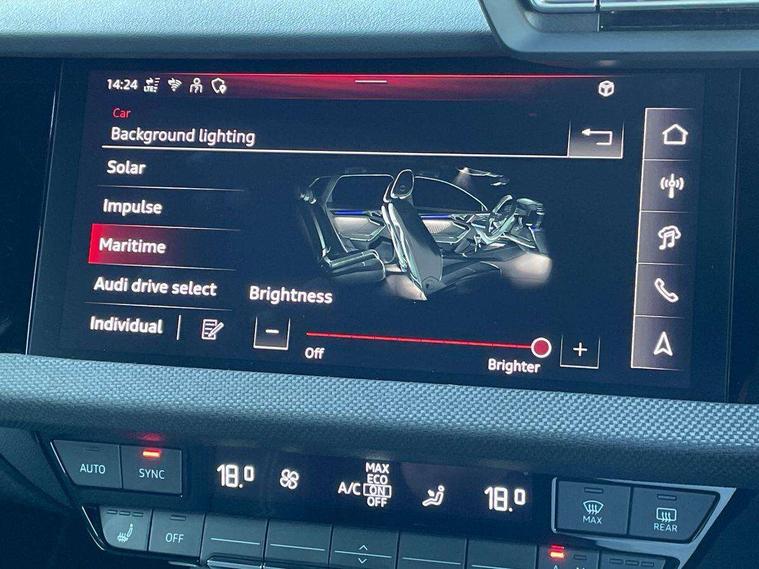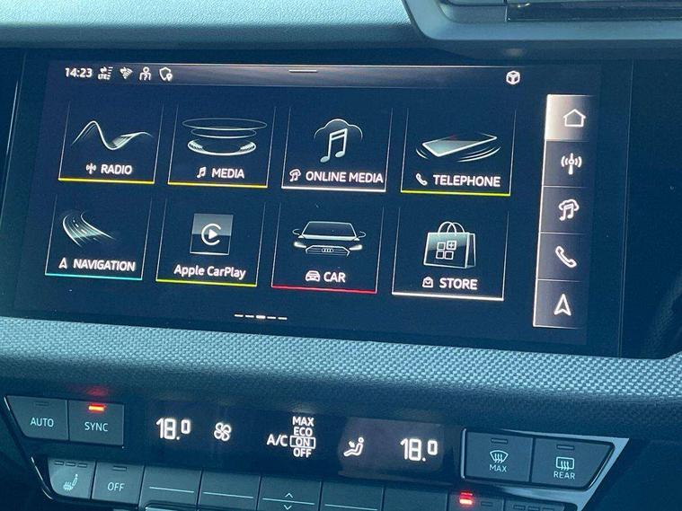 Adjustable speed limiter, Audi drive select, Audi smartphone interface with app store includes wireless Apple carplay, Android auto and Amazon alexa integration, Audi virtual cockpit plus - 12.3" full HD resolution dynamic digital instrument cluster, Automatic start/stop system with recuperation, Bluetooth interface, Camera based traffic sign recognition, Collision avoidance assistant, Cruise control, Distraction and Fatigue warning, e-Call (emergency call), Electromechanical power speed sensitive steering, Emergency assist, Lane departure warning system, MMI Navigation Plus with high resolution 10.1" colour touch screen display, Park Assist with parking system Plus, Service indicator, Tailgate, Trip computer, Voice control system with natural language interaction, Sports suspension, Audi Phonebox light with wireless charging, Audi sound system - 10 loudspeakers including centre loudspeaker and subwoofer, DAB Digital radio, USB ports with charging function in the rear, Acoustic glass windscreen, All weather light, Anthracite grey Audi rings (front and rear), Audi beam uses LEDs to project the Audi logo onto the ground as you exit your A3, Auto dimming frameless rear view mirror, Automatic dynamic range control, Black accents front and rear bumpers, Black accents in the area of the Audi single frame grille, Black accents window trims strips, Dipped beam, main beam, position light and turning light, Electrically adjustable/heated/folding/auto dimming door mirrors with integrated LED indications + kerb view function for passenger side, Exterior model badging, Front and rear side air inlets in grained matt black with dark liquid chrome frame, Front electric windows, Heat insulating glass windscreen, Illuminated door sills with aluminium inserts at the front with S logo, Intersection light, LED 3rd brake light, LED brake lights, LED daytime running x3, LED headlights with LED rear lights and dynamic rear indicators, LED rear number plate lights, LED reverse light, LED tail lights, Light and rain sensors, Manoeuvring light, Motorway light, Privacy glass - dark tinted rear window, rear door and side windows, Rear diffuser and grill in grained matt black with inlay in dark liquid chrome, Rear electric windows, Rear side wing doors, Rear wiper, S roof spoiler, Static cornering light, 12V socket and storage compartment in front centre console, 3 seat bench in 2nd row, 3 spoke flat bottomed leather multifunction sport steering wheel with gear shift paddles, 3-zone deluxe automatic air conditioning, 4 way electrically adjustable lumbar support for driver and front passenger, 40/20/40 split folding rear seat bench, Black cloth headlining, Black front and rear floor mats, Front and rear centre armrest in artificial leather with contrasting stitching on armrests and instrument panel, Front and rear headrests, Heated front seats, Height and reach adjustable steering wheel, Manual boot compartment lid, Manually adjustable front seats, Rear centre armrest with cupholder, S badging on the steering wheel, Seat side bolsters, Single front passenger seat, Stainless steel pedals and front footrest in black, Twin leather upholstery with front sports seats S embossed logo, Aluminium interior elements pack - A3, 3x3 point rear seat belts, Driver and front passenger airbag with passenger airbag deactivation, Electronic Stabilisation Control (ESC) including ABS, ASR and EDL, First aid kit with warning triangle and 2 safety vests, Front side airbags with head airbags and interaction airbag, Hill hold assist, Pre-sense front with pedestrian and cyclist detection, Seatbelt monitoring, Tyre pressure loss indicator, Anti theft alarm, Anti-theft wheel bolts, Electronically operated child locks, Immobiliser, Remote central locking with safelock, Black dashboard,